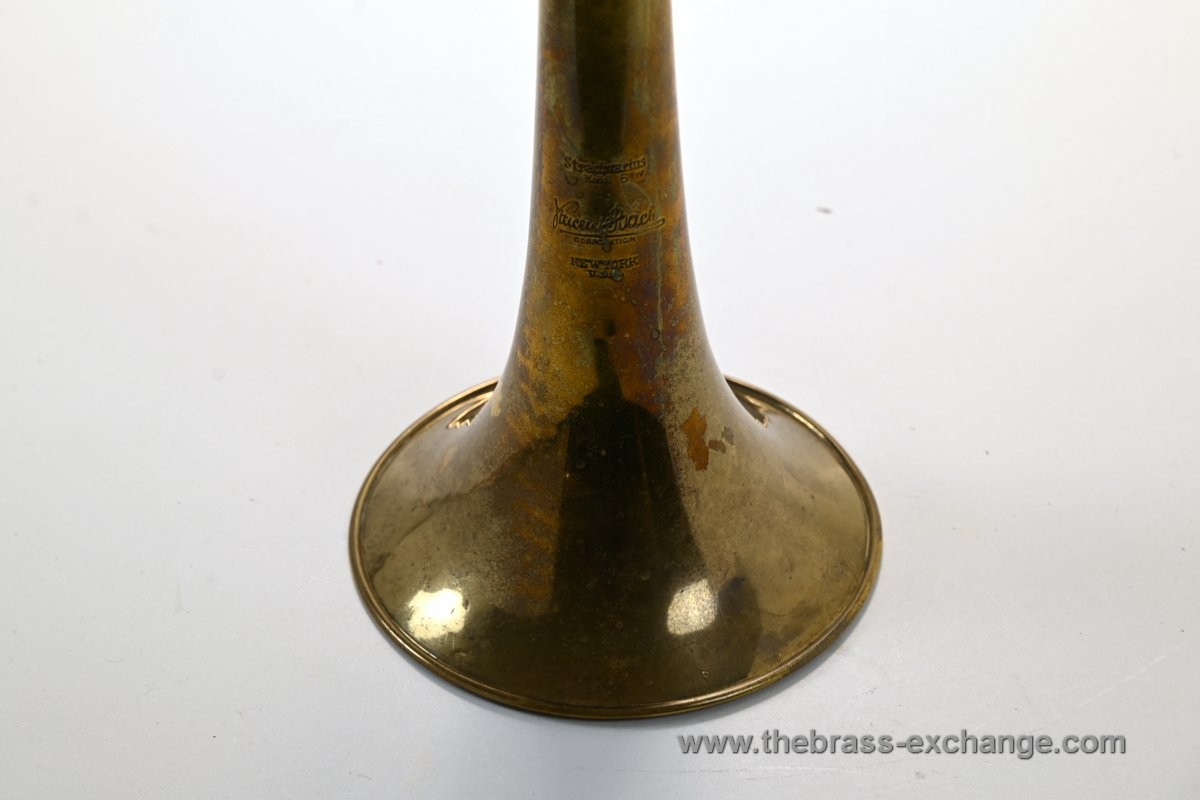 This vintage Bach 6 IV trombone, serial #1458, dates to no later than 1938, built during the highly regarded New York era of Vincent Bach craftsmanship. With its .485 bore and 7" yellow brass bell, this model embodies the iconic small bore design of the Big Band era.