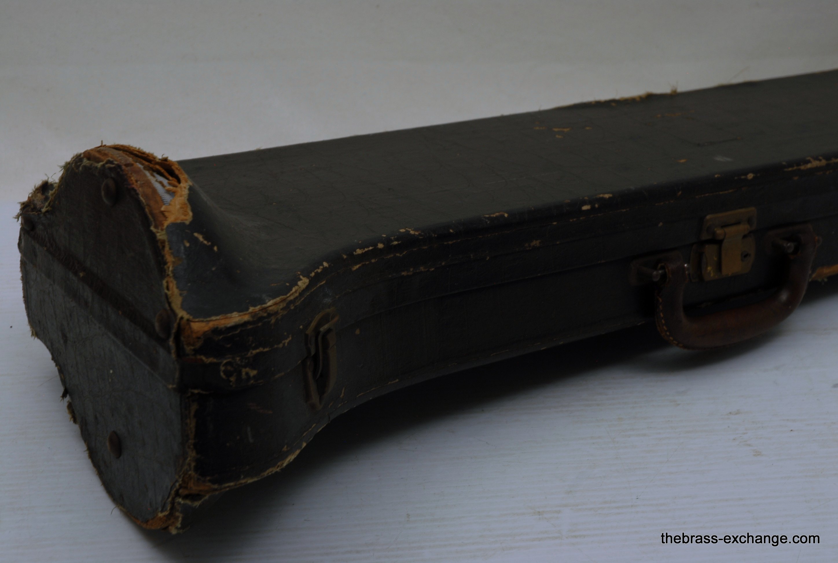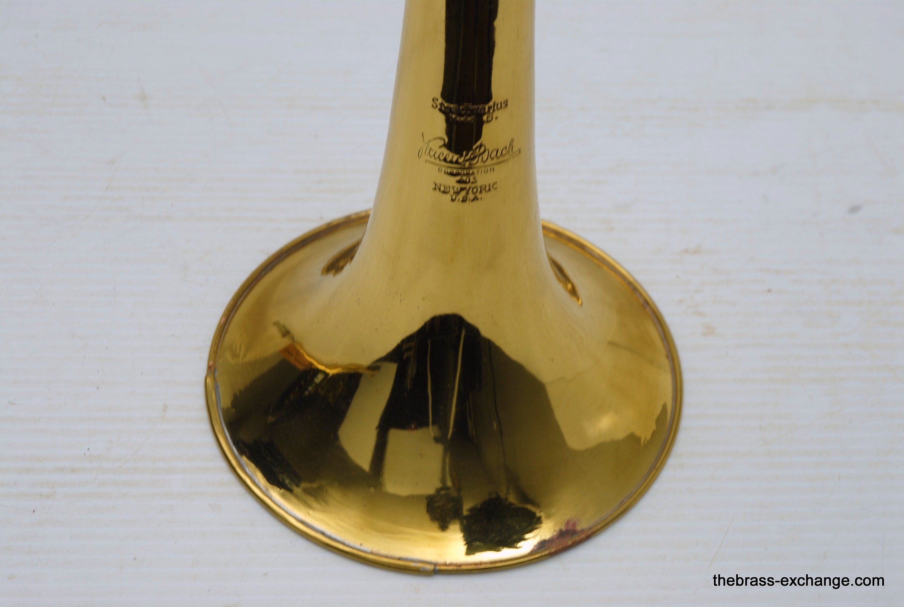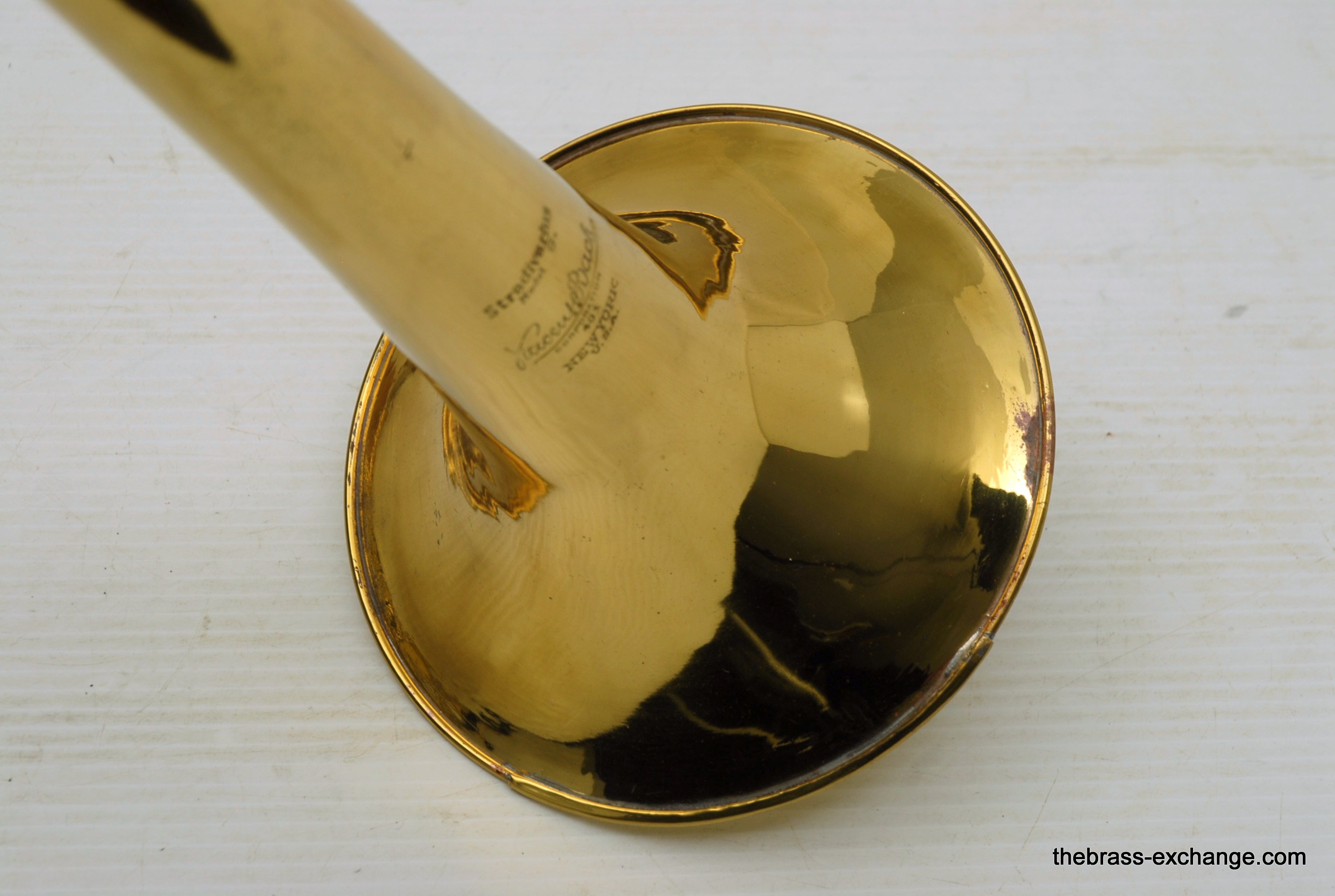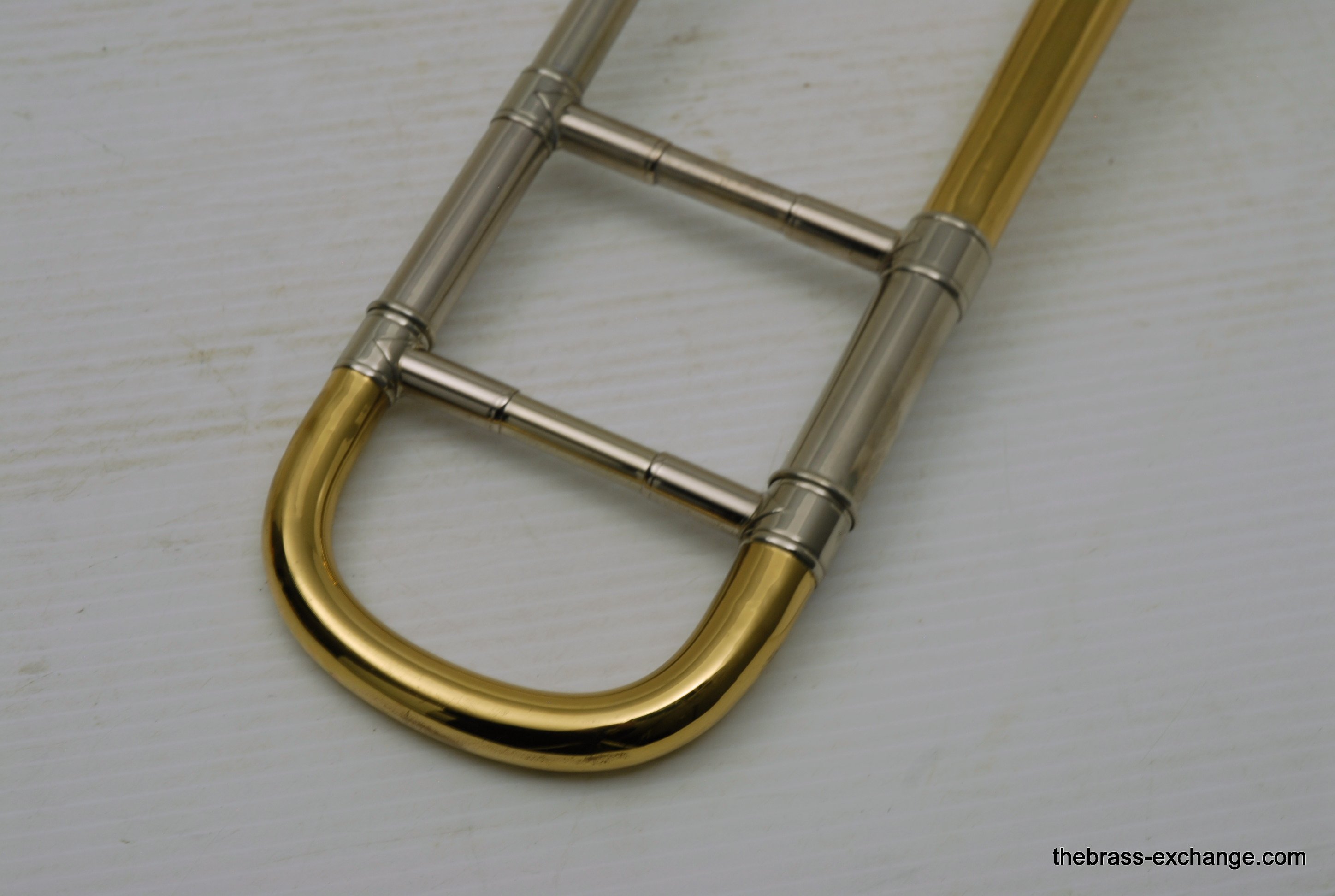 Bach 6 New York Era.  Has a 3 digit serial number 69x is from the 1930's.  If you were a trombone player during the big band era and played with Glen Miller, he would be pleased with your equipment choice.  It's small, has small bore and 7" bell.  But, that's what they played on back then.  This one is interesting with the nickel silver neckpipe.  The handslide is standard weight.  The bell had a repair and was relacquered years ago.  There is a light patch on the bell rim about 4-5 inches, yet it still plays good.  The previous owner who had it for 50 years, didn't seem to mind the patch one bit.  Has had full shop service with chemical bath.  Is gig ready.  Original case is in need of repair, but still works.  This is a good deal on such a historic NY Bach.  In-stock for immediate delivery.