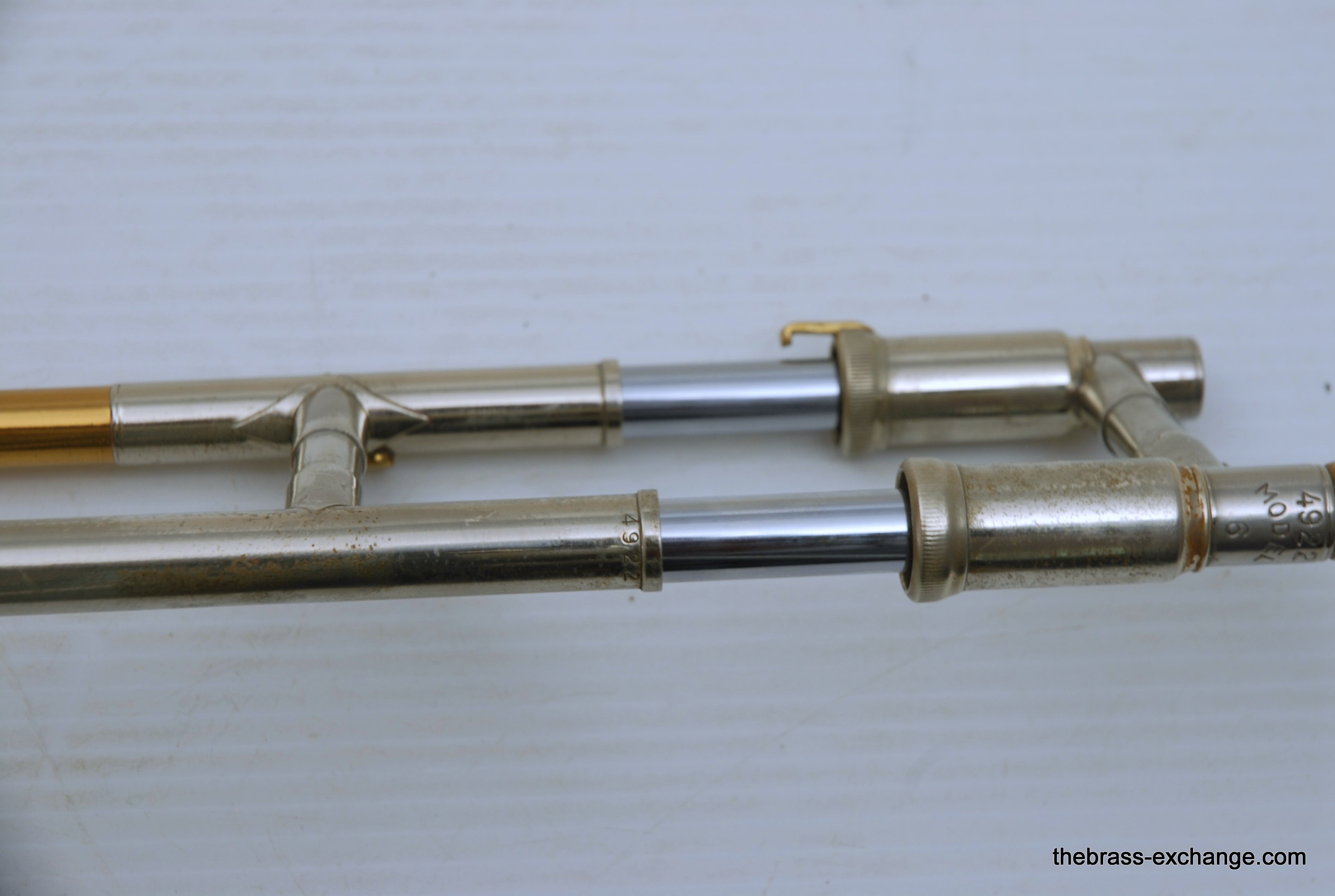 This particular example retains all of its original parts and lacquer, a remarkable detail considering its age. At .485 bore, it is designed as a true jazz tenor, offering both clarity and sparkle in the upper register while maintaining a flexible and resonant core sound. The 7" yellow brass bell and standard weight handslide are exactly what Bach intended for the 6 VII model, making this a historically faithful instrument that has never suffered trauma or major repair work.
