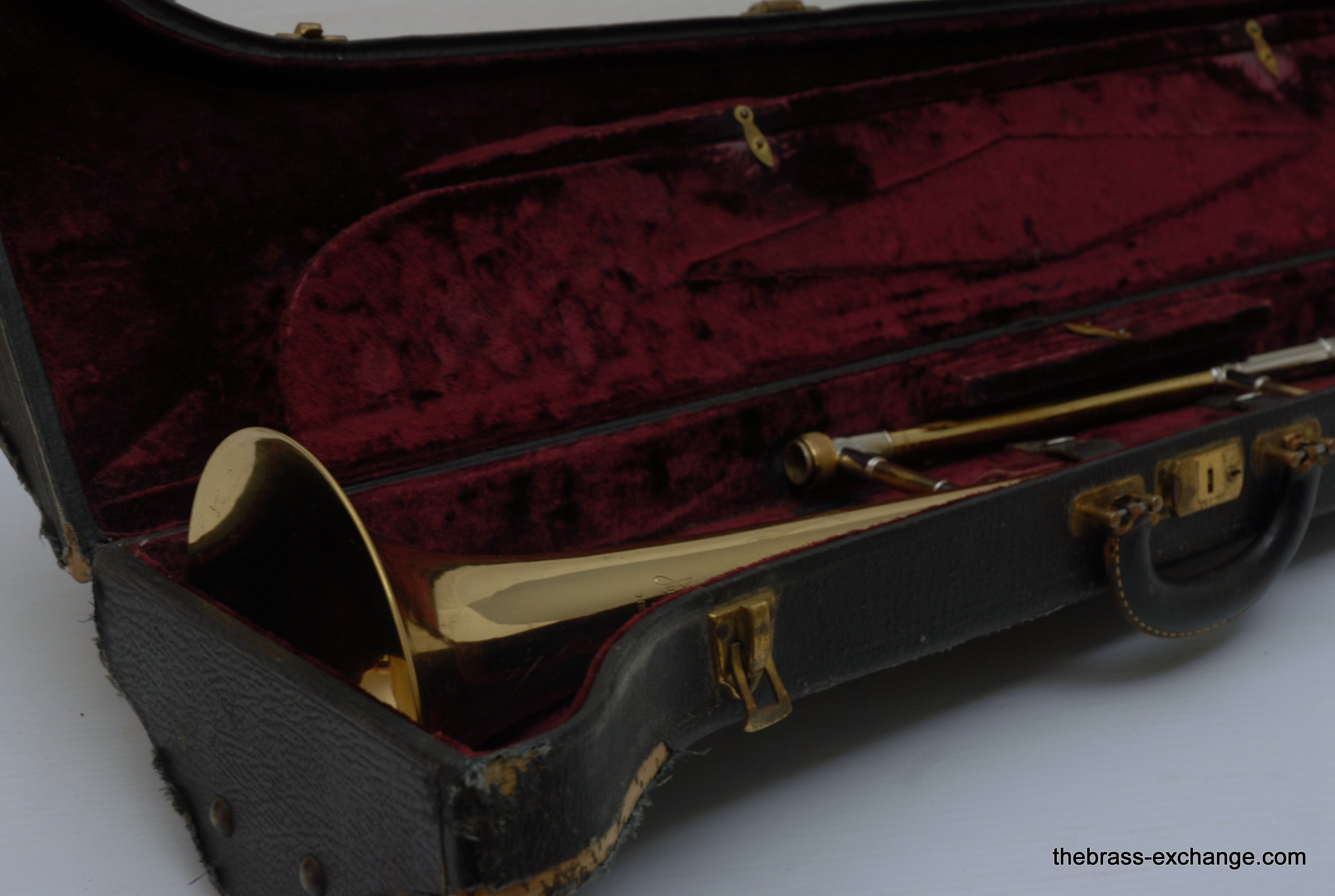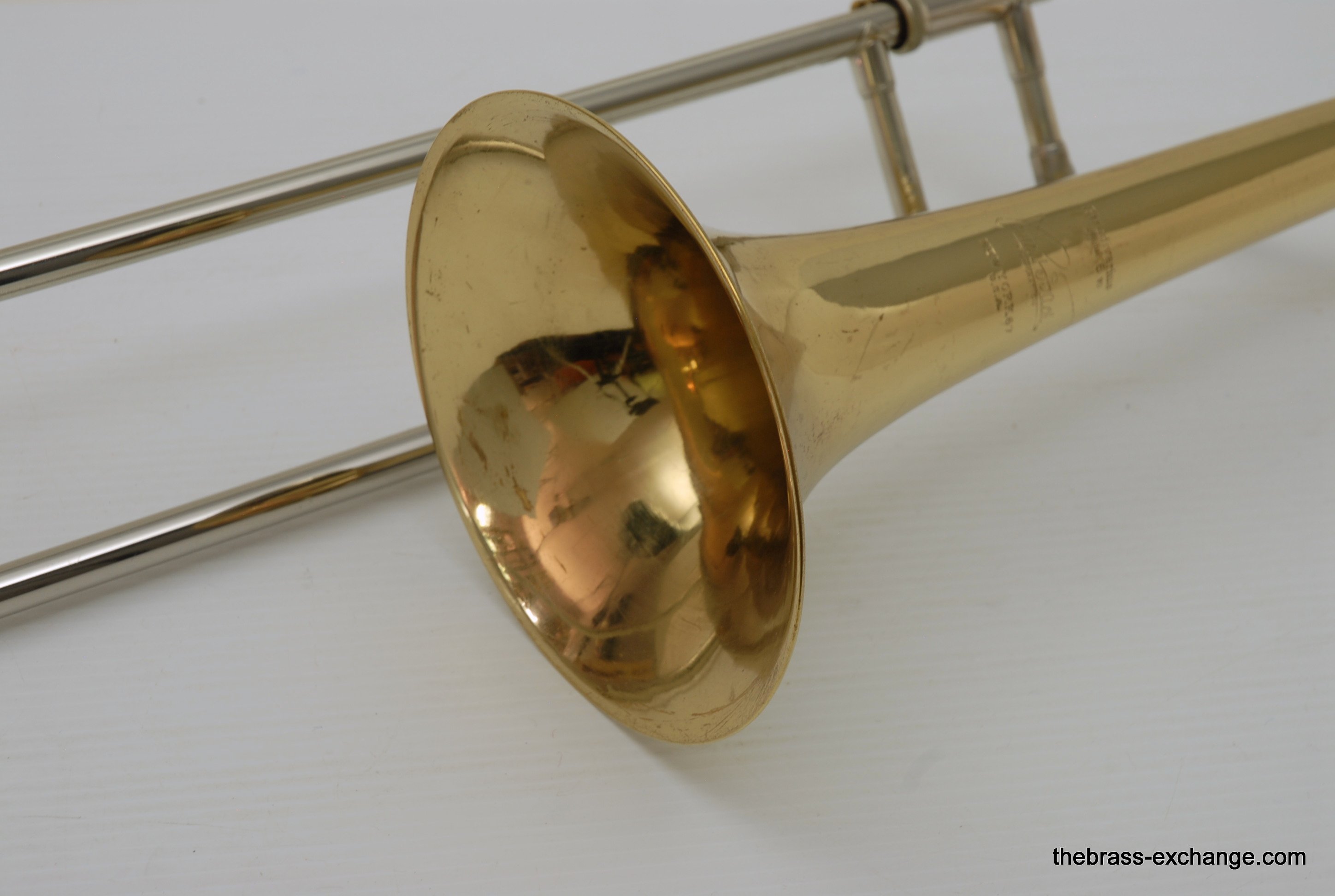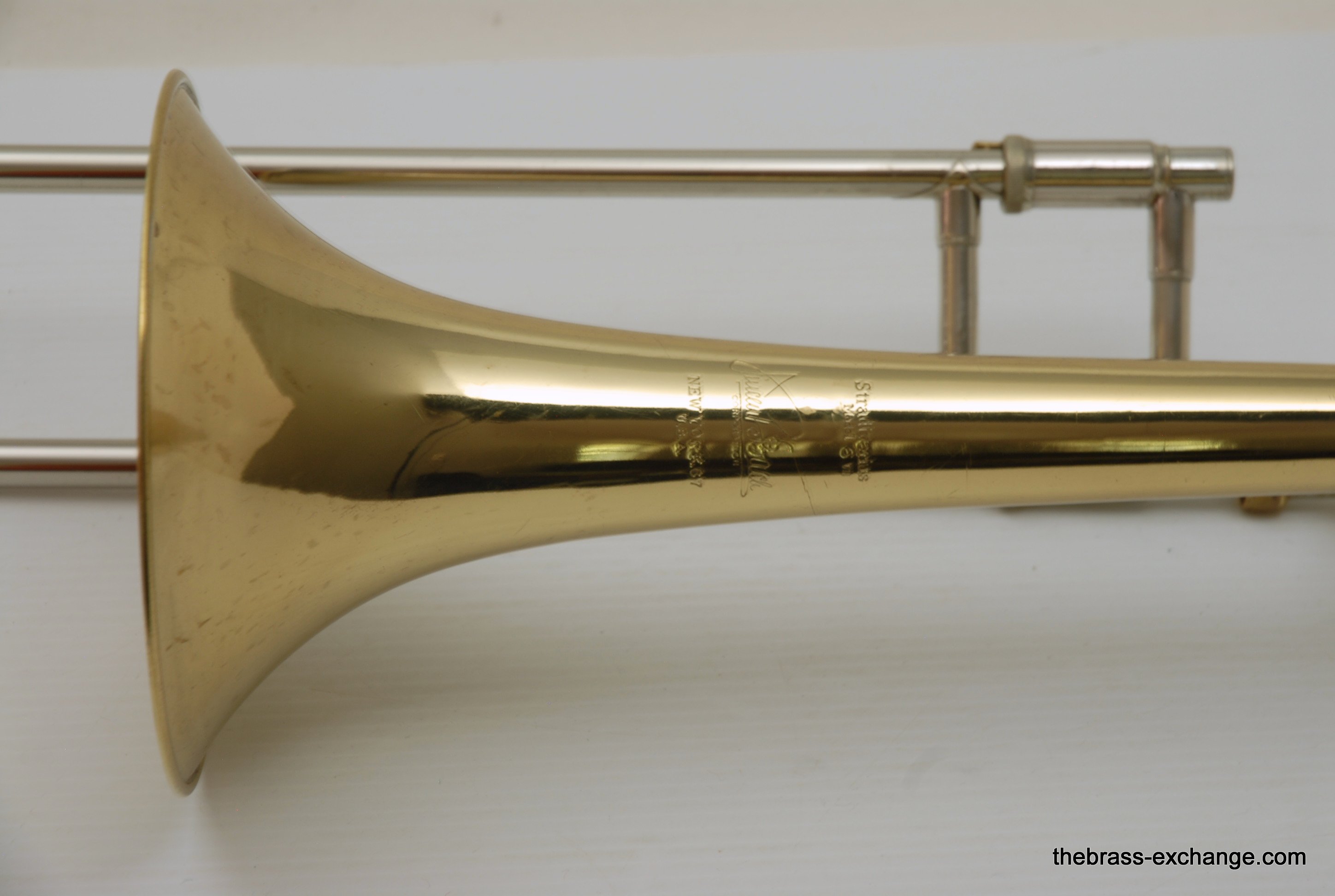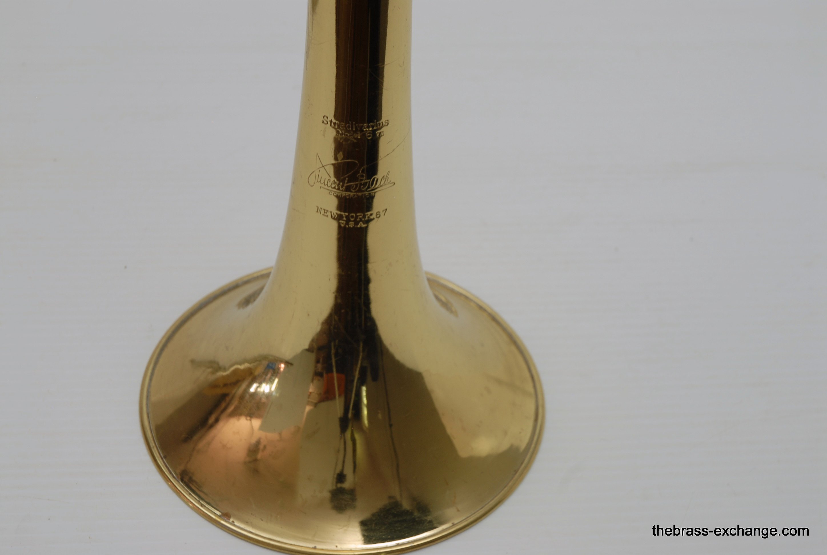 Bach 6 VII Stradivarius 67 Vintage New York with LT Nickel Handslide. Has 7" Yellow Brass Bell, Unlacqured, Polished. No dents or dings, nor previous damage or repair. Handslide is LT nickel silver. S/N is 2980 wich puts year of make between 1945-47, right at the peak of the Big Band Era. This horn was owned and played professionally by a member of the Glenn Miller Orchestra for a number of years. It plays fantastic. The slide is about as good as it gets, no issues, no need for any service to improve. Original case included, poor condition,yet original. In-stock for immediate delivery.