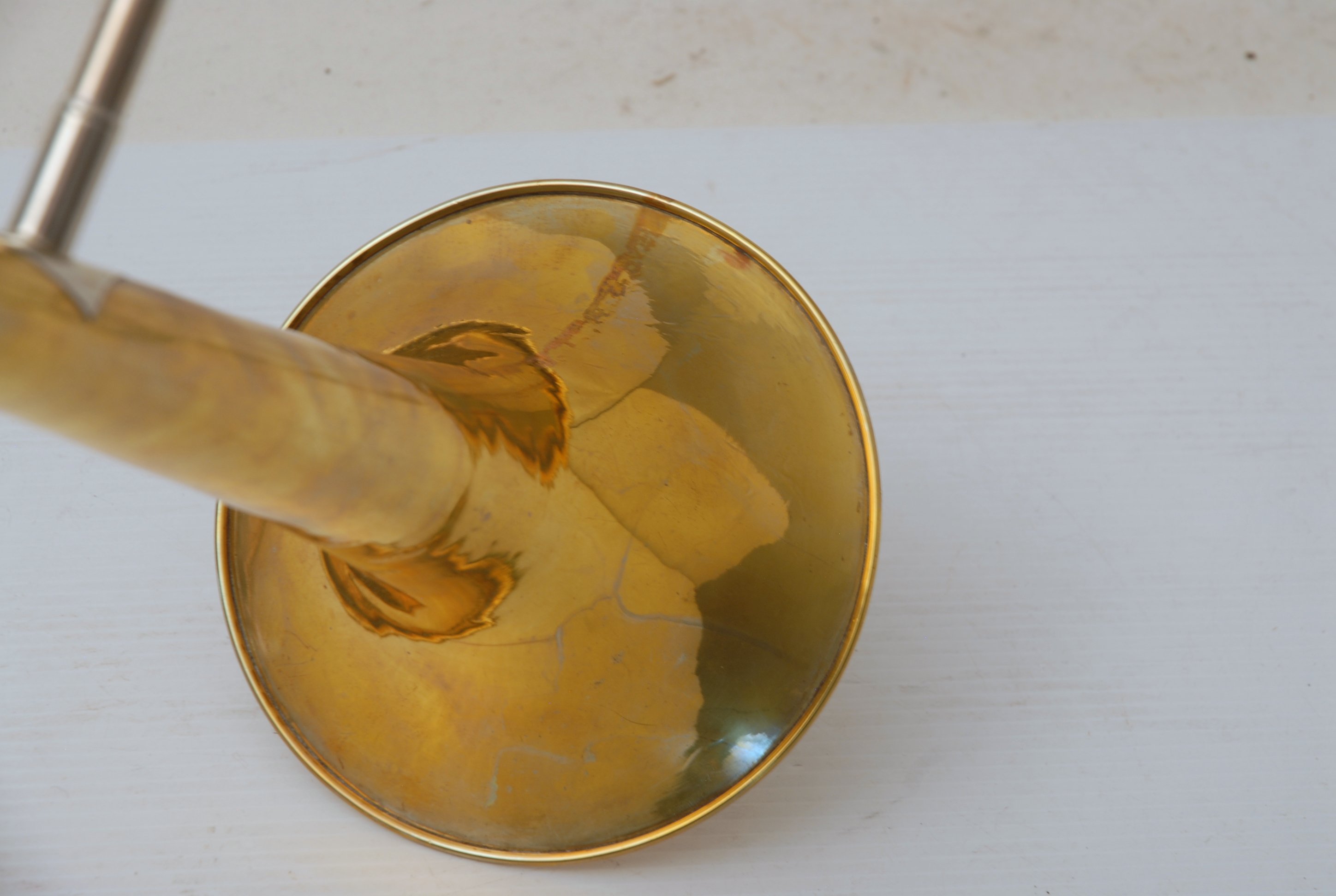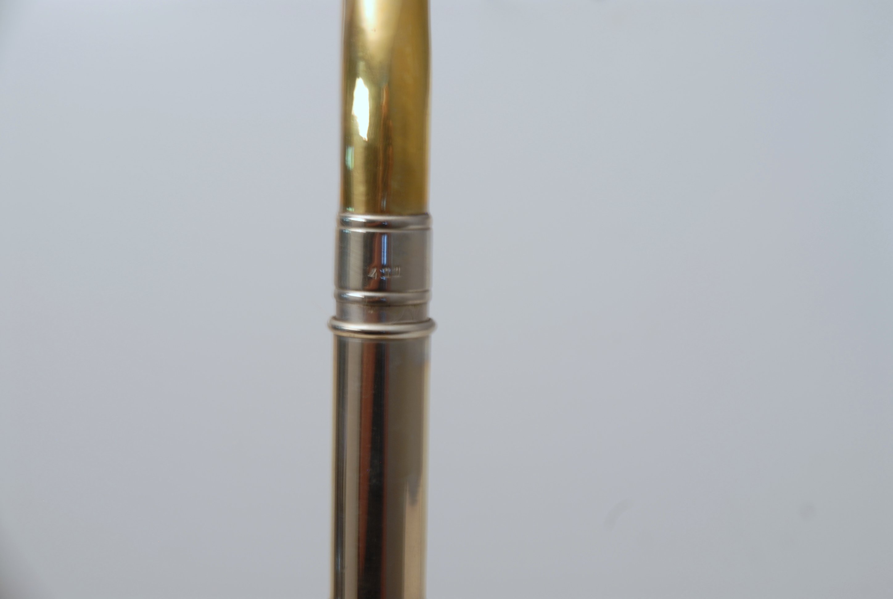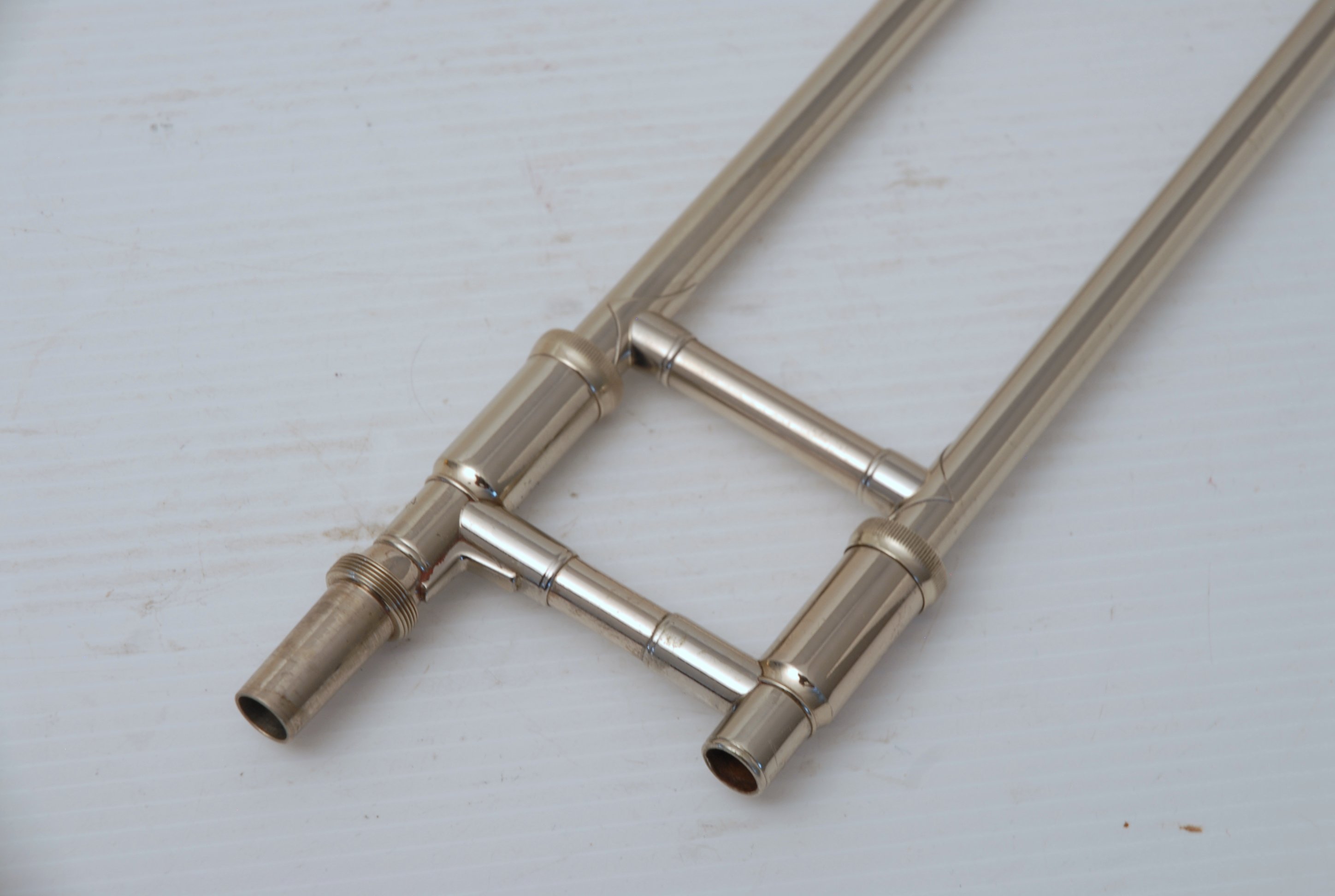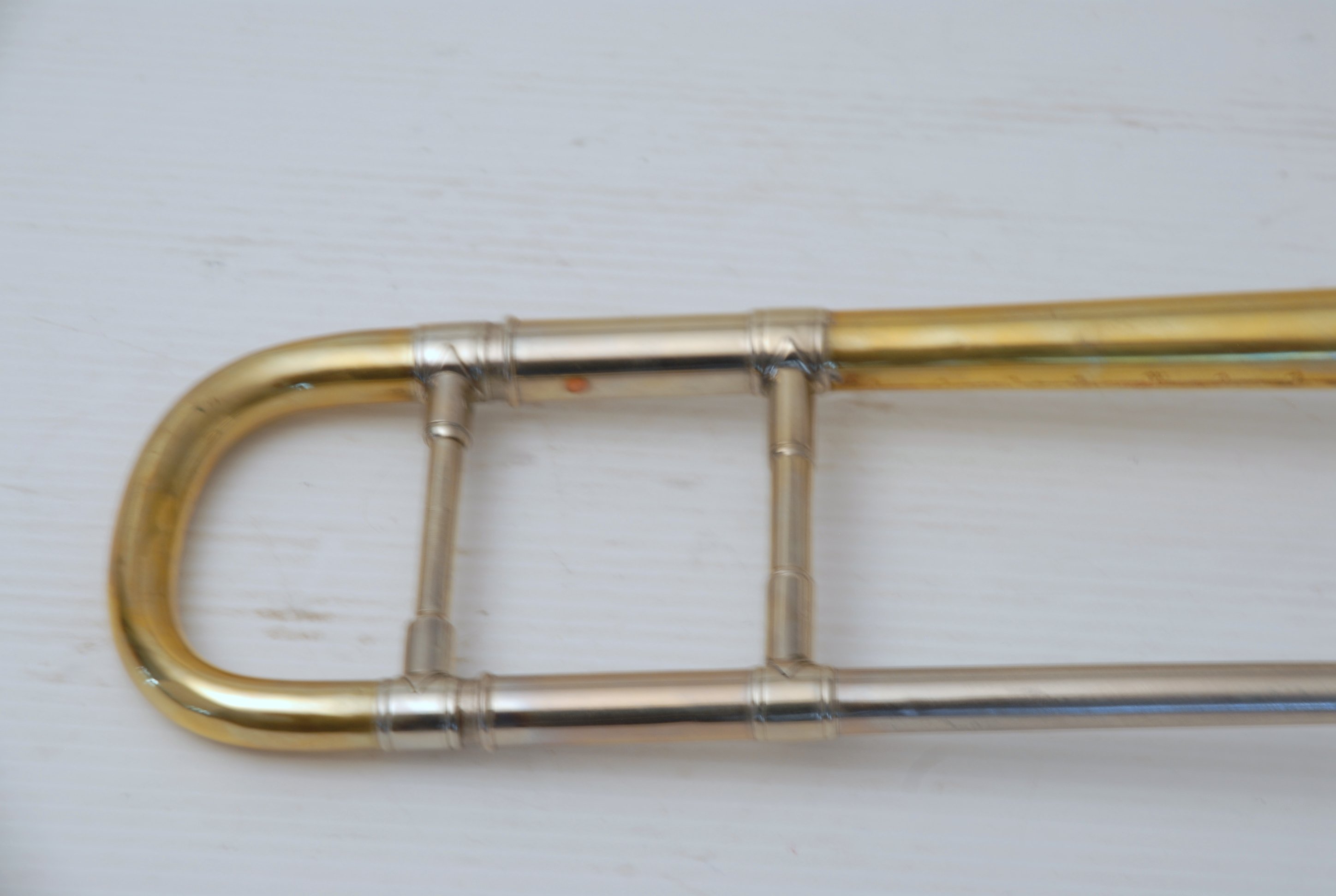 Bach 6.1 Vintage New York era made in 1941.  Hard to believe that one fo these is still in existence in such great condition.  Plays really nice and has a very good Light Weight Nickel Slide.  Has 1 piece yellow brass bell with 7" flare and nickel silver neckpipe.  Most of the lacquer is of the bell flare, but not the neck, braces, tuning slide or handslide.  This .485 bore has lots of center and would make a fantastic lead horn.  No wonder why Glenn Miller made all of his section players play on these.  Non-Original Gator Case included.
