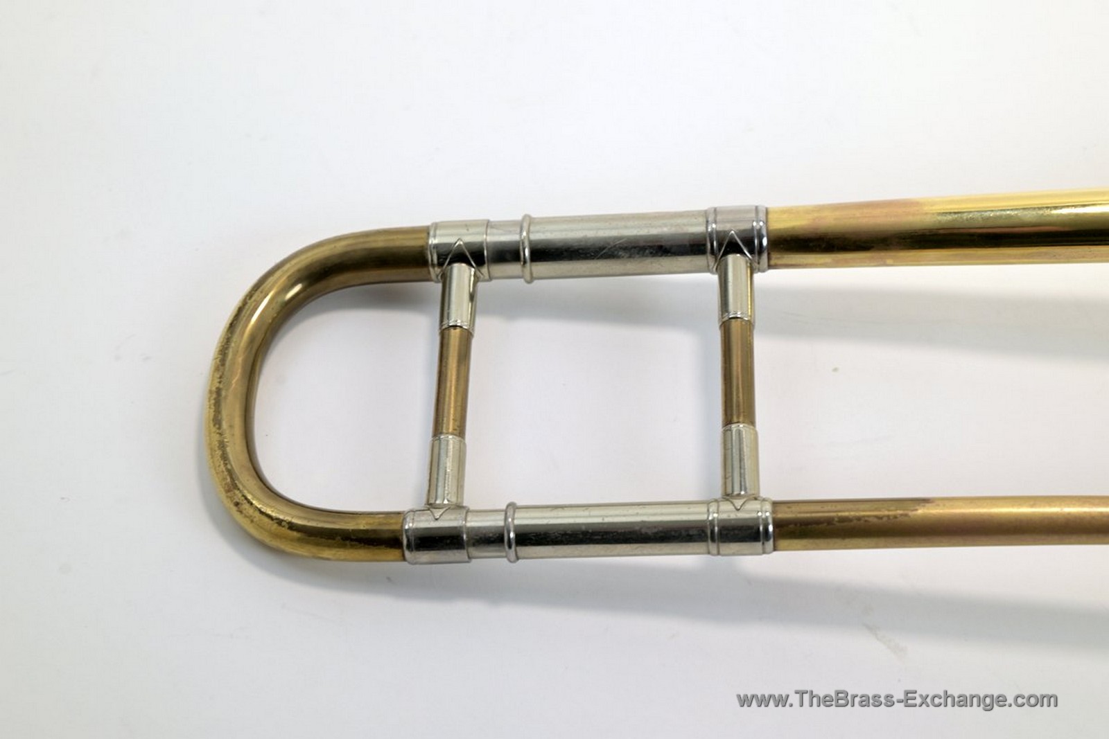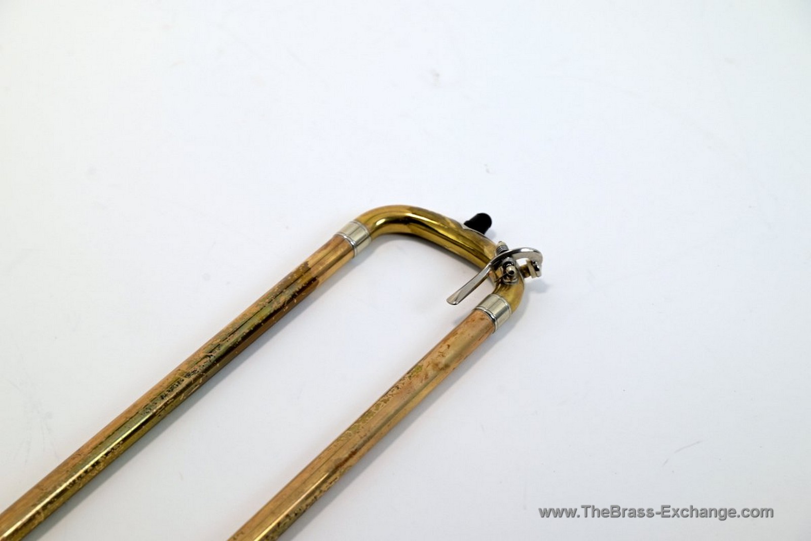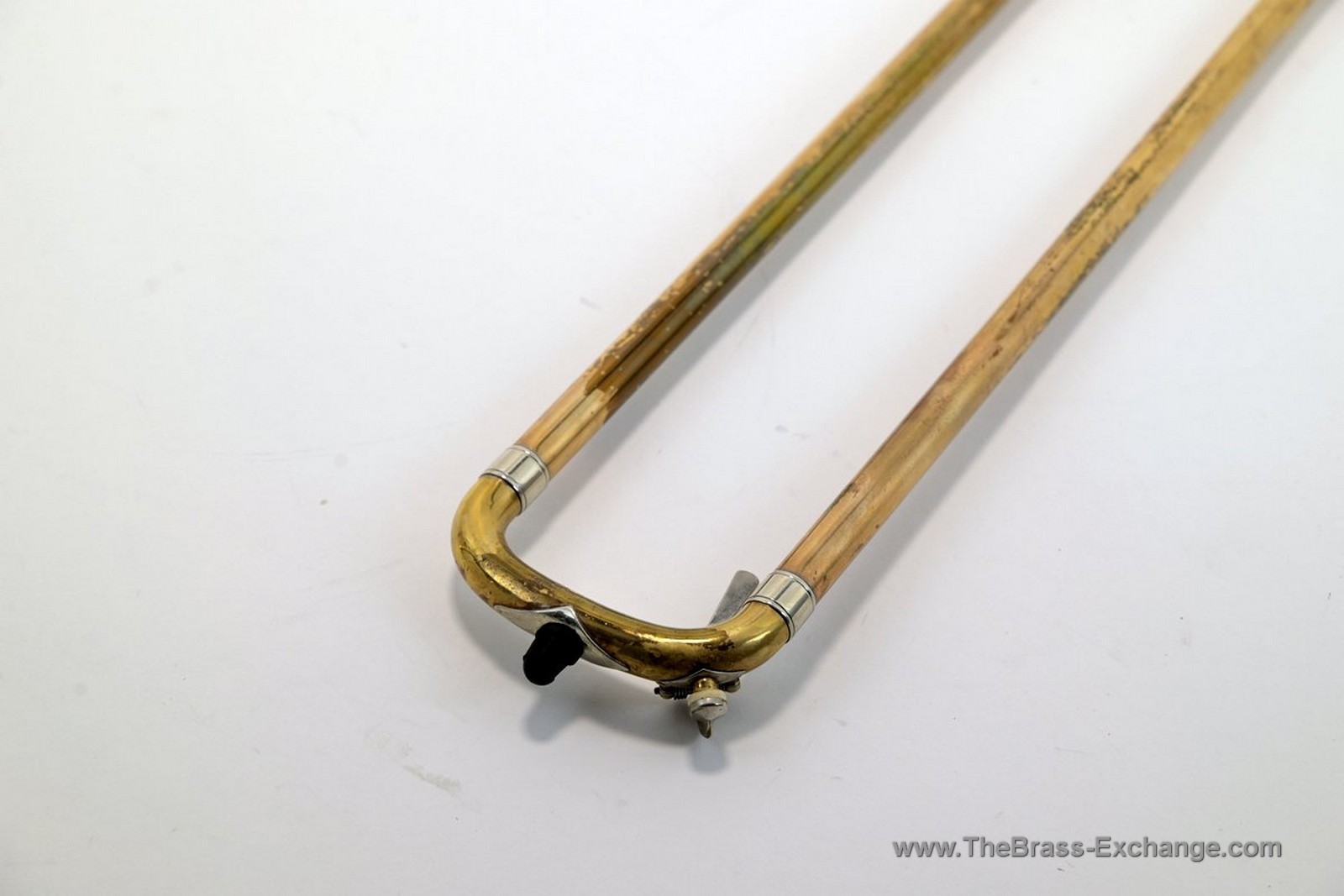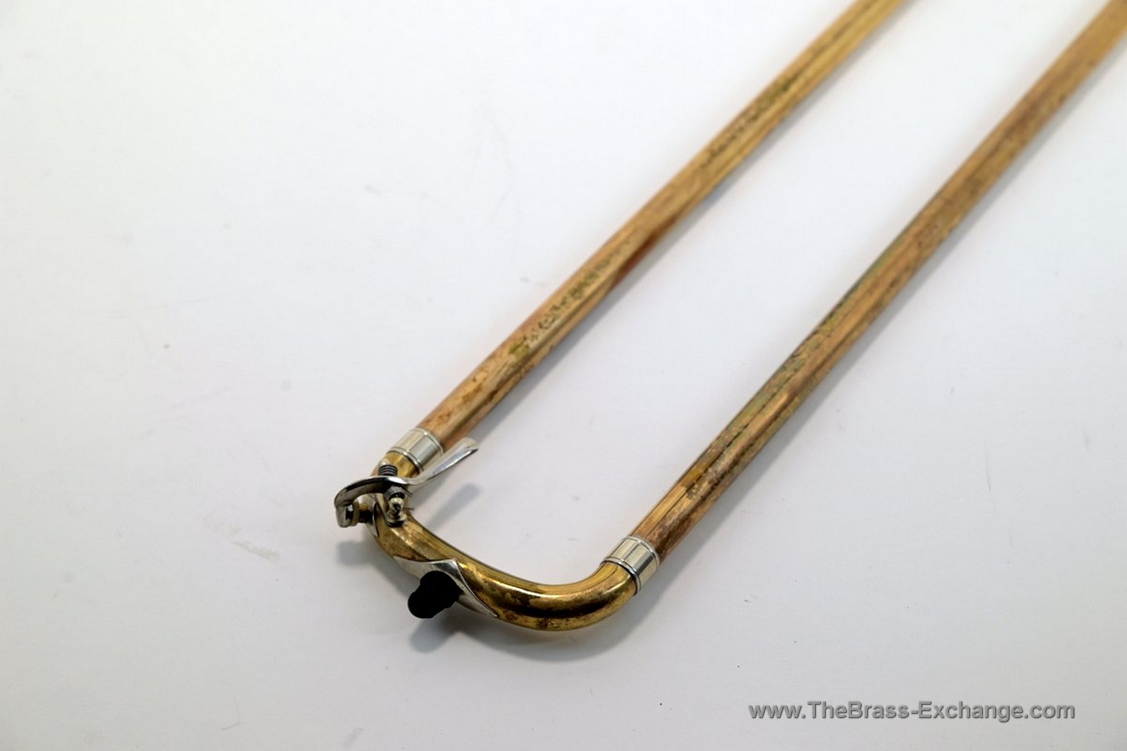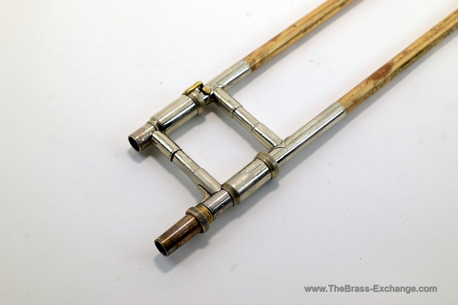 The bell and slide show no evidence of prior structural damage or repair, and the inner slide tubes remain clean with no red rot or plating issues.