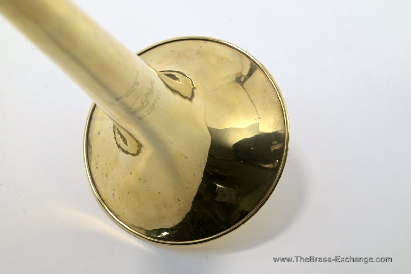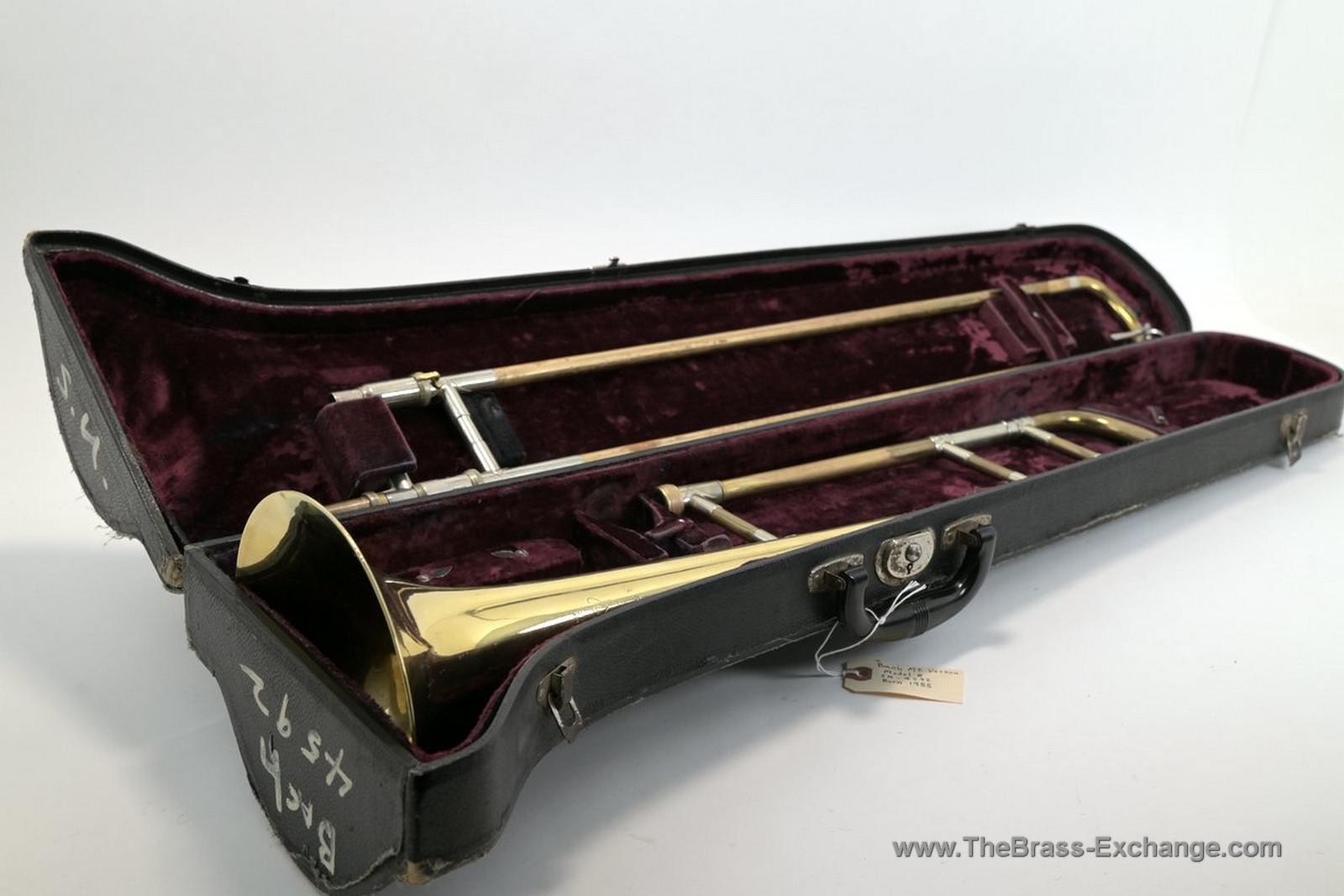 The horn has just received full shop service here at The Brass Exchange, including a chemical bath, slide adjustment, and alignment, and is now player ready.