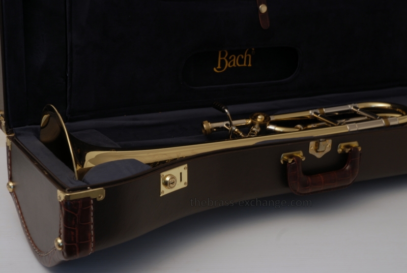 Bach A47MLR, Massimo La Rosa Model.  Super Mint Condition, has barely been played.  Handslide is fantastic.  No signs of any previous repairs or damage.  Valve section plays "open" and has super fast mechanical action. Plays similar to a 42B, but much cleaner and easier to blow.  Comes with Original Case in Mint Condition.    An Artisian Gooseneck for straight tenor conversion is also included.  Mouthpiece Not Included.  This model without the gooseneck sells new today for $4829. Warranty Included. Save Now, Play Great!!