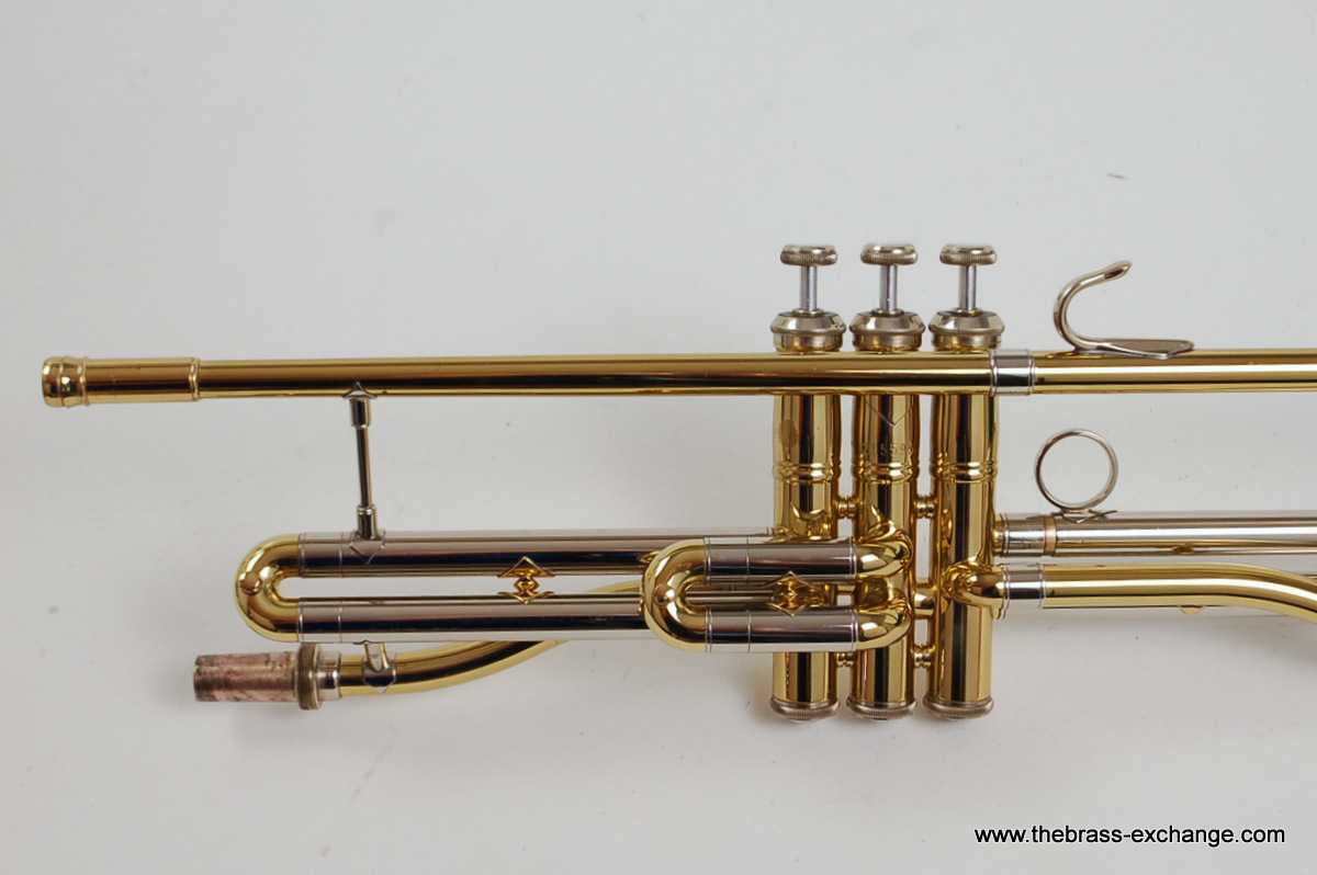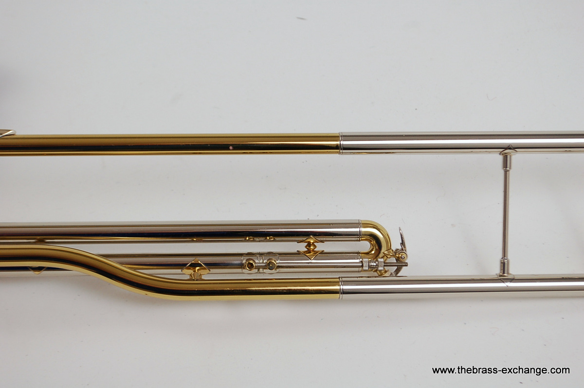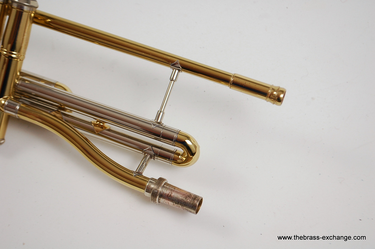 This example, serial number 215595, is in super mint condition. It's a single-owner instrument, built around 2010 and recently received full shop service, including a chemical bath, new pads and felts, and a complete inspection. There are no dents, dings, or signs of wear—it's obvious the horn was barely played. It features the 7.5" yellow brass Bach 16 bell, and is compatible with Bach 16 and 16M handslides.