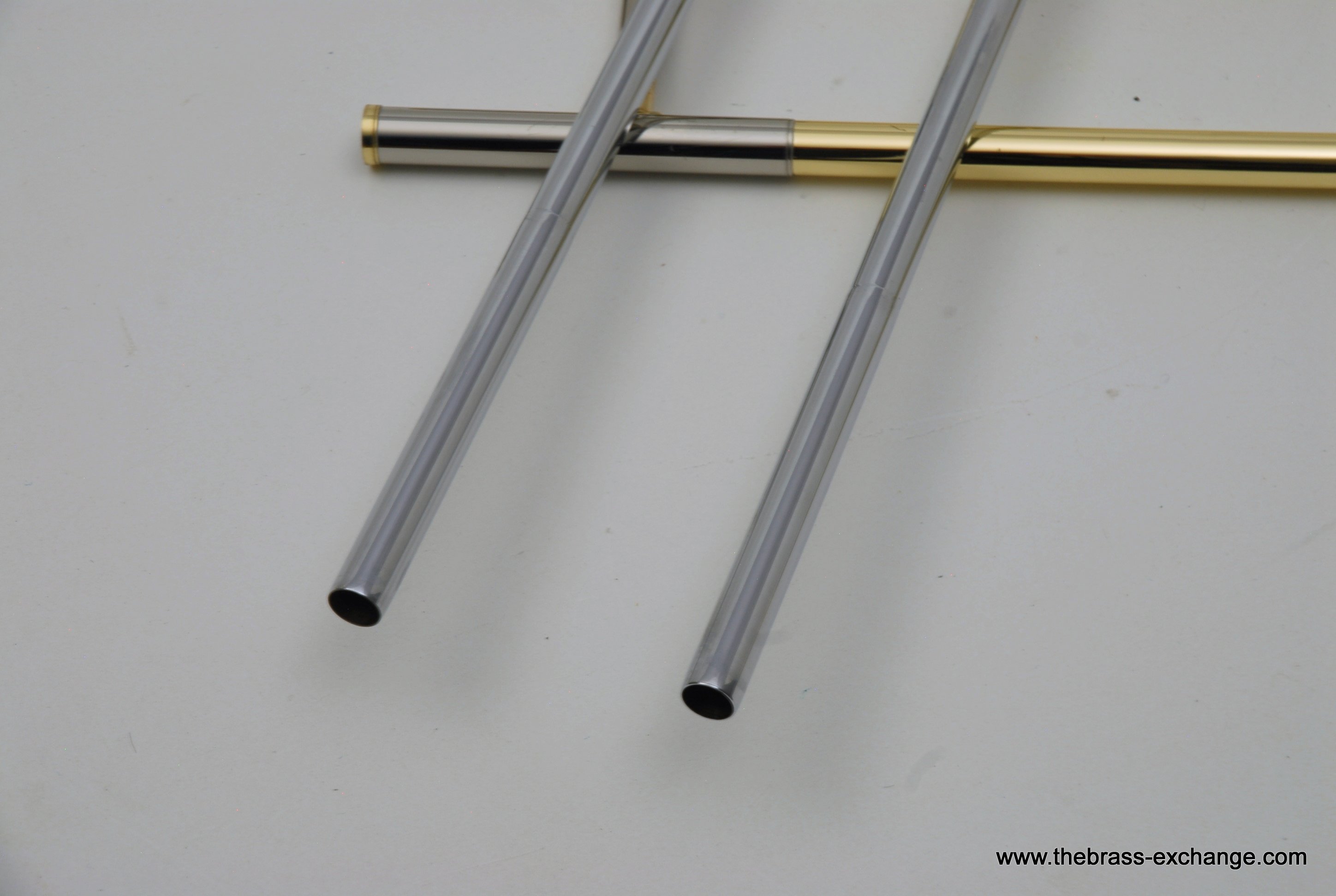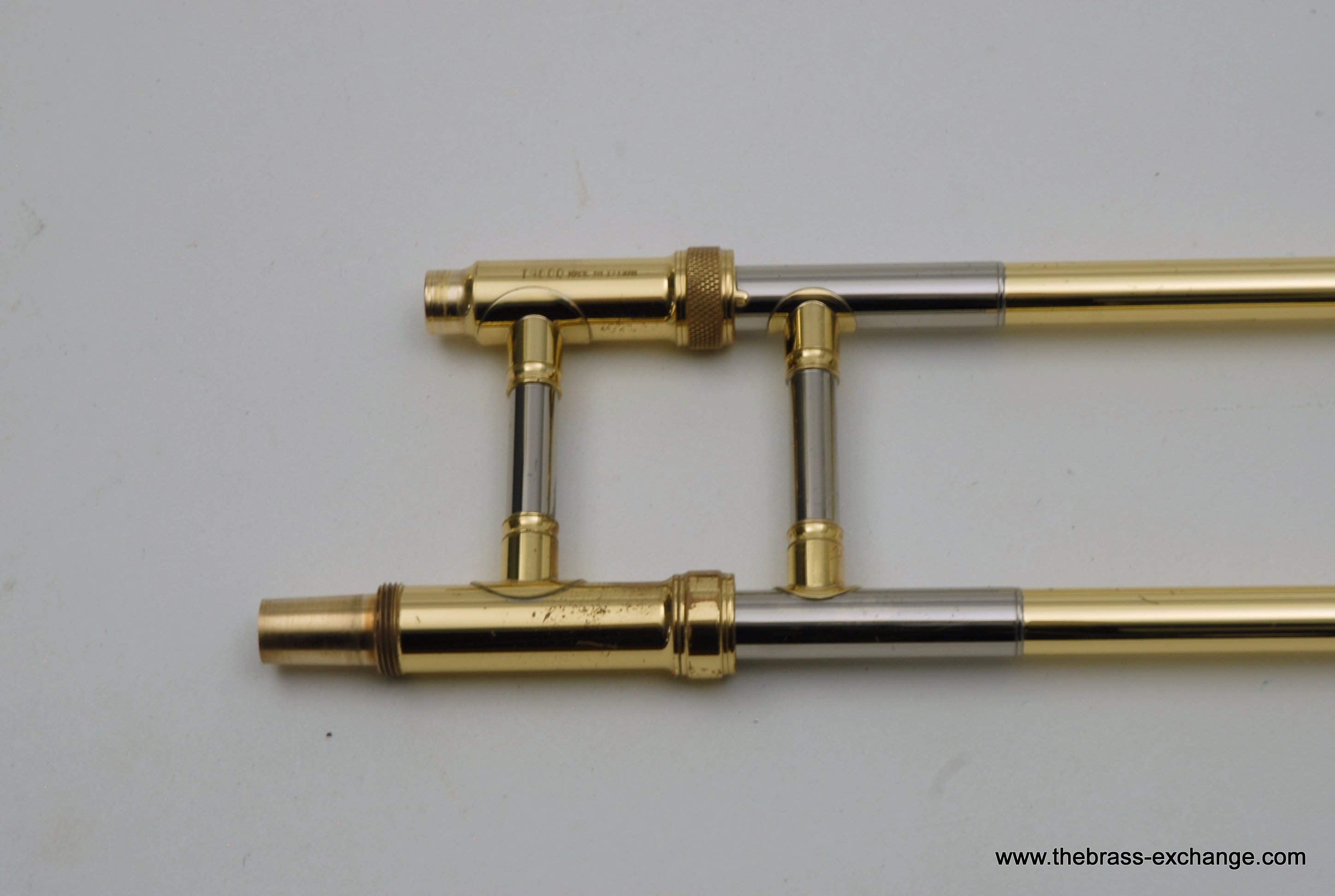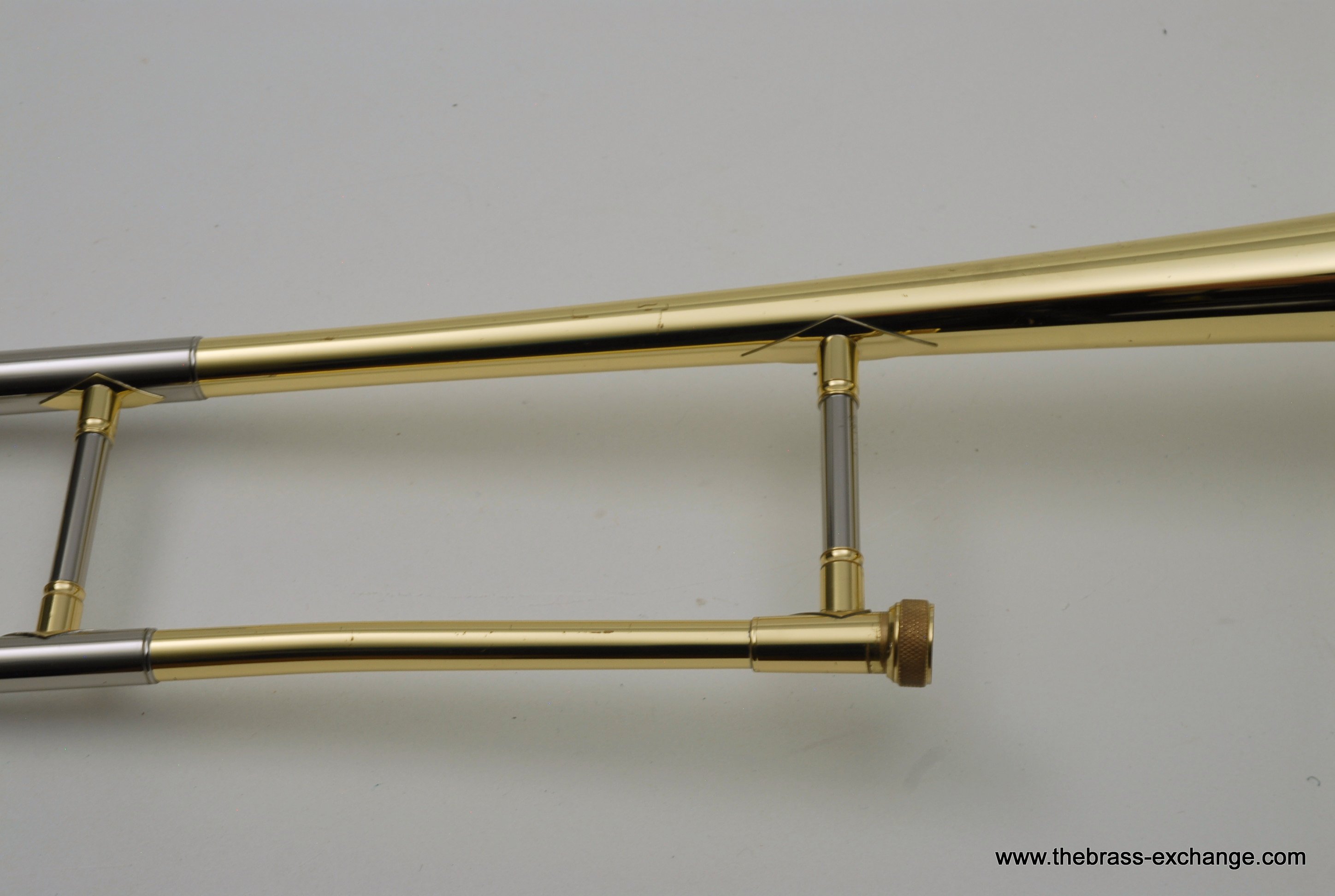 Bach TB600 Student Trombone .509 Bore Very Nice Pre owned. One owner lightly used for a couple years. We did full shop service here including chemical bath and once over. No dent's or dings, excellent slide action, no service needs to improve playability. No cosmetic issues either, has clean lacquer finish, nice yellow brass finish color. These are made in Taiwan, where many of the student horns are made today. We like the model. This one will not disappoint. Has 8" yellow brass bell, .509 bore slide. Super Clean Case, does not appear used heavily. Would be an excellent choice for anyone looking to avoid rental and full retail at over $1600. Mouthpiece Included. Save Now!