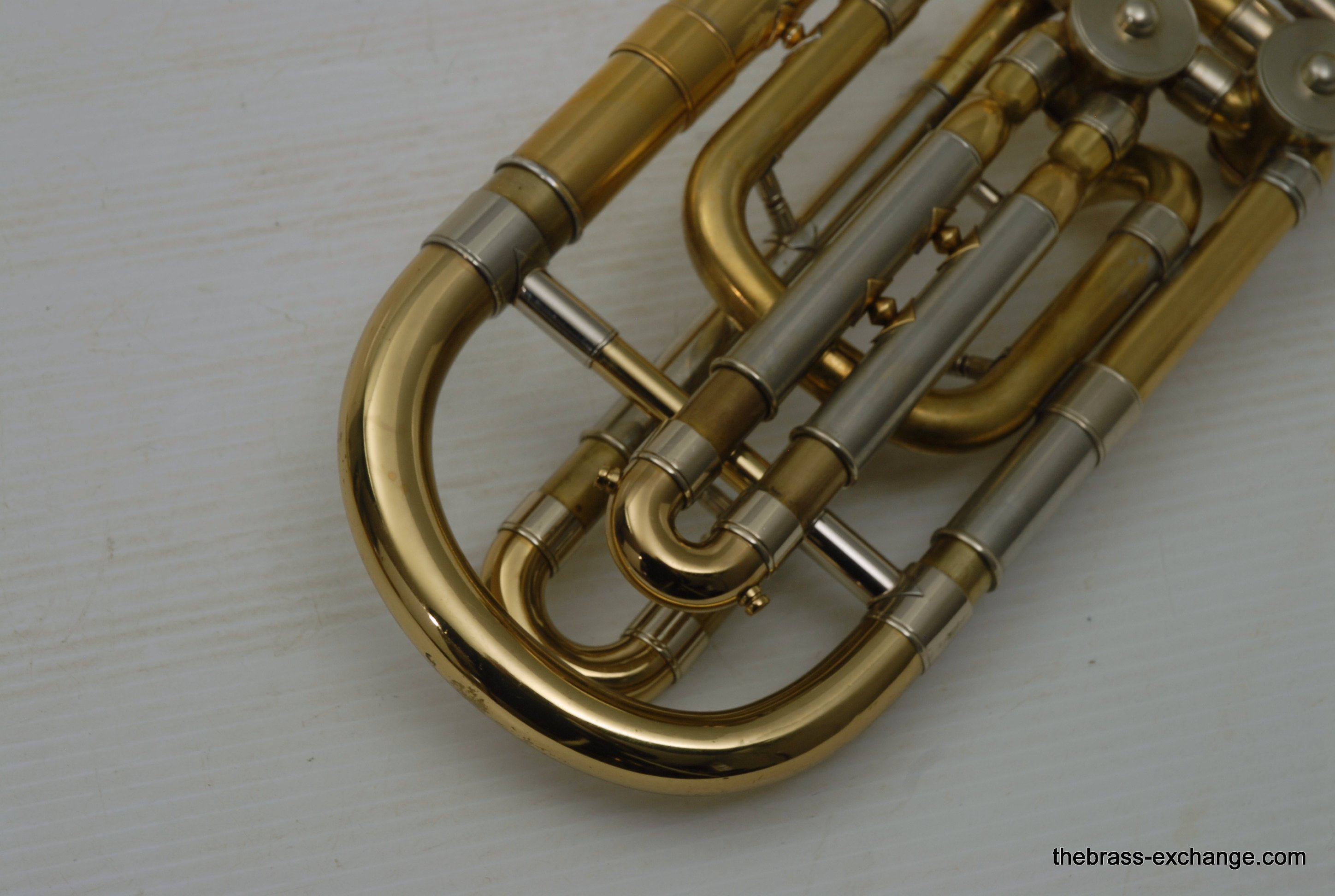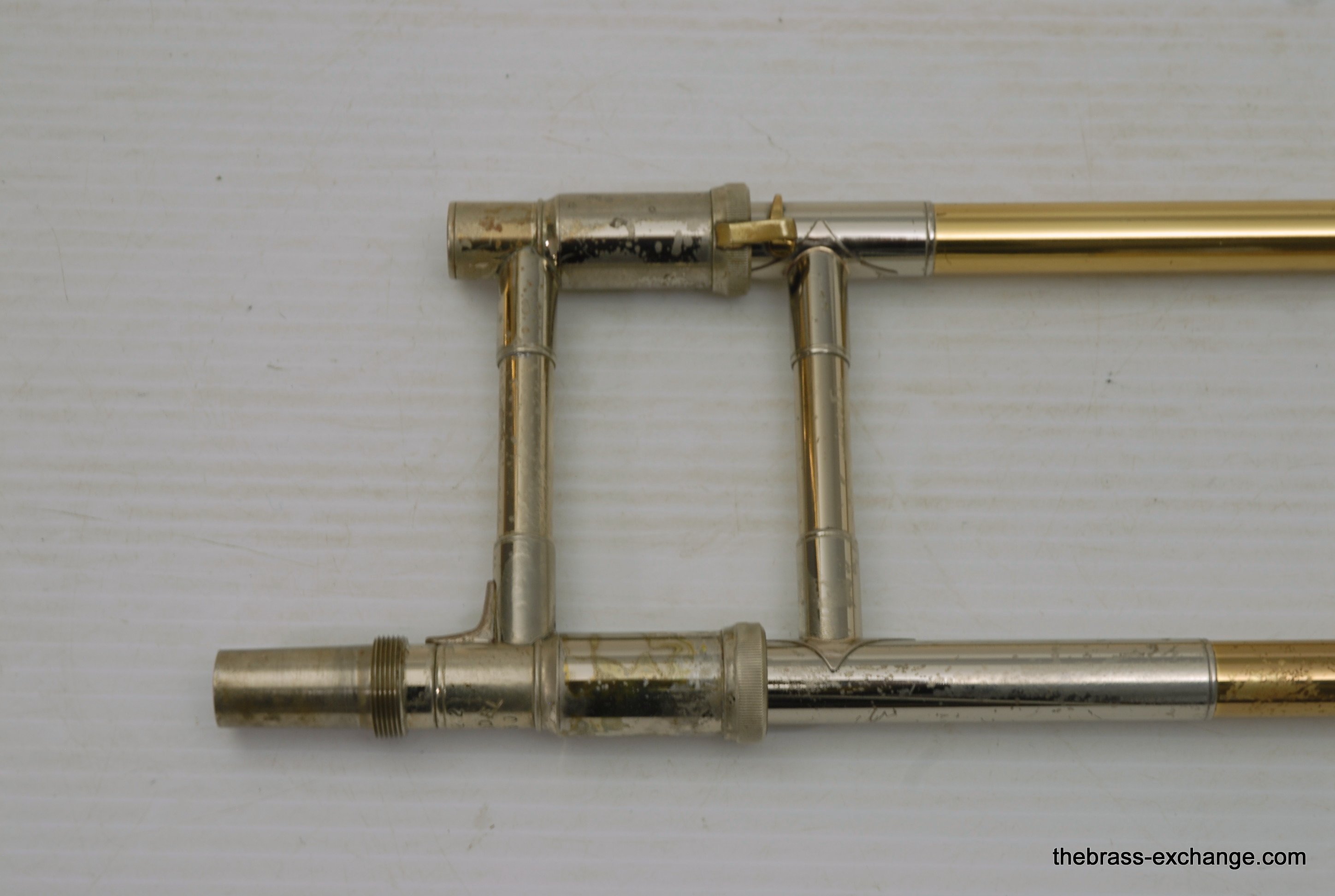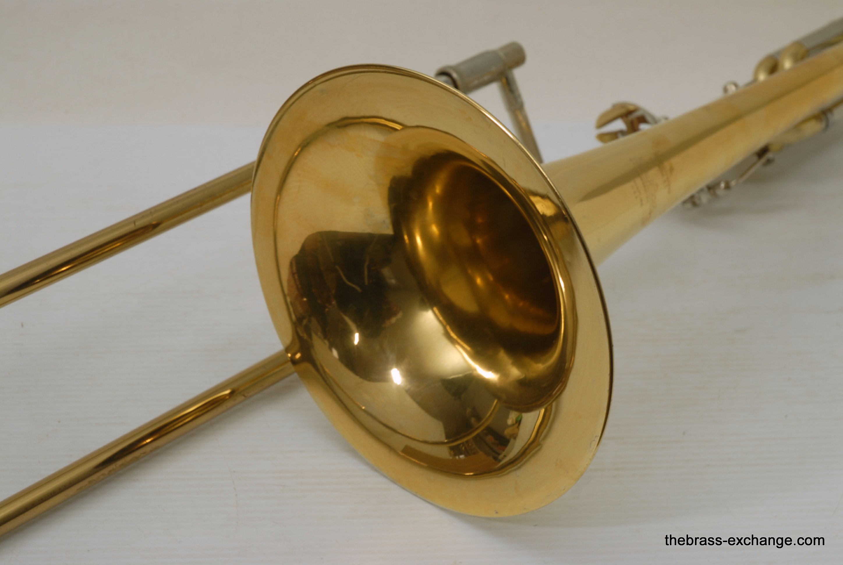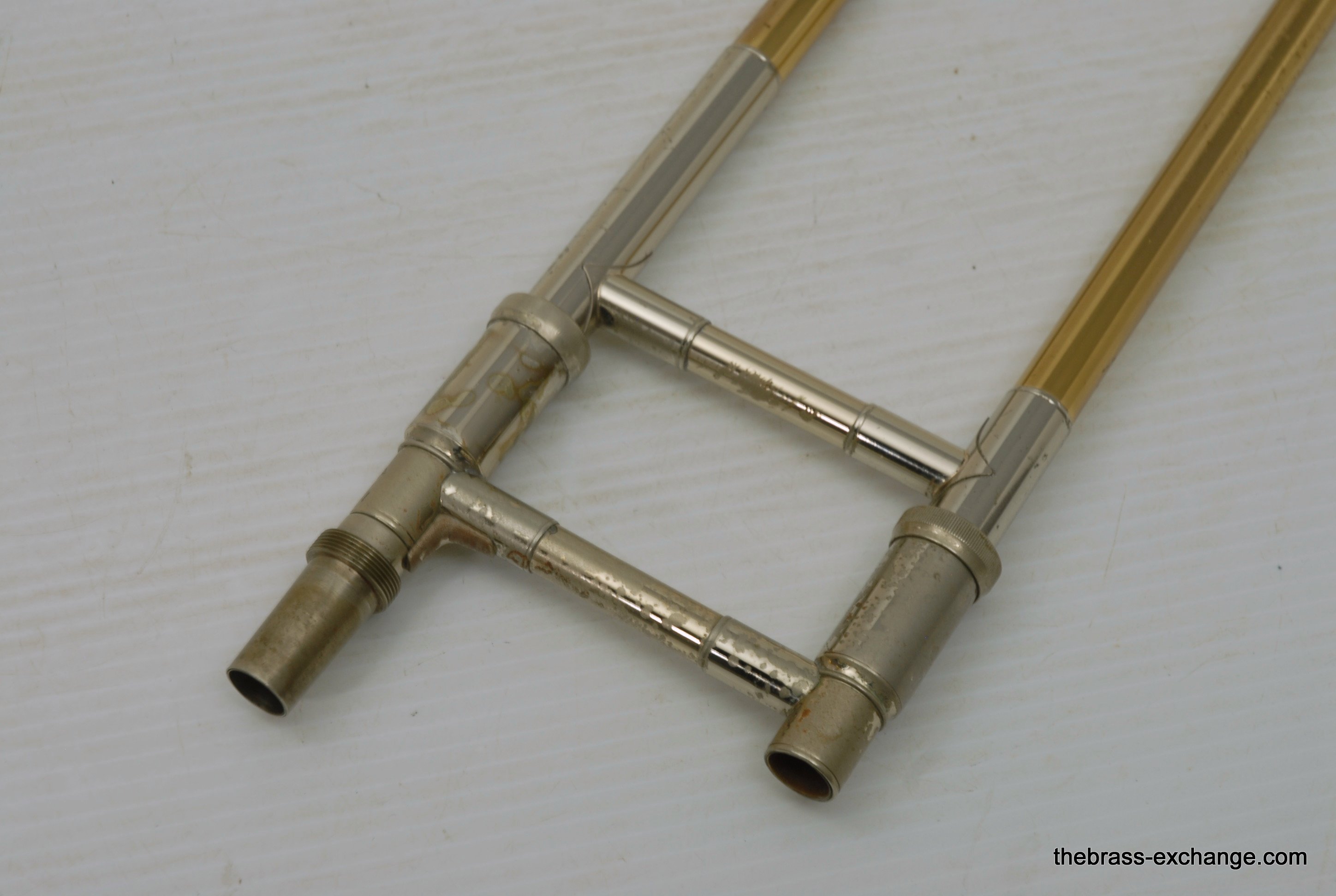 Bach 50B2 Bass Trombone "Corporation" 1973 Gold Plated. Dependent Valve Set with Bb/F/Eb Tuning. The original owner, a prodigy of Edward Kleinhammer, Chicago Symphony, had the bell gold plated. Tuning slides are brass/lacquer.  Now retired from playing 20 years, this horn played over 500 Nutcrackers. This is a serious pro level Bass Trombone. No flaws, or issues. Gorgeous dark Bach sound with gold plating, is legit all the way. Never any damage or repairs to bell section or hand slide. The hand slide is fantastic, we did a Pro Slide Set-up. It's as smooth as any great slide can be. Photos taken prior to our shop service, which includes chemical bath, rotors removed, casing polished, adjust, etc. Hand slide is amazing, inner slide tubes are 100% no plating loss, outer tubes excellent too and no signs of dezincification. Original lead pipe, never pulled or modified. Original case. It's not a Mt. Vernon Era, but it is pretty close.