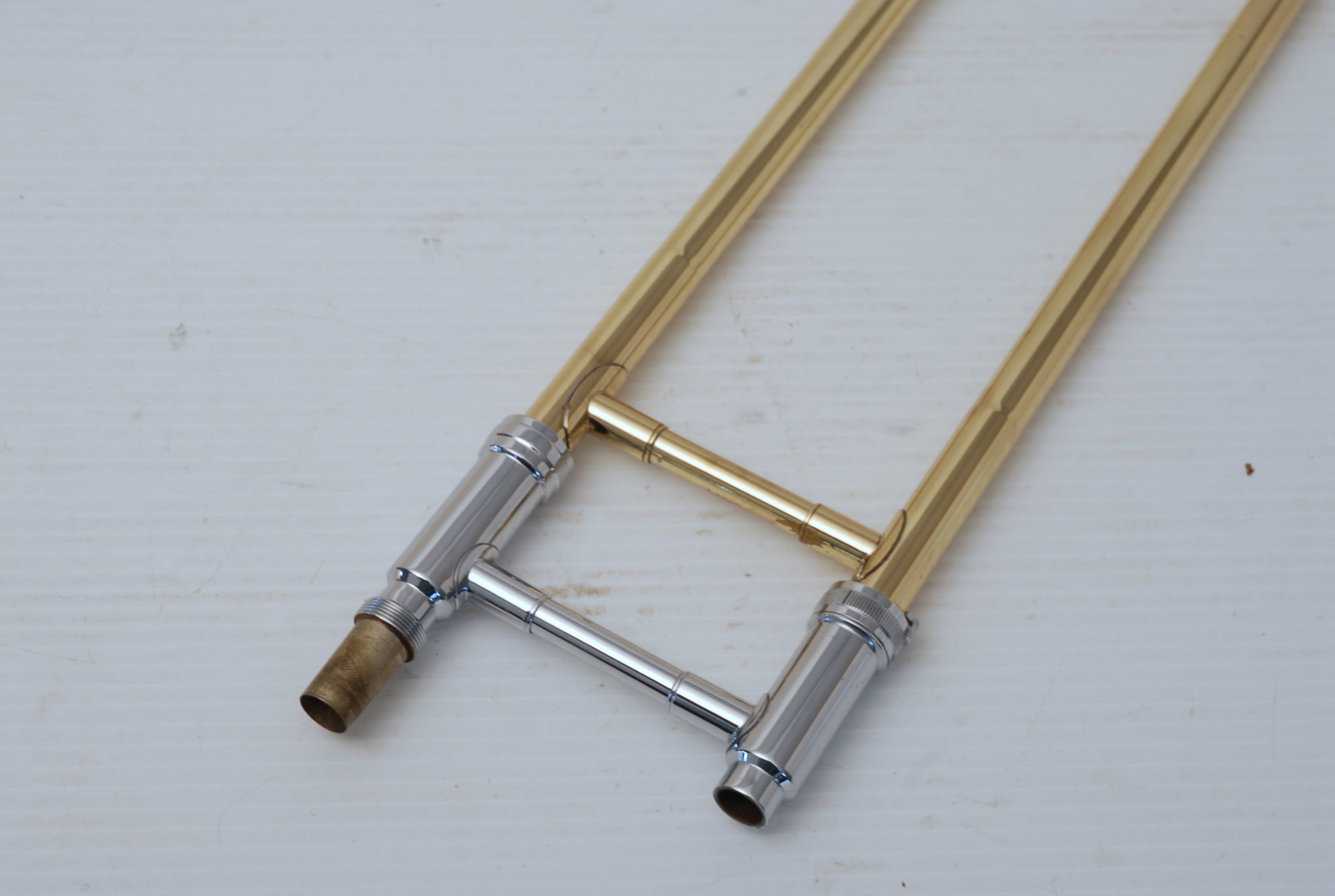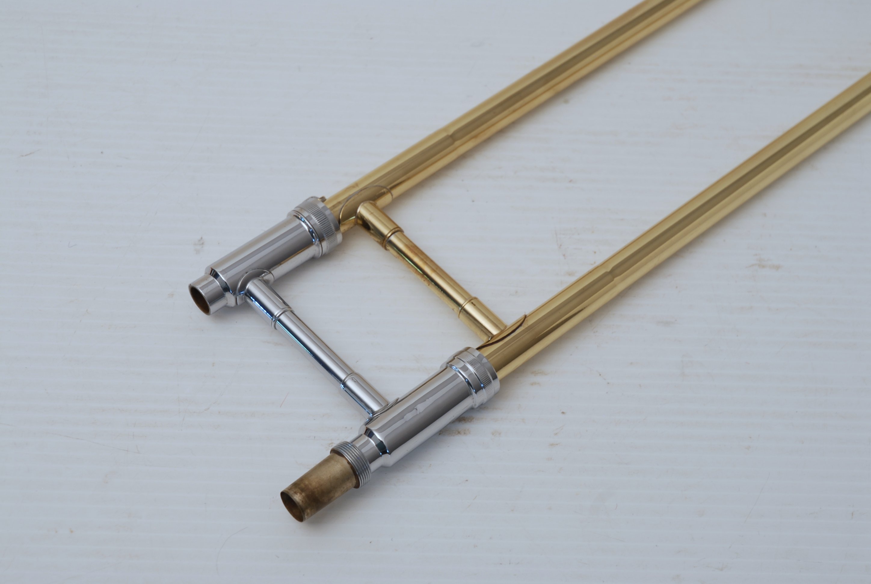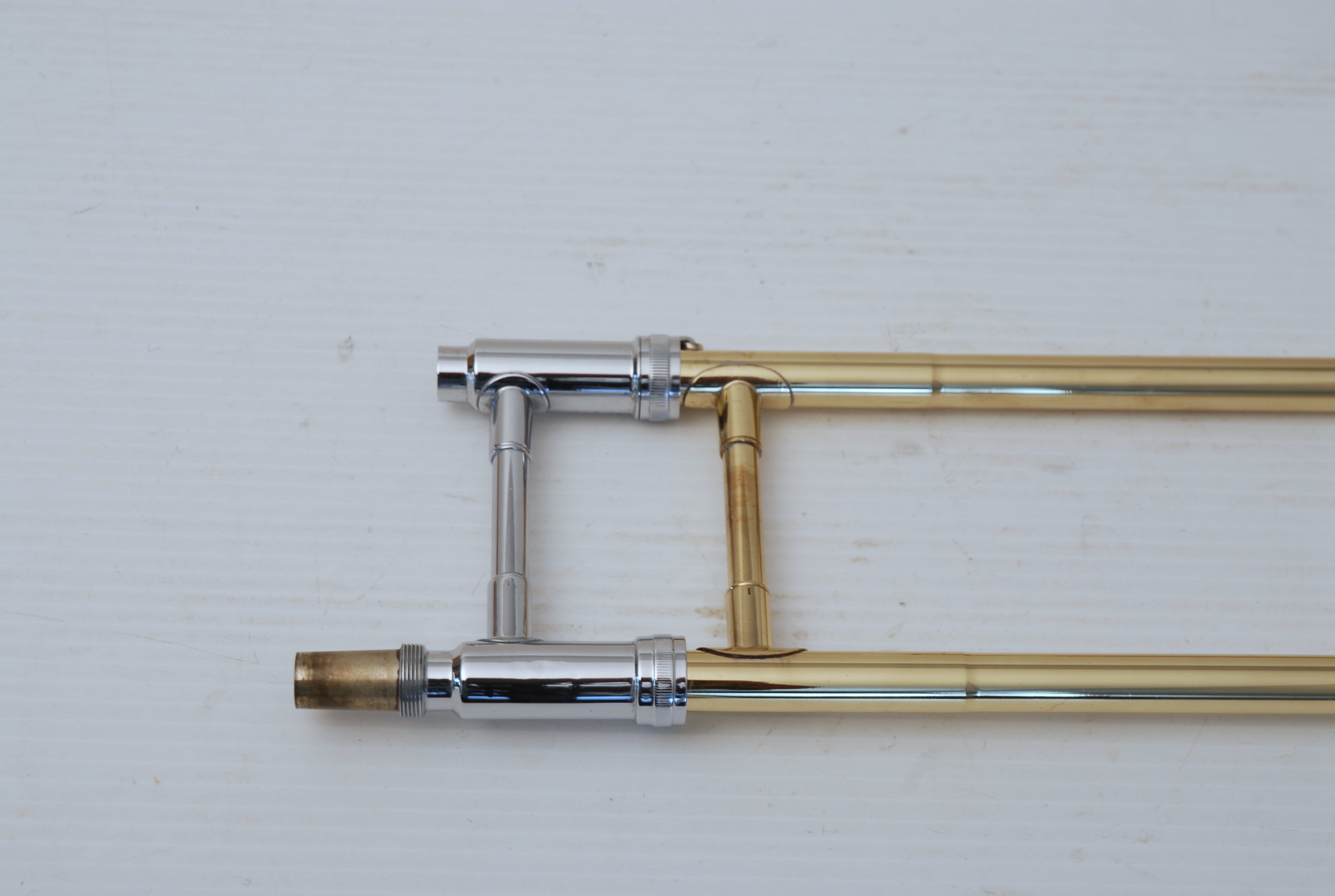 Besson Sovereign Model 900. Made in England. Straight Medium Bore .525 Tenor Trombone. Has 8.5" Gold Brass Bell. Is like an 8H just a little smaller in bore. Would make an excellent all around tenor for advancing student or any player looking to use something a little smaller and lighter than the bigger .547 open wrap models. Is in excellent condition. No service needed to improve appearance or playability. Comes with original case.