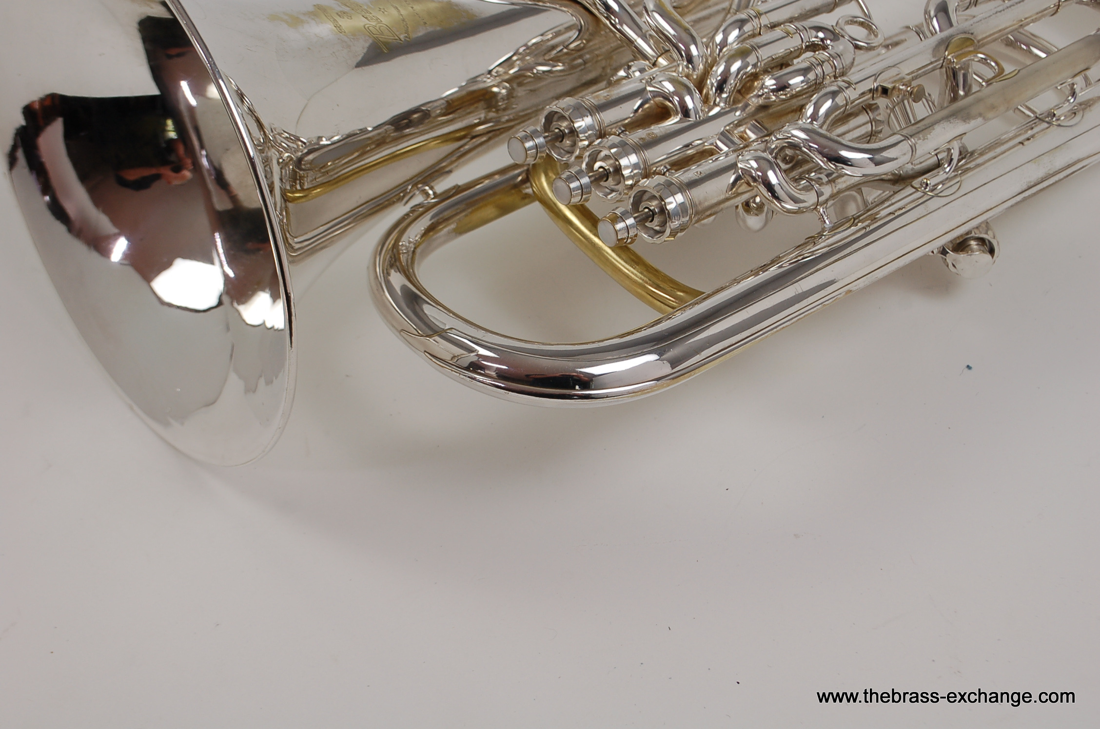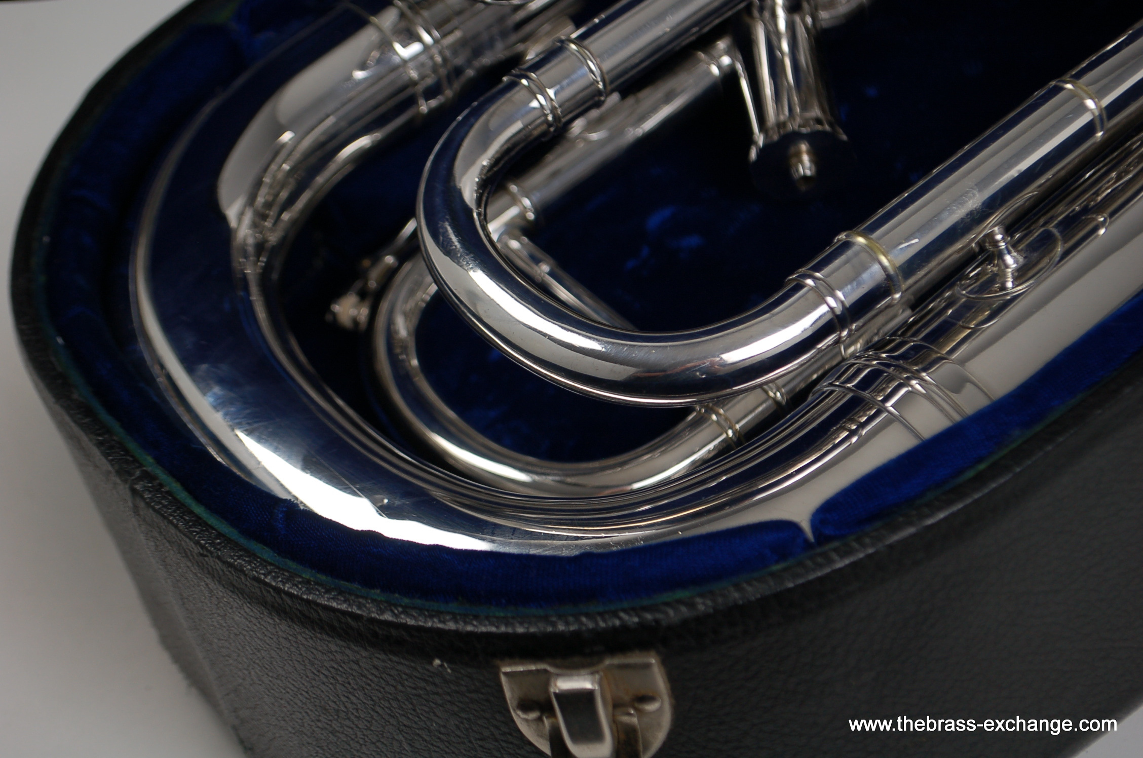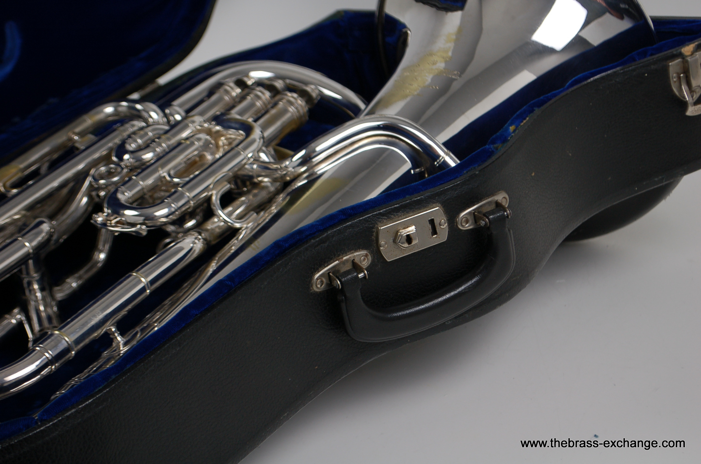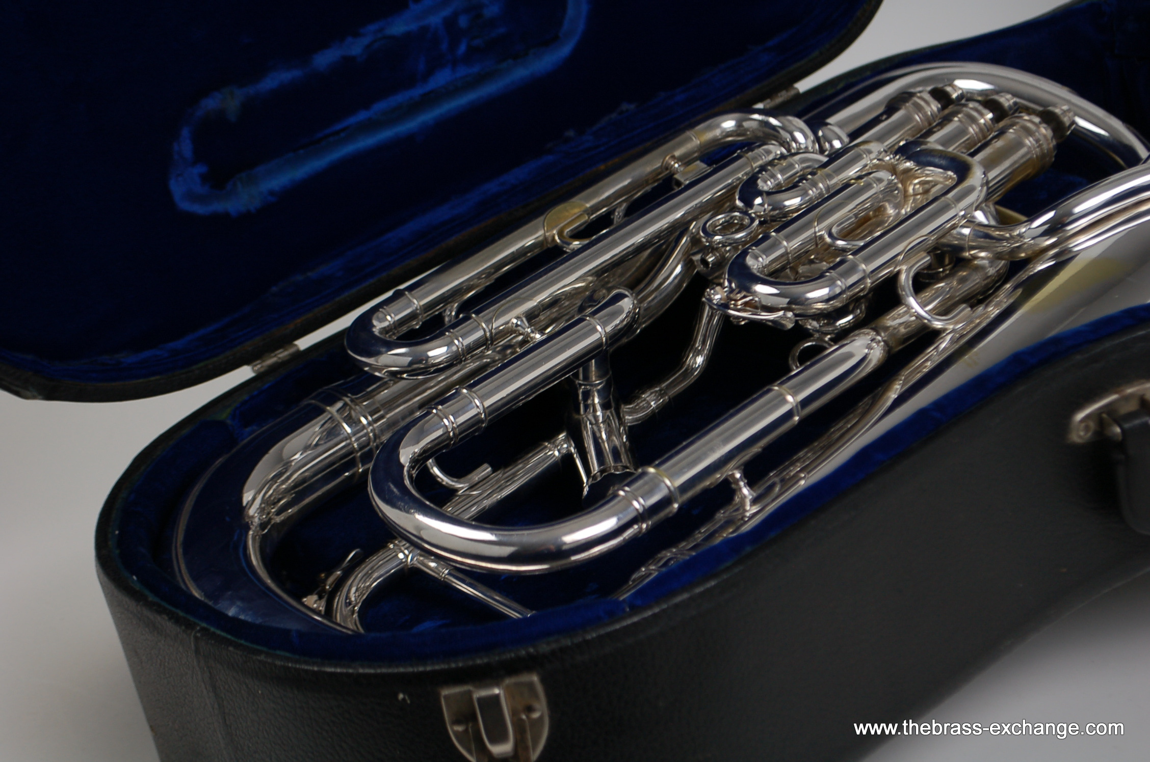 This instrument has been carefully preserved over the years, showing no signs of major damage or past repairs. The original silver plate finish remains in excellent condition, adding to its value and playability. In our shop, it underwent a full inspection and setup to ensure smooth valve action and an even, responsive feel across all registers. The sound is characteristically dark and centered, with a powerful low register and singing upper register, making it versatile for ensemble, solo, or orchestral use.