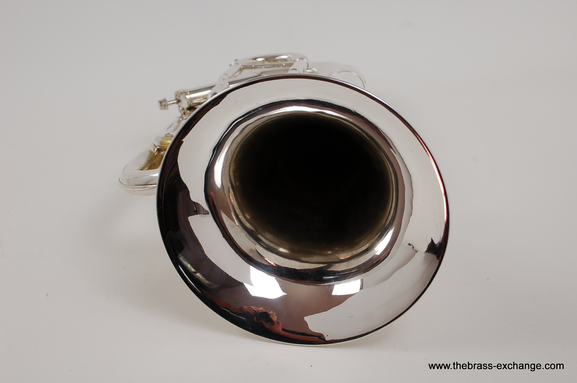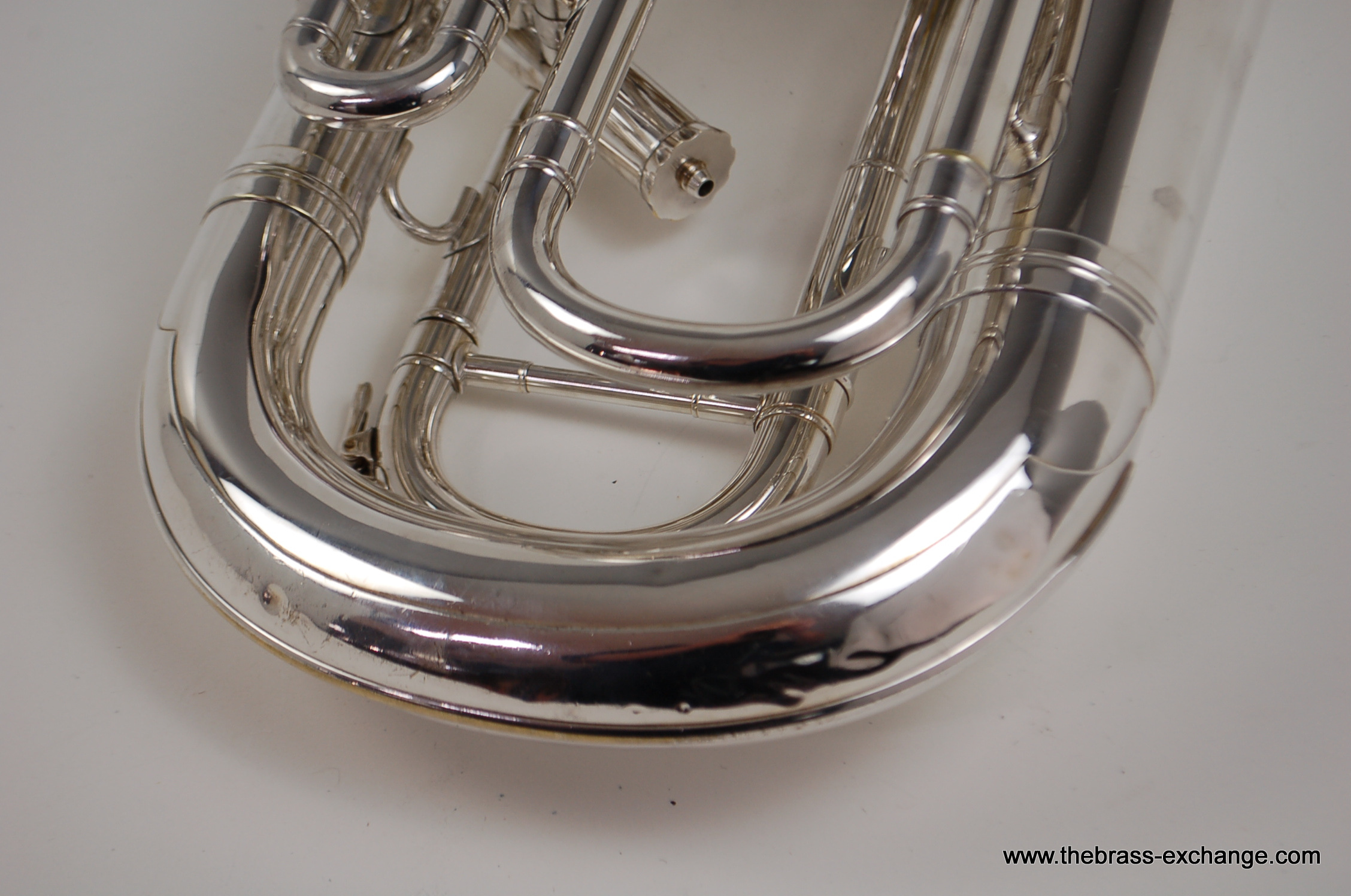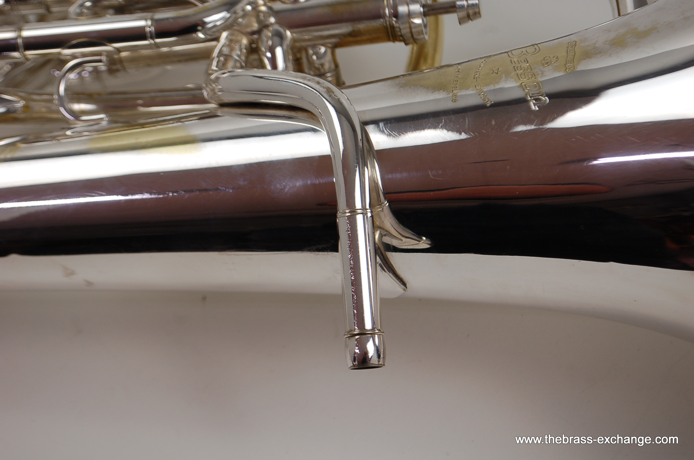 This instrument has been carefully preserved over the years, showing no signs of major damage or past repairs. The original silver plate finish remains in excellent condition, adding to its value and playability. In our shop, it underwent a full inspection and setup to ensure smooth valve action and an even, responsive feel across all registers. The sound is characteristically dark and centered, with a powerful low register and singing upper register, making it versatile for ensemble, solo, or orchestral use.