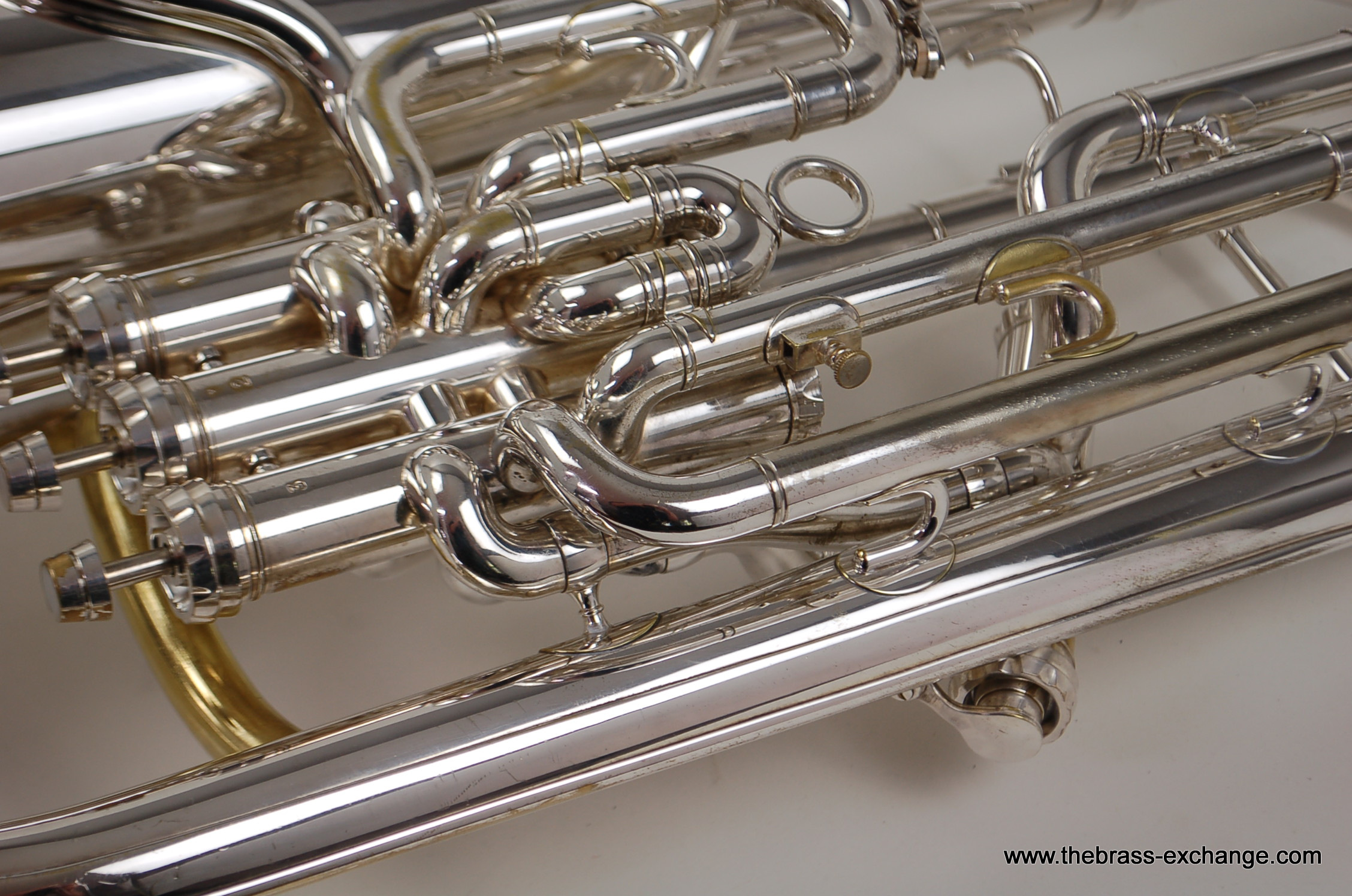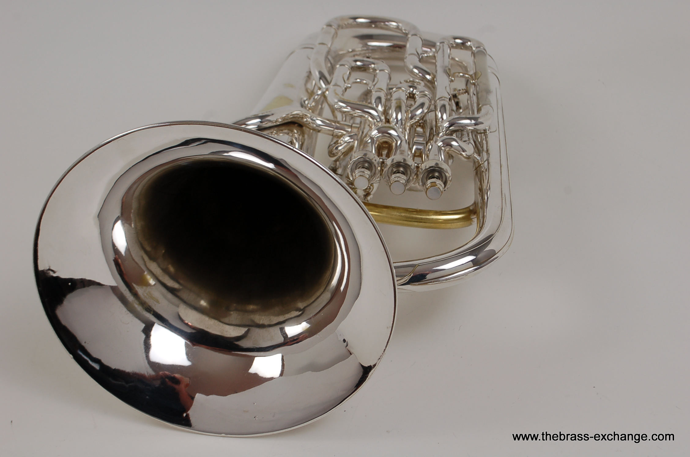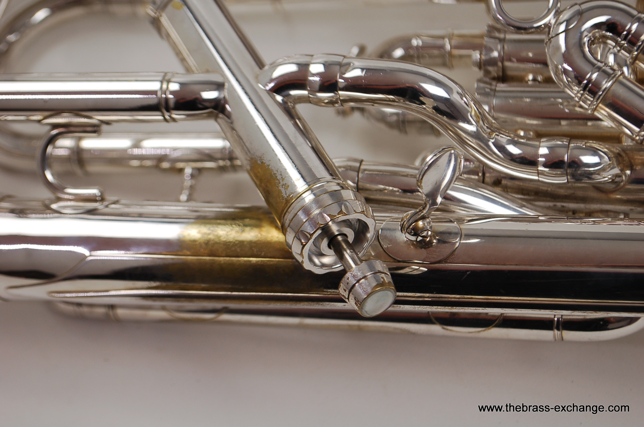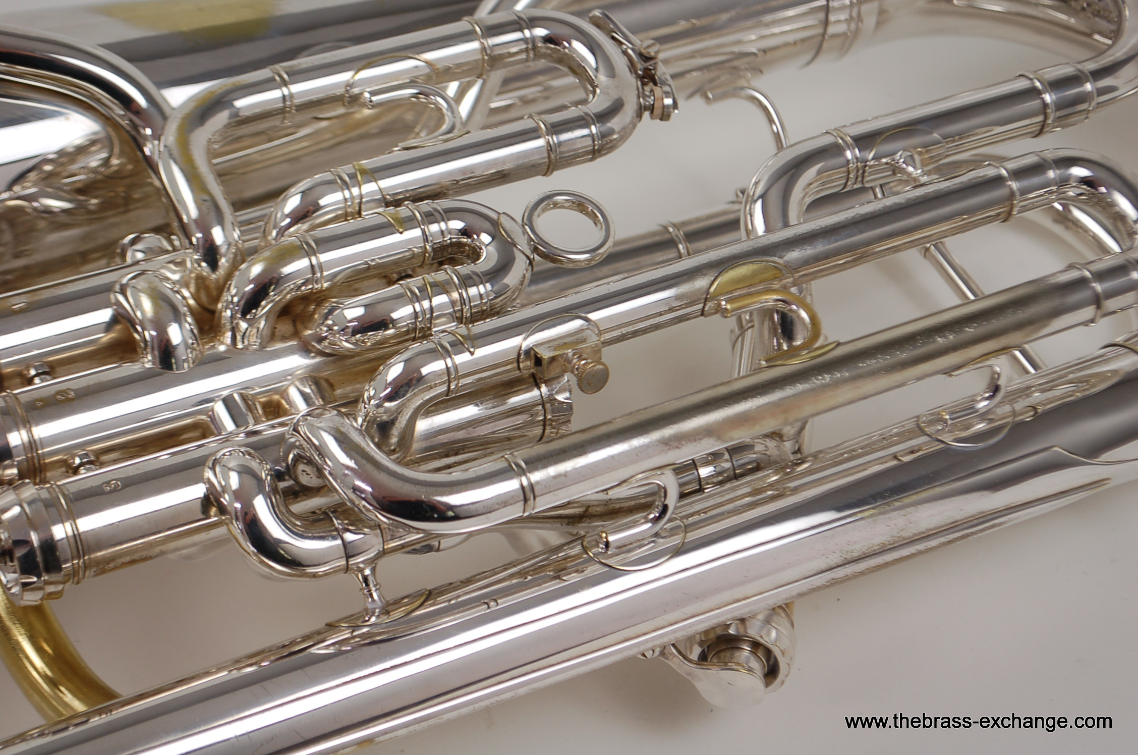 This instrument has been carefully preserved over the years, showing no signs of major damage or past repairs. The original silver plate finish remains in excellent condition, adding to its value and playability. In our shop, it underwent a full inspection and setup to ensure smooth valve action and an even, responsive feel across all registers. The sound is characteristically dark and centered, with a powerful low register and singing upper register, making it versatile for ensemble, solo, or orchestral use.