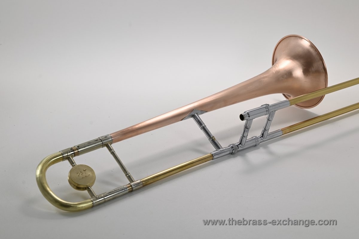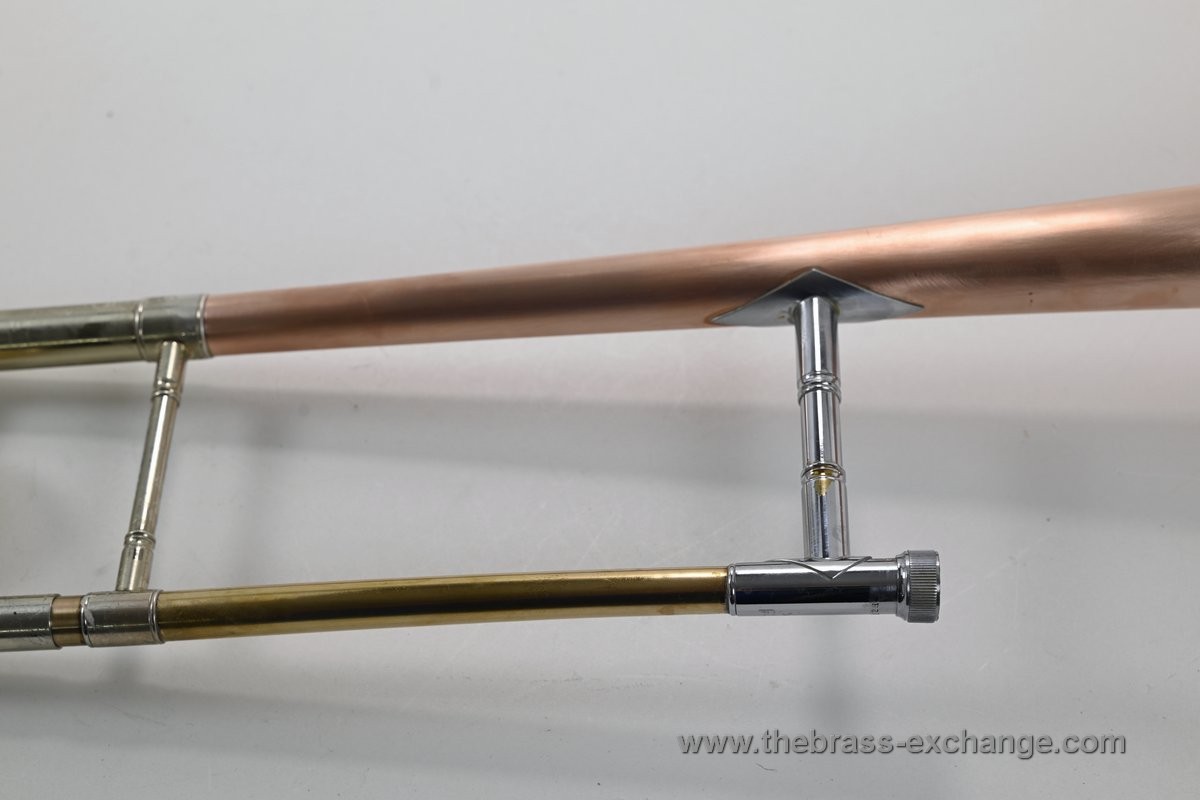 This Conn 12H, built in 1952 (SN 396239), is a beautifully preserved example of Conn’s celebrated Elkhart-era Coprion small bore jazz trombone. It features a 7" seamless copper Coprion bell and a .484–.485 bore handslide, producing the signature Conn 12H sound — crisp, colorful, and powerful enough to be heard from a mile away.
