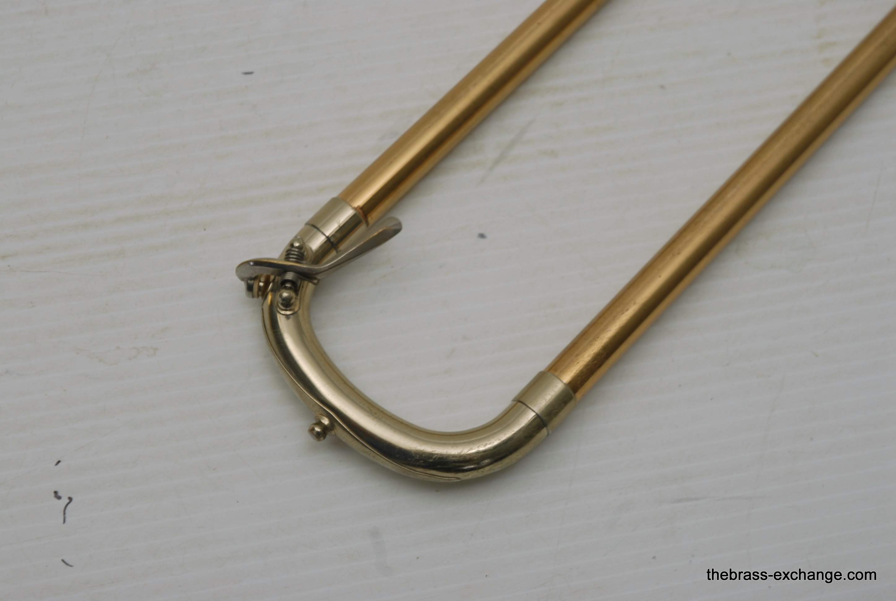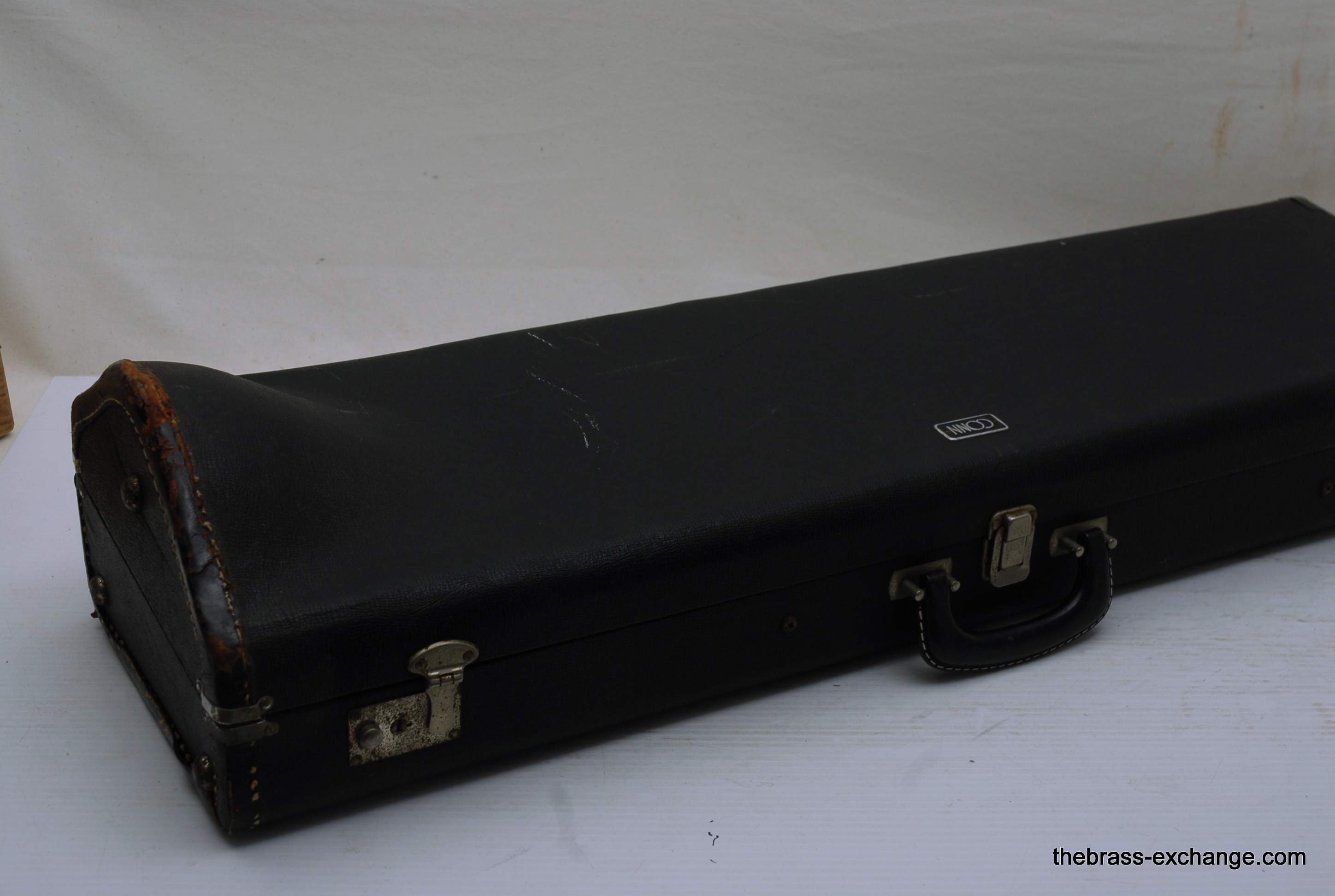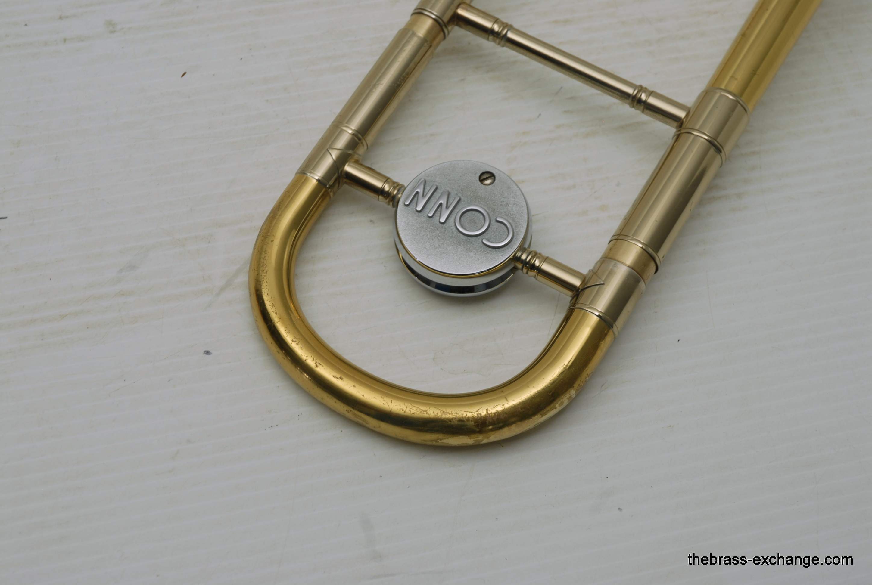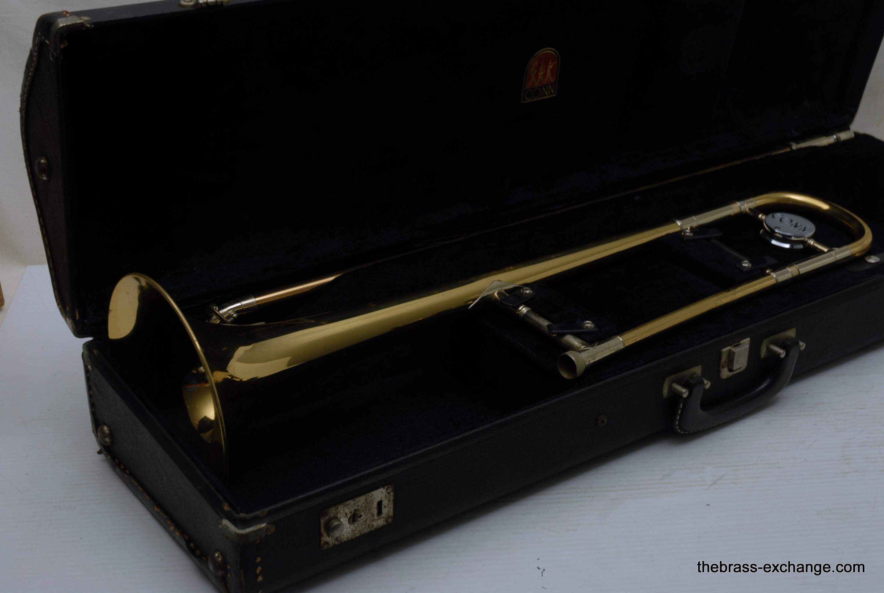 Conn 24H Vintage Professional Jazz Trombone.  Made in Elkhart, IN around 1965.  This is one of the last small-bore models under .500 bore produced by Conn prior to closing the Elkhart factory.  Has 7" yellow brass bell, and .485 bore lightweight gold brass hand slide with nickel end crook.  The back of the slide is stamped LW.  This is the first one that we have seen here since the beginning, and it is quite rare.  Plays with a lot of punch and color.  Can sizzle easily.  Has a screaming high range.  Would be a great sound for a variety of commercial settings, jazz/rock/funk or lead in a big band.  This one is in very condition, has had full shop service, including chemical bath.  No issues with hand slide, no plating loss.  All original parts and lacquer.  Original case in good condition.  In-stock for immediate delivery.