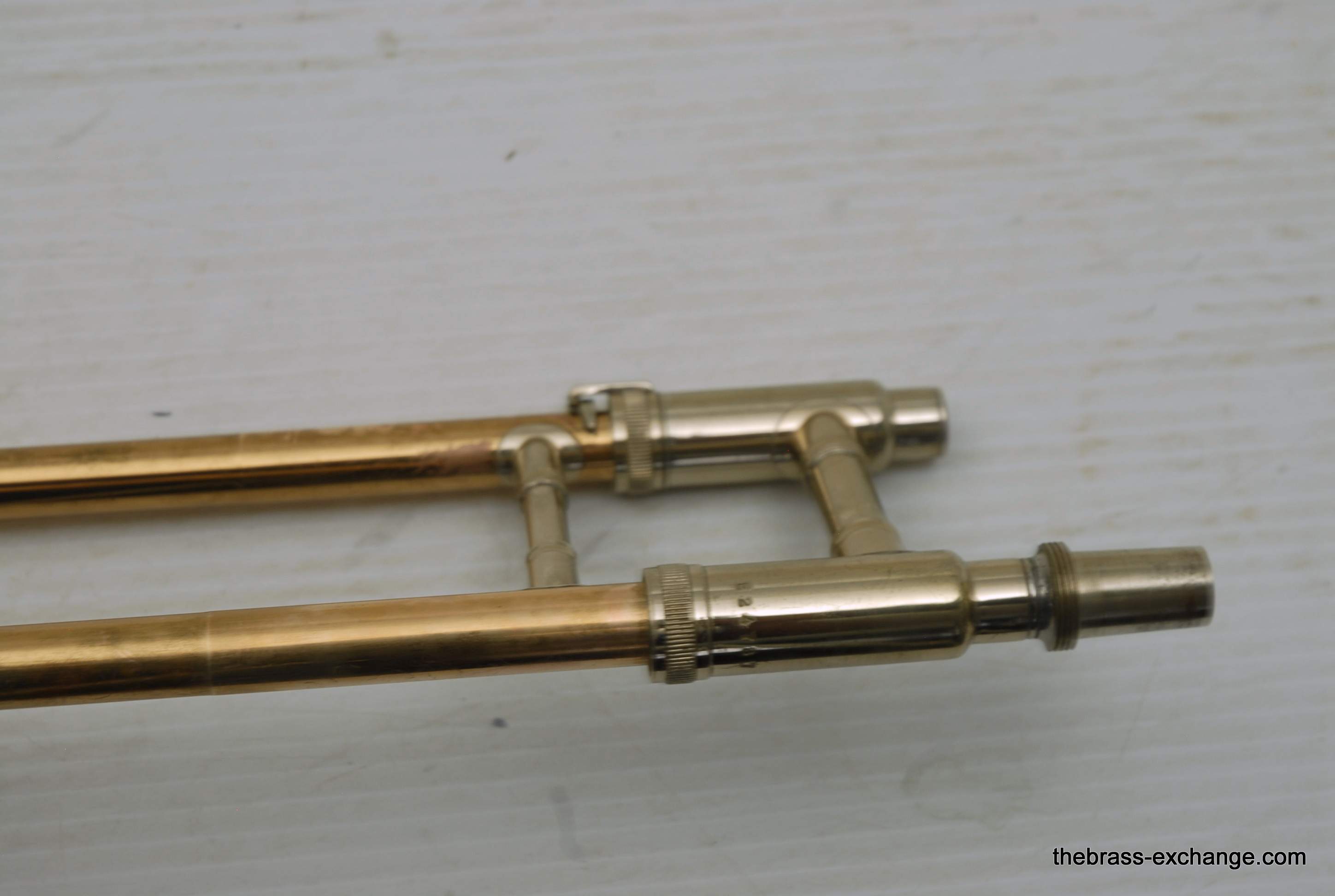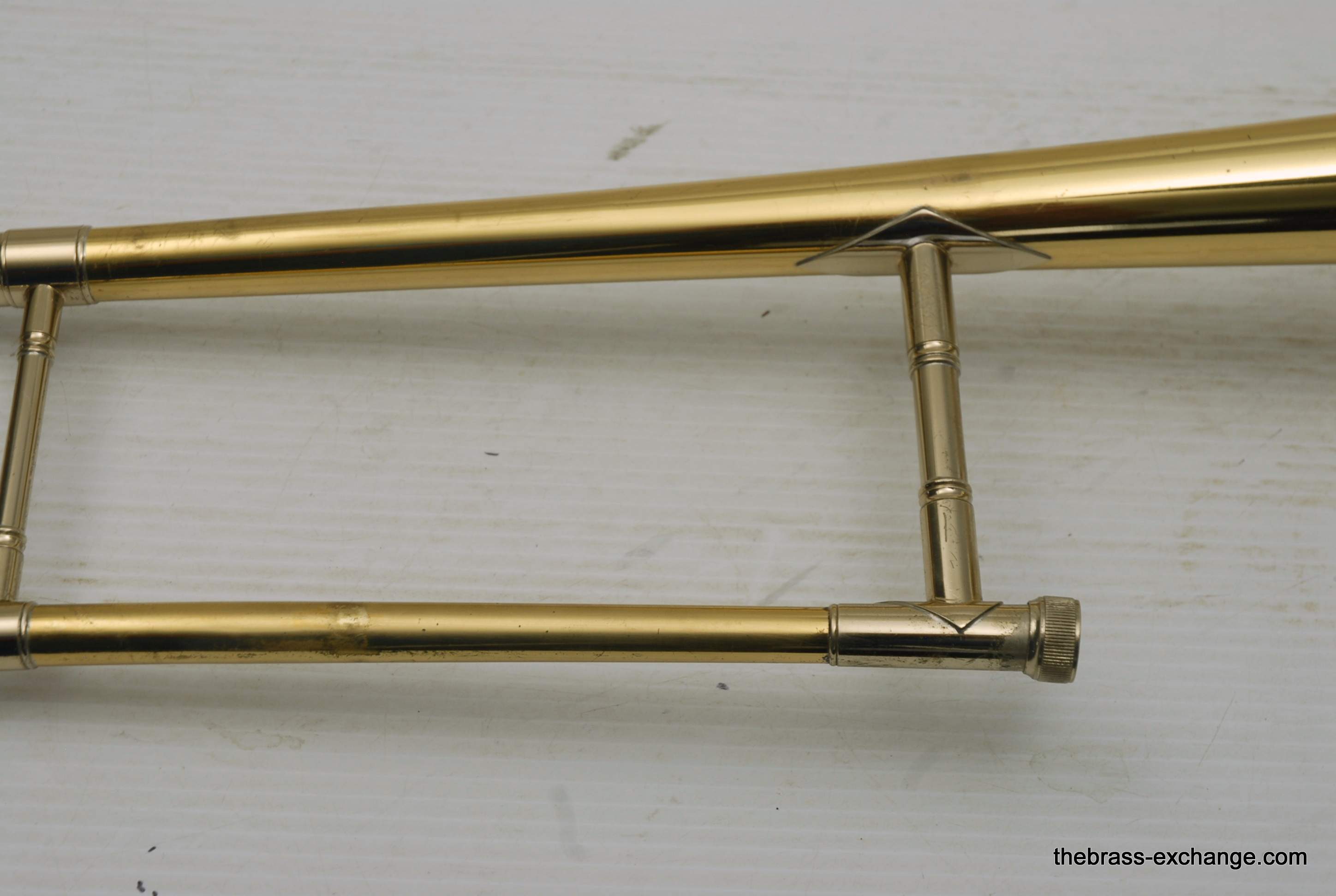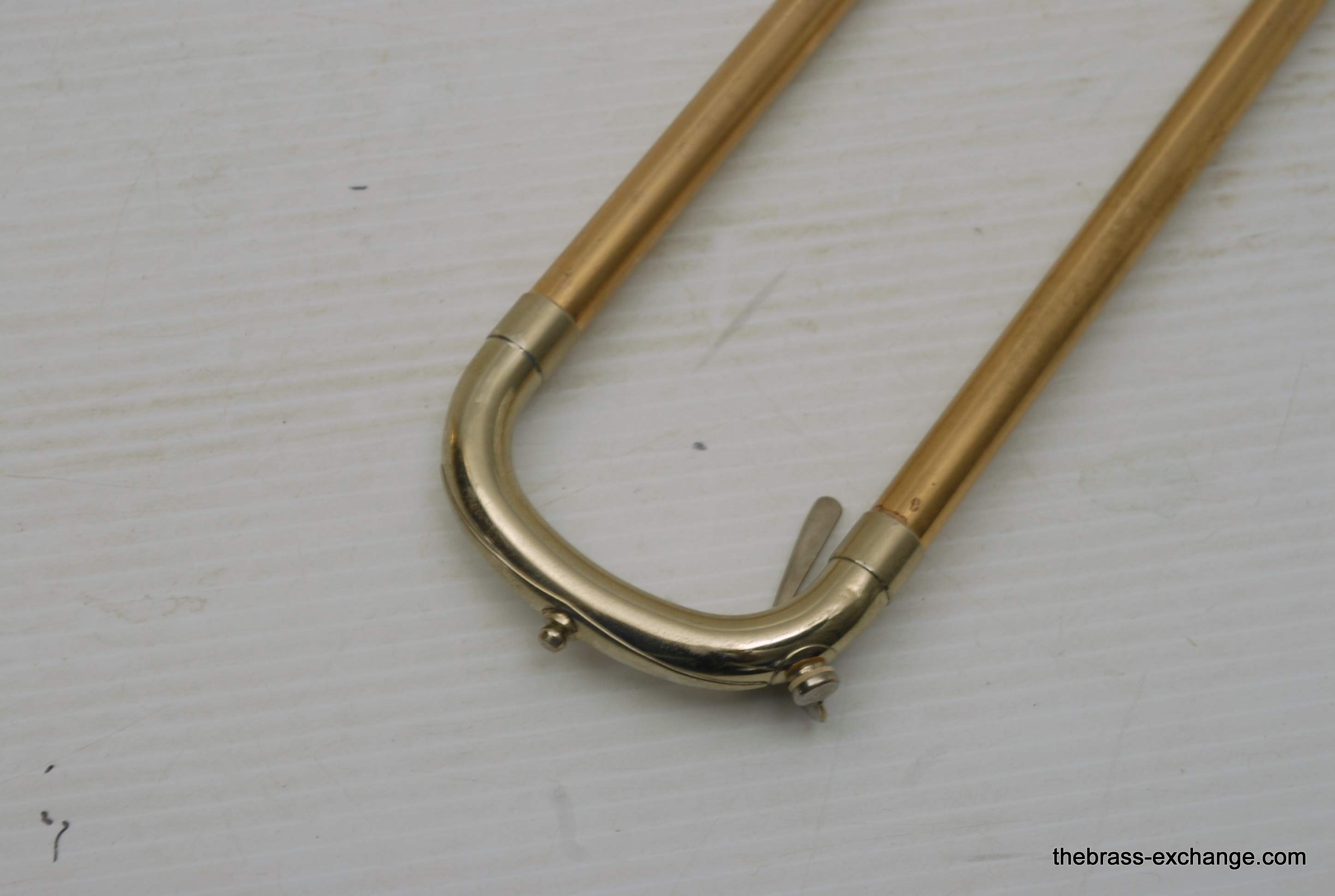 Conn 24H Vintage Professional Jazz Trombone.  Made in Elkhart, IN around 1965.  This is one of the last small-bore models under .500 bore produced by Conn prior to closing the Elkhart factory.  Has 7" yellow brass bell, and .485 bore lightweight gold brass hand slide with nickel end crook.  The back of the slide is stamped LW.  This is the first one that we have seen here since the beginning, and it is quite rare.  Plays with a lot of punch and color.  Can sizzle easily.  Has a screaming high range.  Would be a great sound for a variety of commercial settings, jazz/rock/funk or lead in a big band.  This one is in very condition, has had full shop service, including chemical bath.  No issues with hand slide, no plating loss.  All original parts and lacquer.  Original case in good condition.  In-stock for immediate delivery.