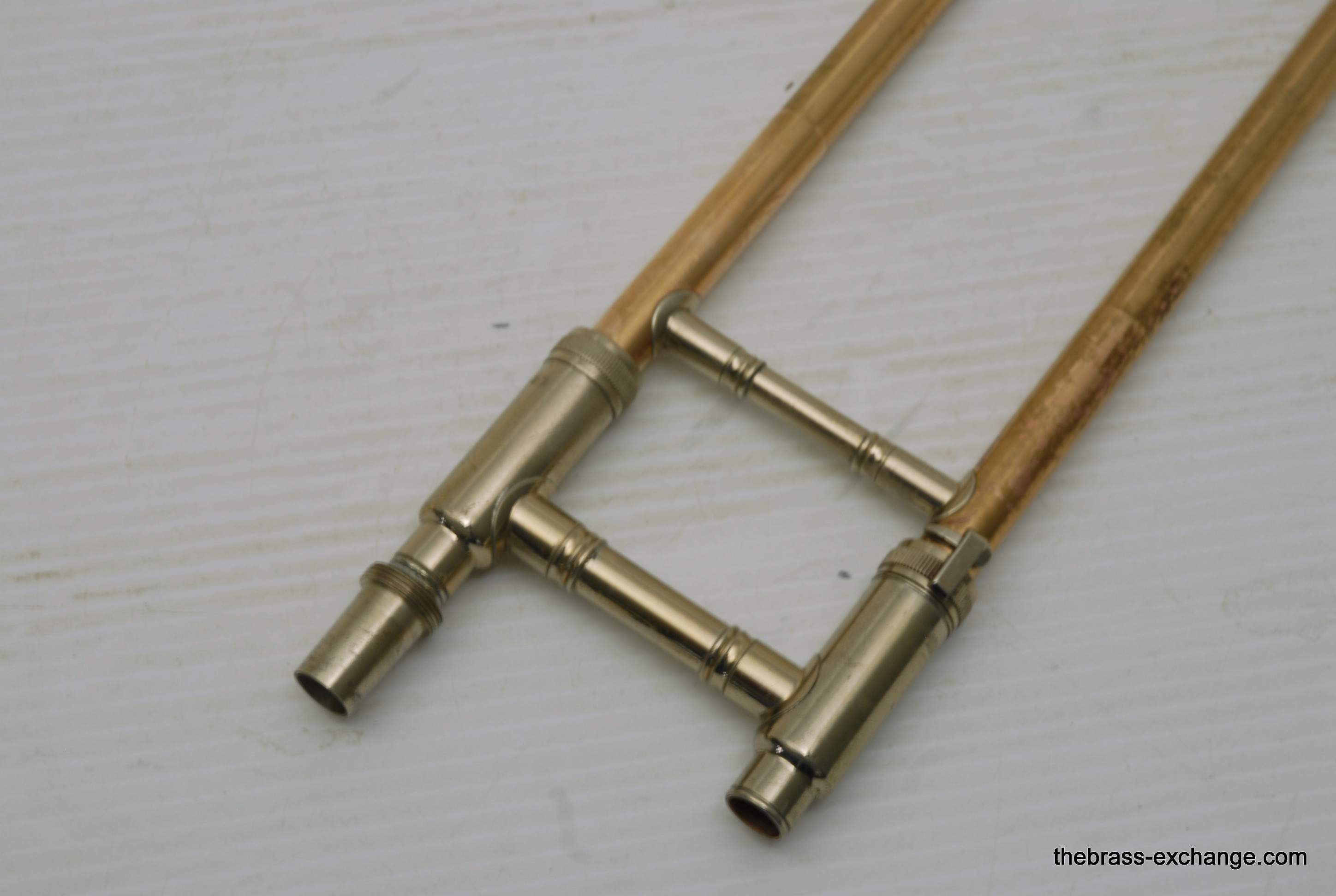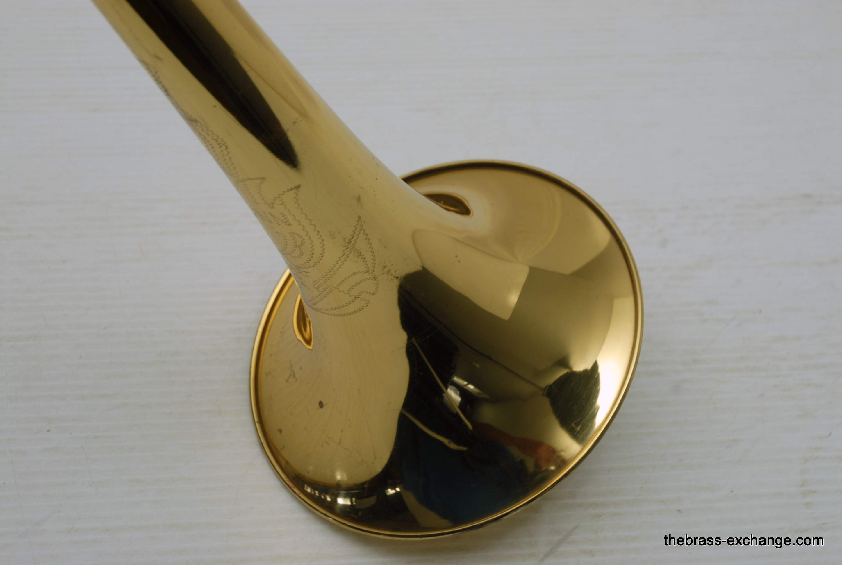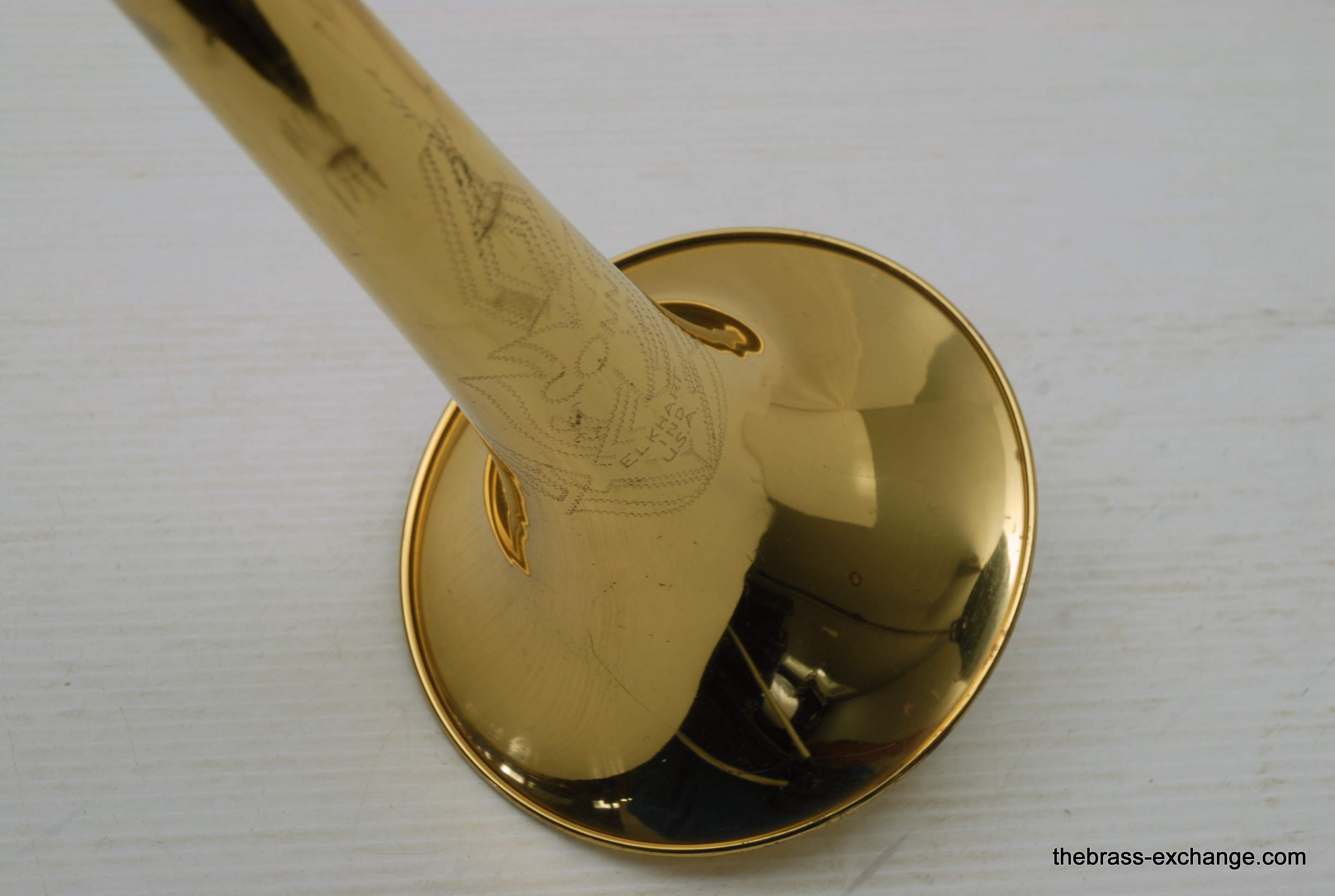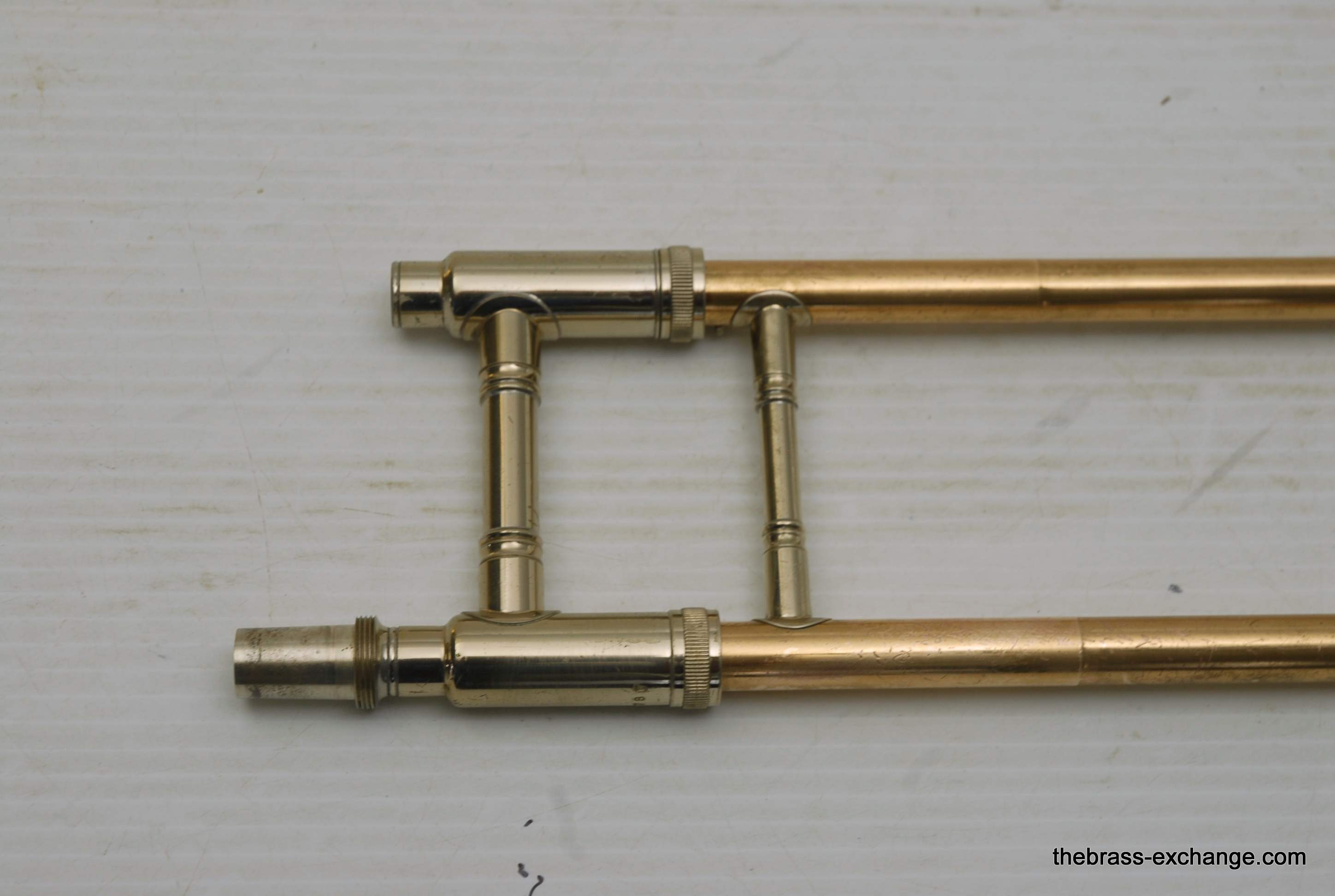 Conn 24H Vintage Professional Jazz Trombone.  Made in Elkhart, IN around 1965.  This is one of the last small-bore models under .500 bore produced by Conn prior to closing the Elkhart factory.  Has 7" yellow brass bell, and .485 bore lightweight gold brass hand slide with nickel end crook.  The back of the slide is stamped LW.  This is the first one that we have seen here since the beginning, and it is quite rare.  Plays with a lot of punch and color.  Can sizzle easily.  Has a screaming high range.  Would be a great sound for a variety of commercial settings, jazz/rock/funk or lead in a big band.  This one is in very condition, has had full shop service, including chemical bath.  No issues with hand slide, no plating loss.  All original parts and lacquer.  Original case in good condition.  In-stock for immediate delivery.