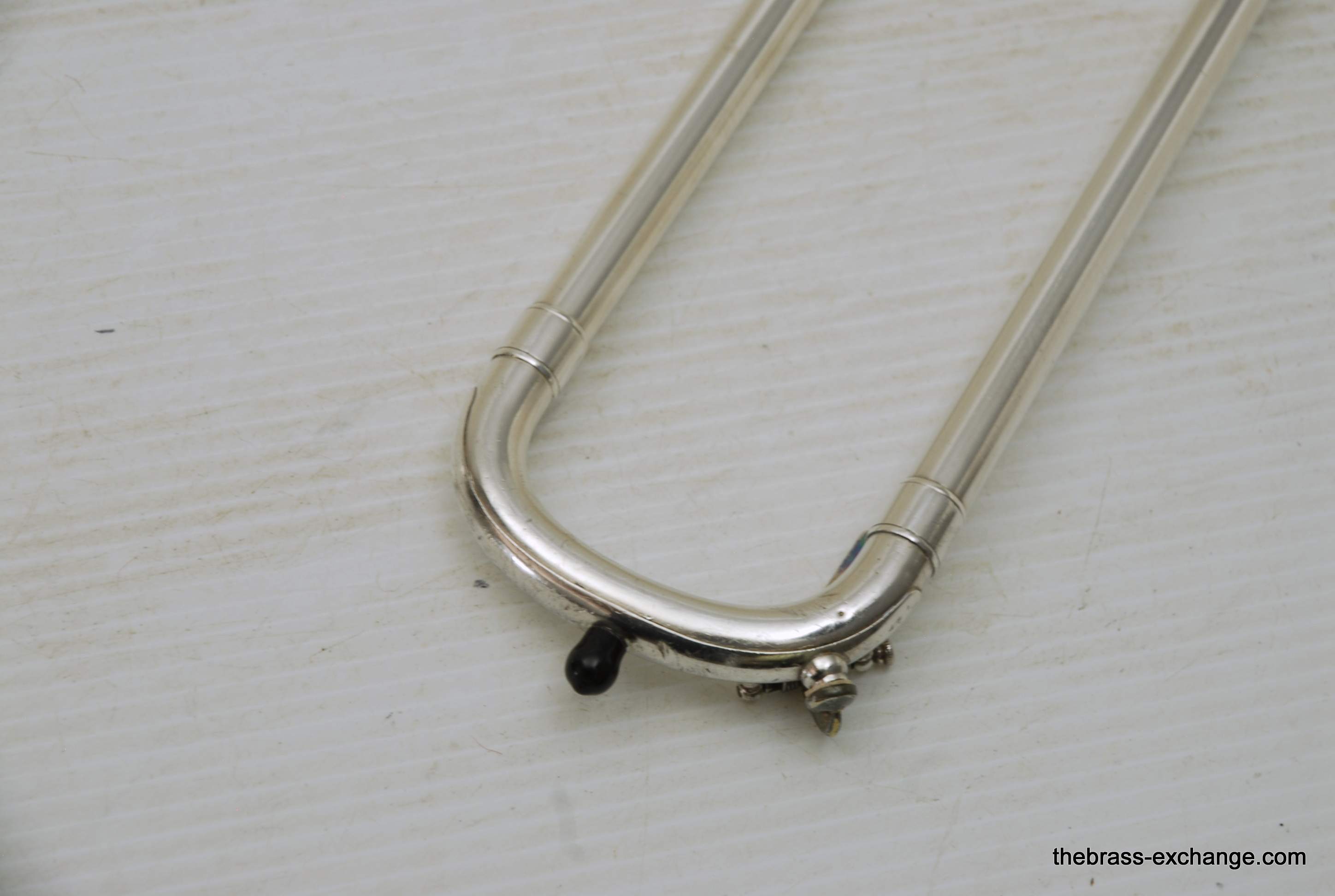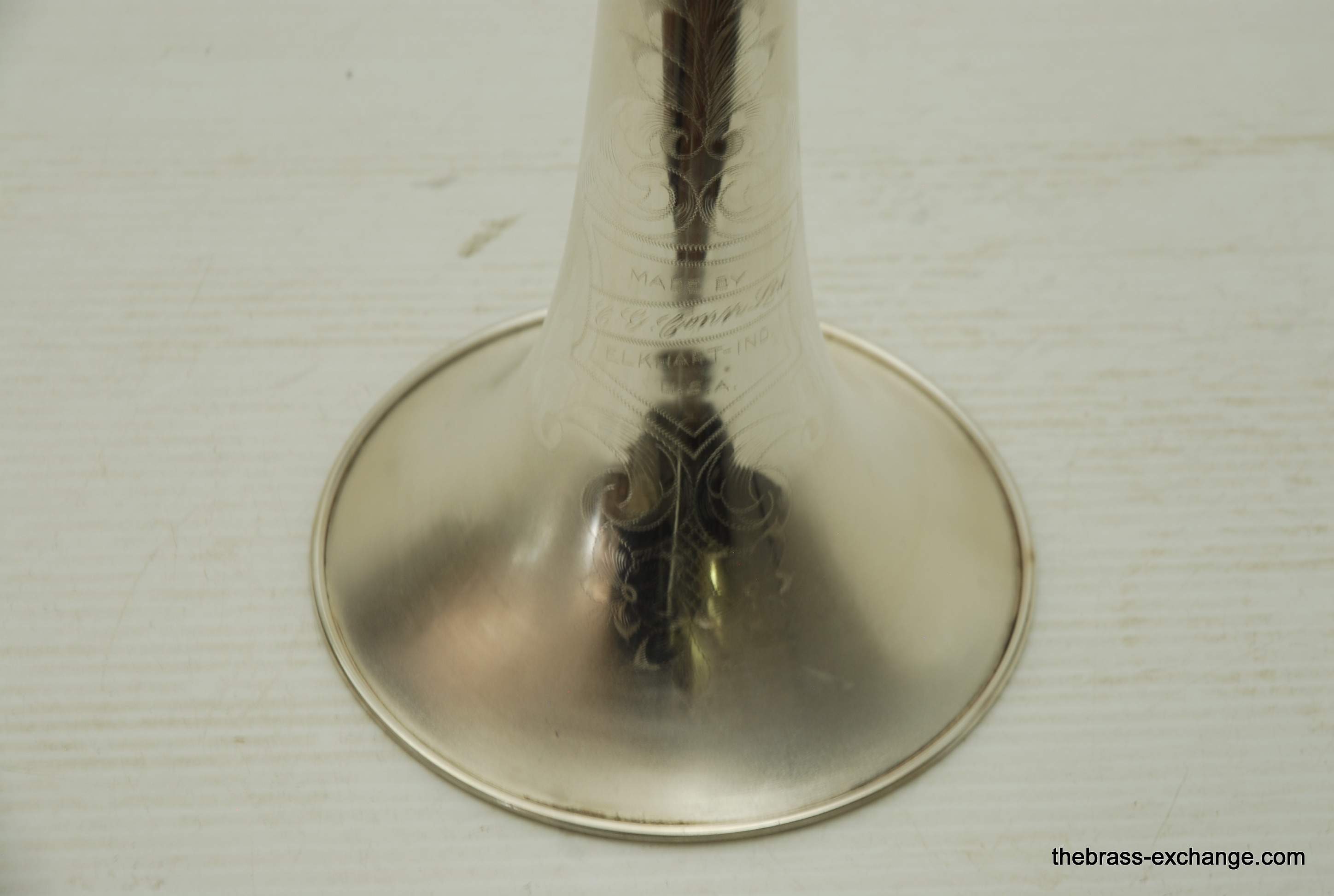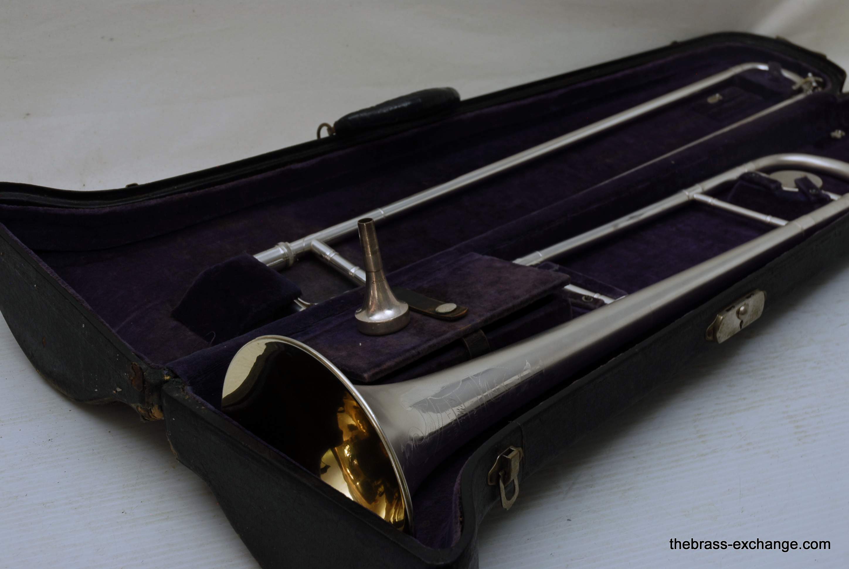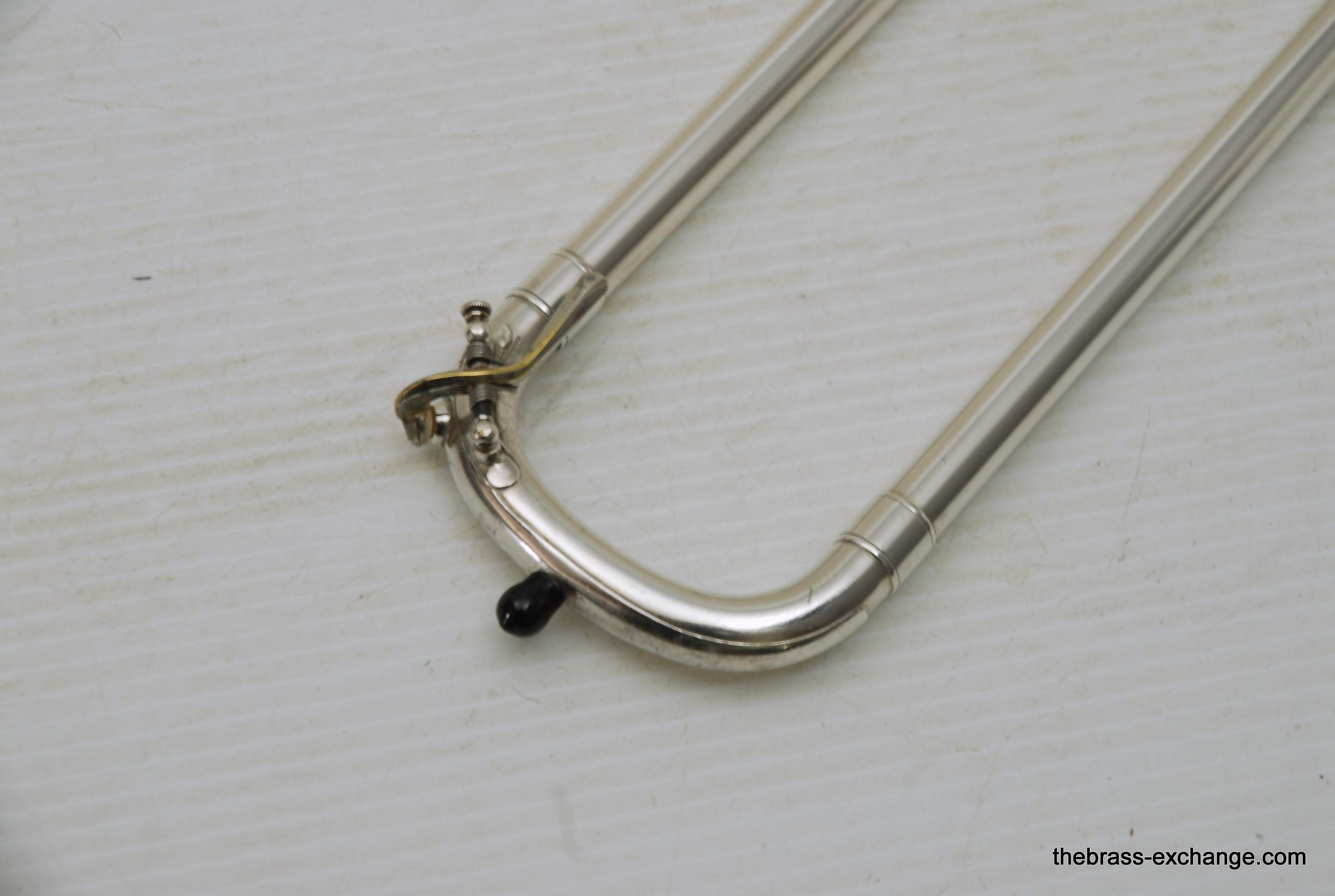 Conn 24H Vintage 1928 Small Bore Jazz Trombone. Originally Named the Ballroom Model. The model was introduced in 1928. This is the earliest one that we know of in existence. Serial Number is 261097, other markings include "T" and P27 on the back of the outer handslide. This is in fact all original material and finish. Has 7" Brass Bell with glass bead satin silver, with bright silver around the engraving, gold wash inner bell. Handslide is also silver plated, standard weight and .485 bore, same as the 4H Model. The most notable difference between the models is that the 24H has the bell back slightly, originally to facilitate easier mute changes, in the ballroom setting. This horn has never been damaged or repaired. We did full shop service including chemical bath and once over. The slide action is fantastic. No defects or wear on the inner tubes. Even though this horn is over 90 years old today, it just proves that Conn had every intention of producing the best quality instruments that were made to last a lifetime. This one came from a collector that rarely played it. I have played it however, and like it a lot. Today it could be an amazing lead horn, jazz solo, contemporary jazz or trad jazz. Many instrument makers today are trying to replicate old-school hand-crafted instruments like this. This is the real thing. Once you play it you know why they are so amazing. Has original case and mouthpiece. The gold mouthpiece in the photos is not included. In-stock for immediate delivery.