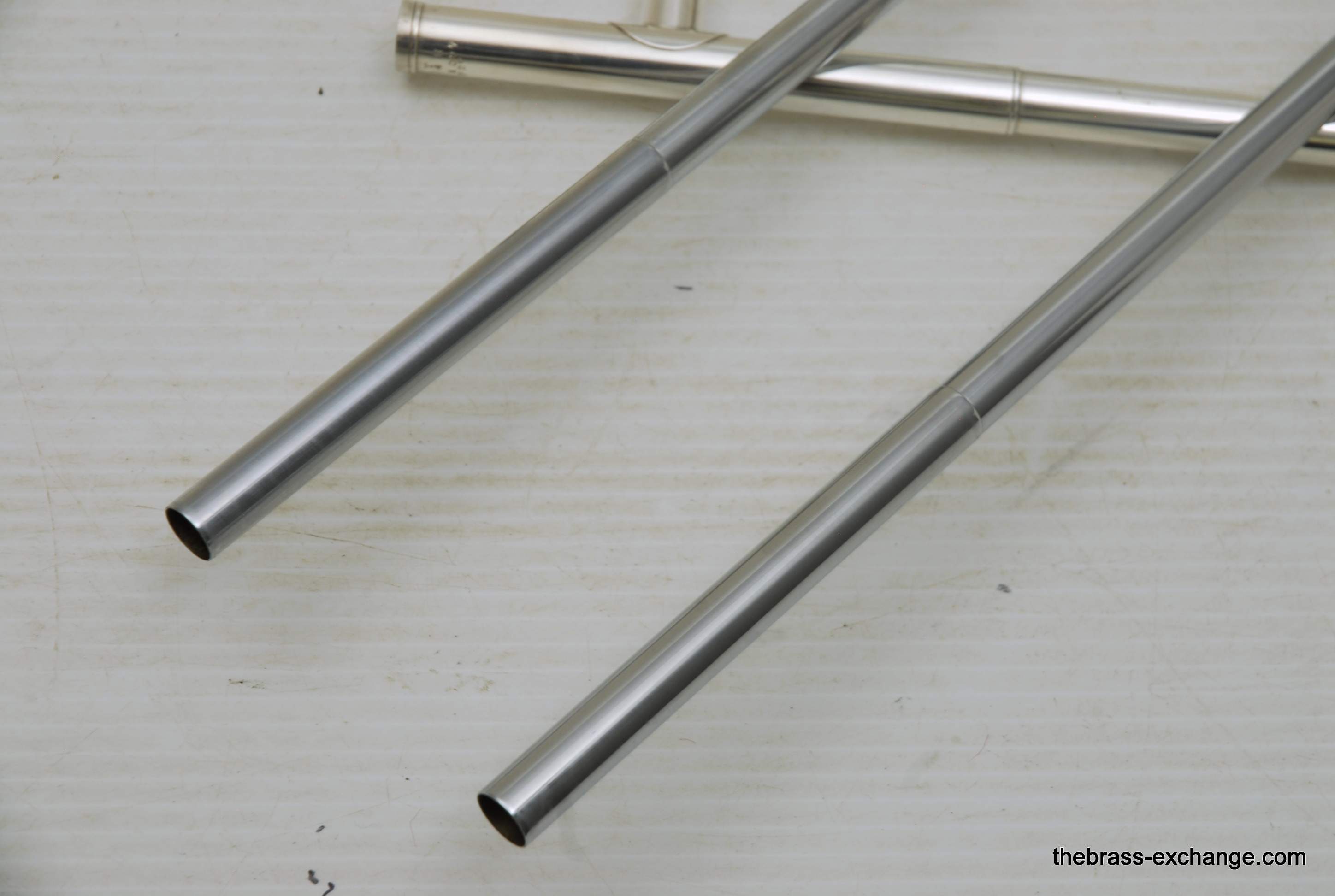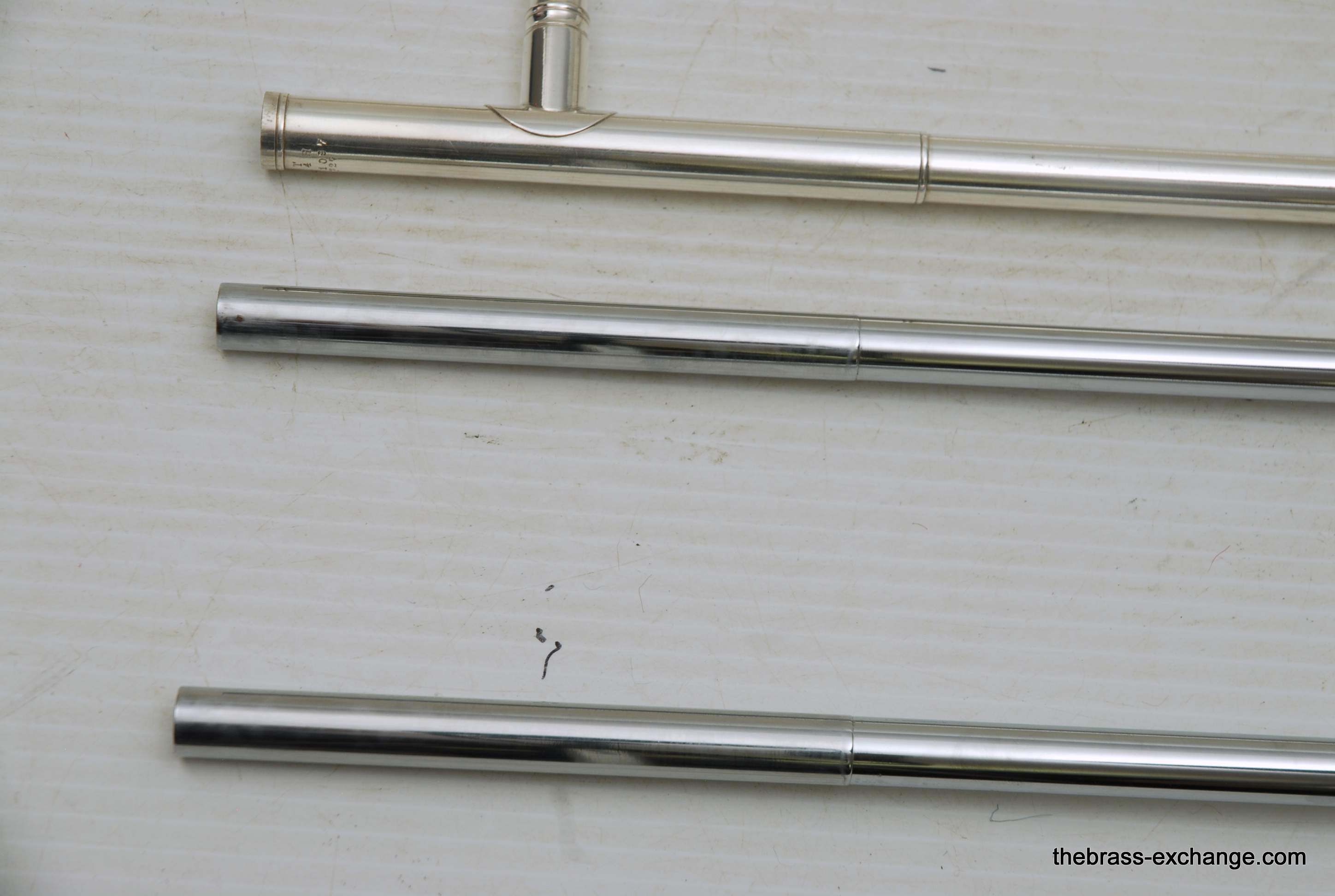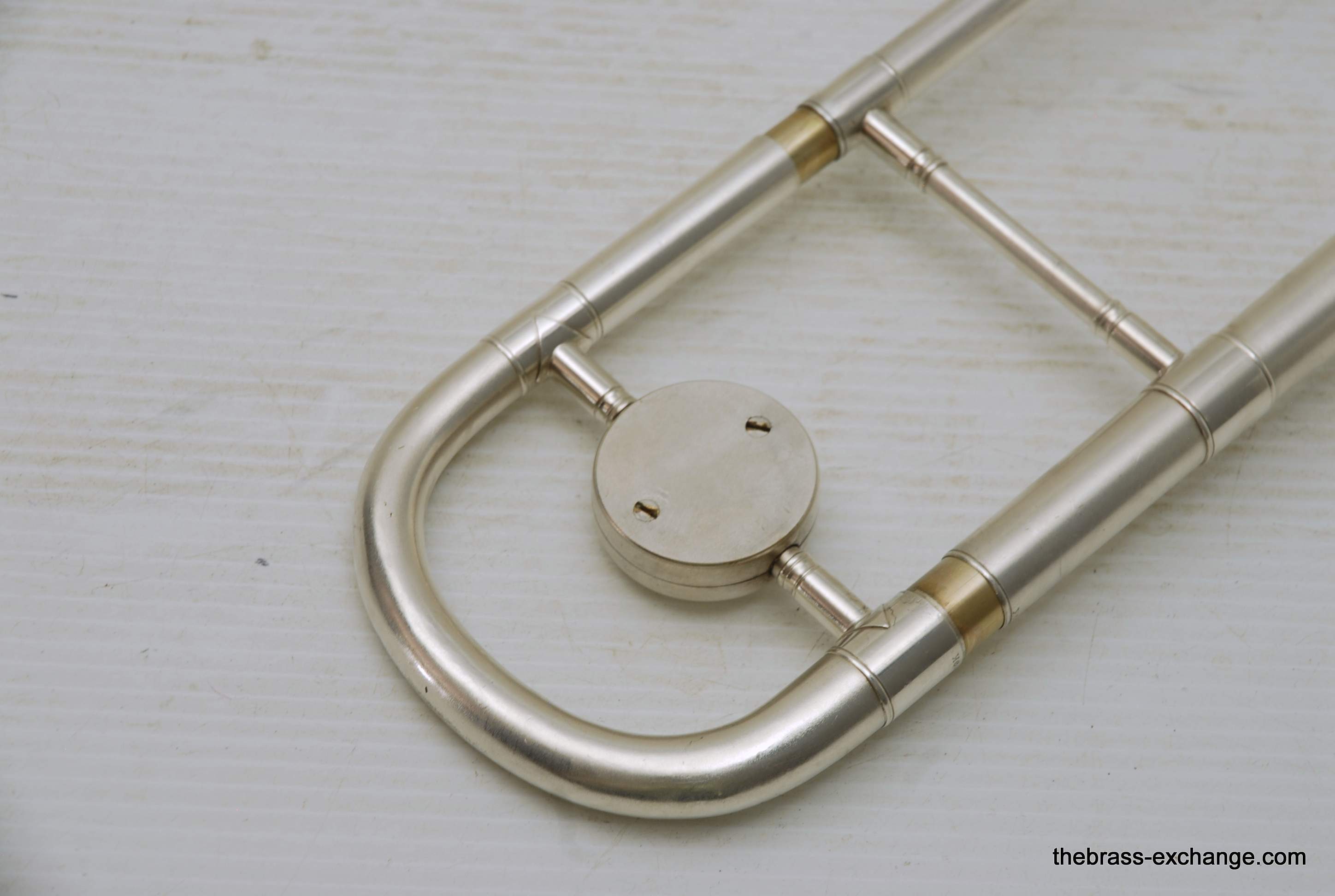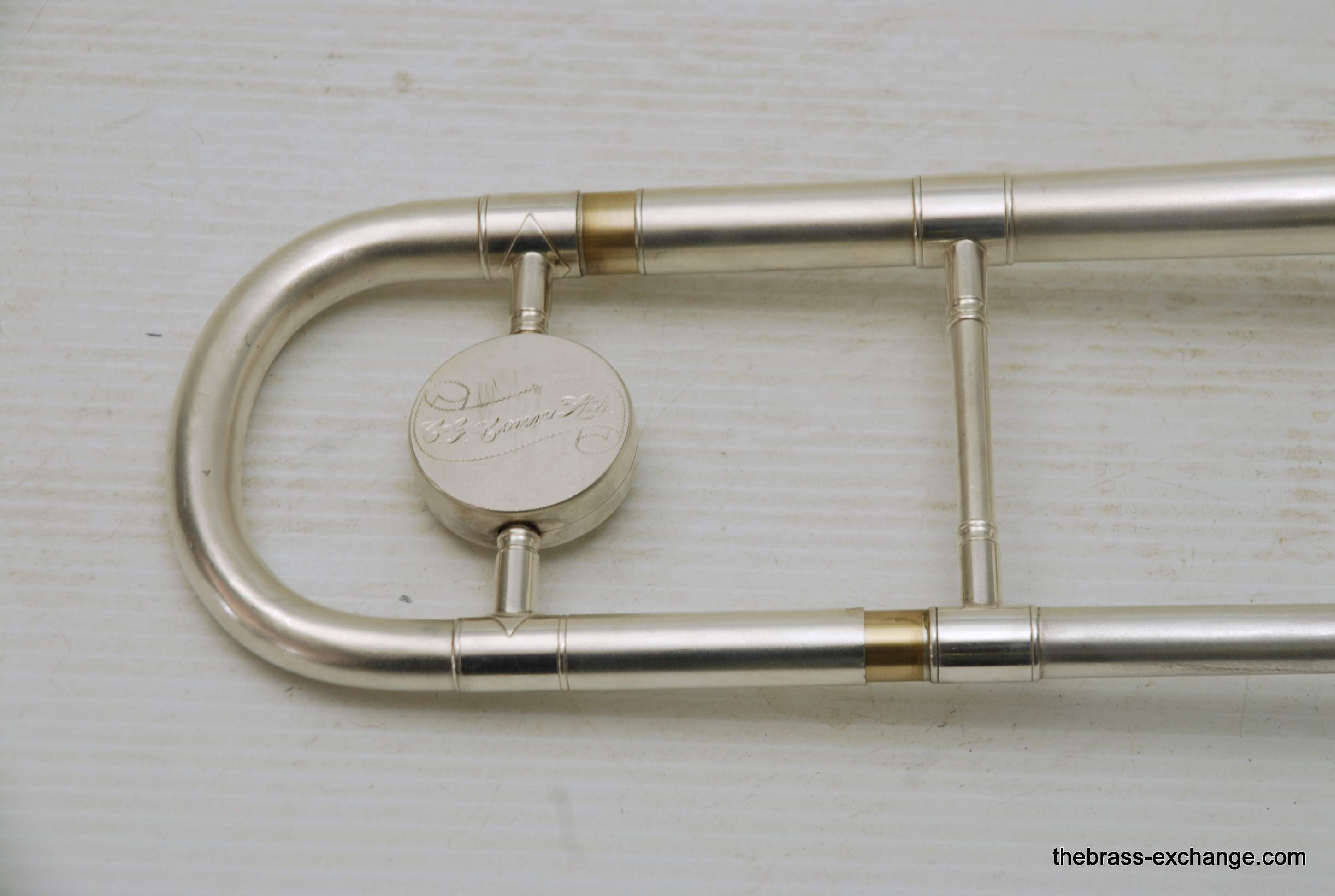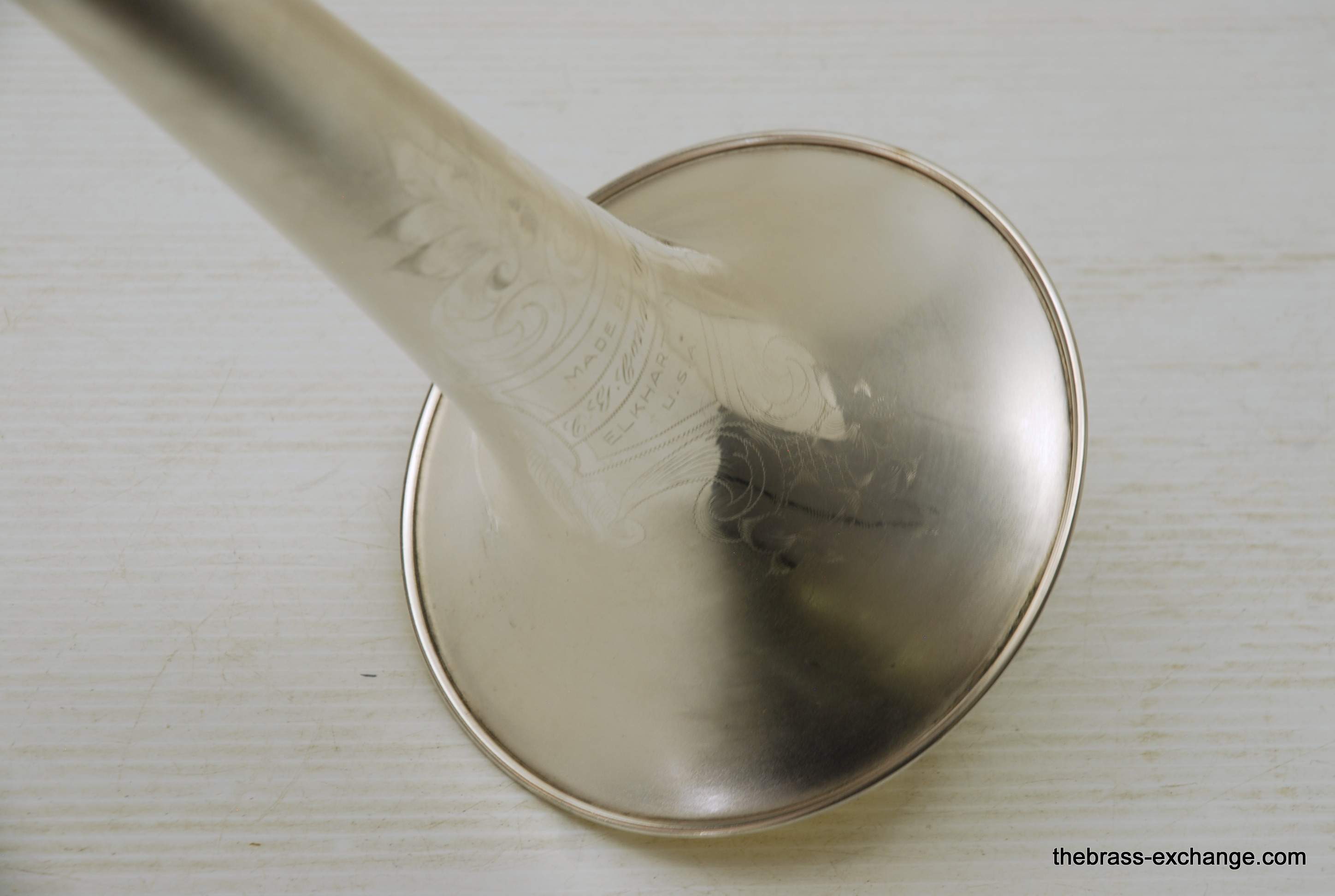 Conn 24H Vintage 1928 Small Bore Jazz Trombone. Originally Named the Ballroom Model. The model was introduced in 1928. This is the earliest one that we know of in existence. Serial Number is 261097, other markings include "T" and P27 on the back of the outer handslide. This is in fact all original material and finish. Has 7" Brass Bell with glass bead satin silver, with bright silver around the engraving, gold wash inner bell. Handslide is also silver plated, standard weight and .485 bore, same as the 4H Model. The most notable difference between the models is that the 24H has the bell back slightly, originally to facilitate easier mute changes, in the ballroom setting. This horn has never been damaged or repaired. We did full shop service including chemical bath and once over. The slide action is fantastic. No defects or wear on the inner tubes. Even though this horn is over 90 years old today, it just proves that Conn had every intention of producing the best quality instruments that were made to last a lifetime. This one came from a collector that rarely played it. I have played it however, and like it a lot. Today it could be an amazing lead horn, jazz solo, contemporary jazz or trad jazz. Many instrument makers today are trying to replicate old-school hand-crafted instruments like this. This is the real thing. Once you play it you know why they are so amazing. Has original case and mouthpiece. The gold mouthpiece in the photos is not included. In-stock for immediate delivery.