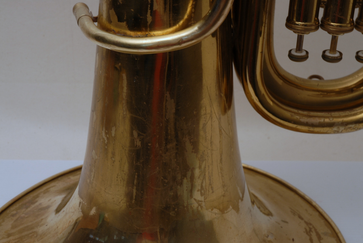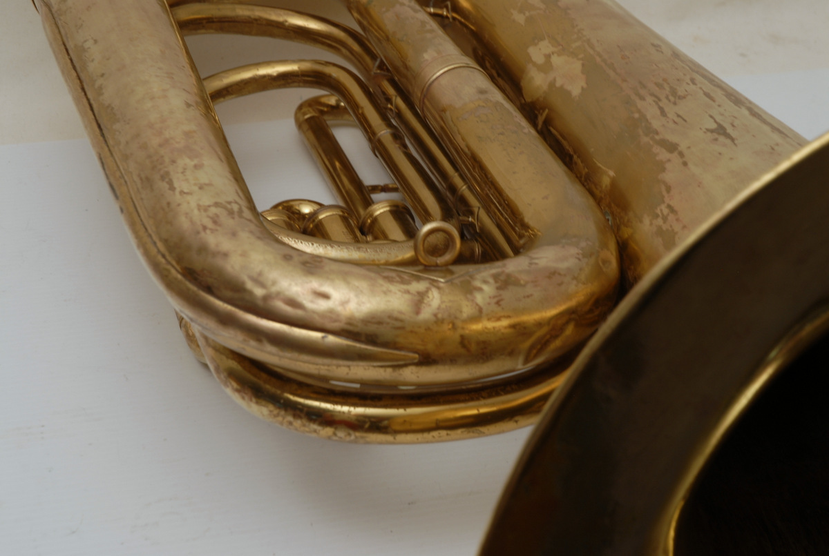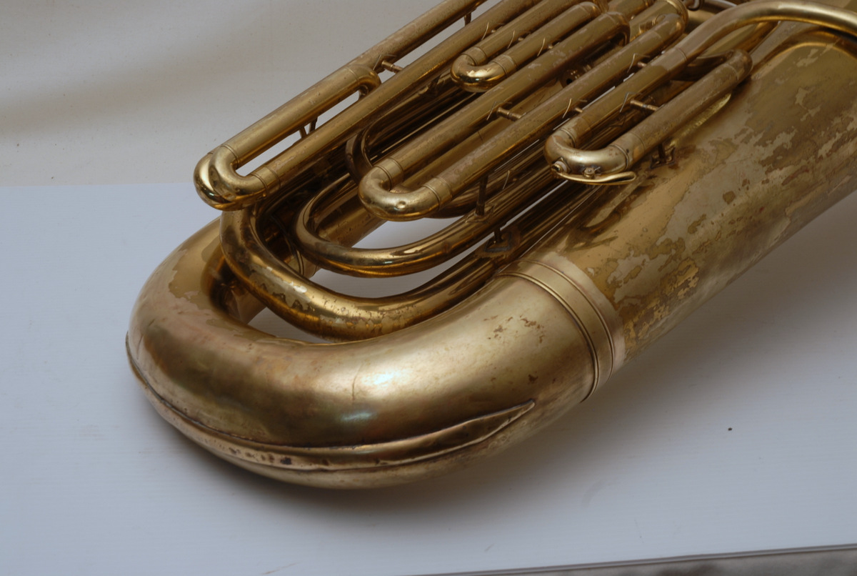 Conn Tuba, BbBb with 18" Bell Flare. Is a 1960's Model. Has had chemical bath, flush, some dent work, new pads. Valves are very good. Horn is very playable and does not need further service or restoration to improve playability. No case or mouthpiece included. Please call or email for exact shipping quote. Local pick-up also available. Would make a great horn for a doubler, lesson horn, or first tuba for a smaller person. Please call or email for shipping quote.