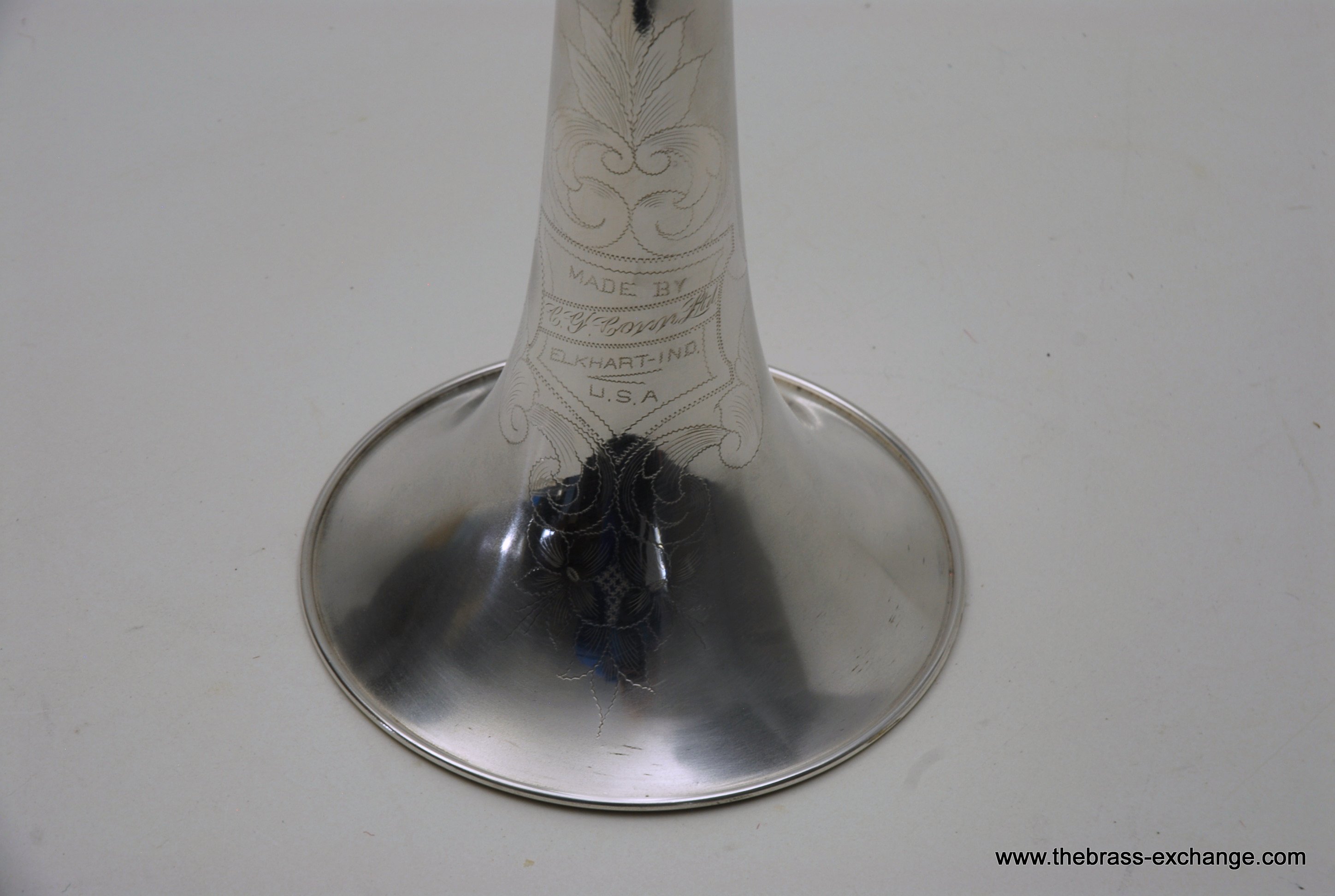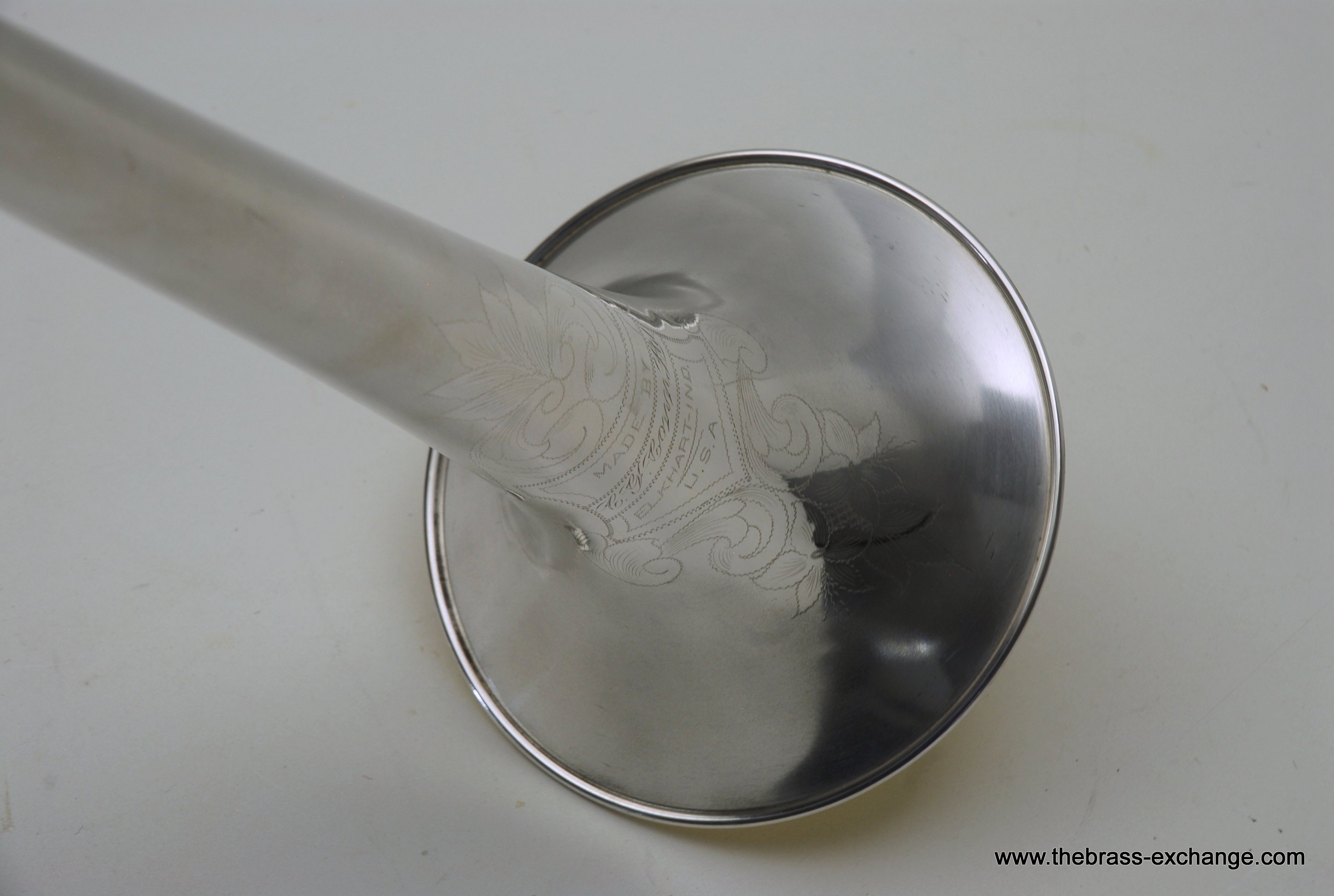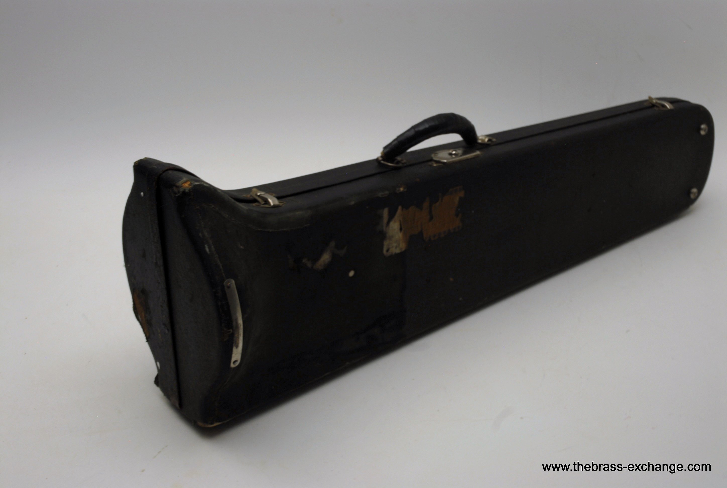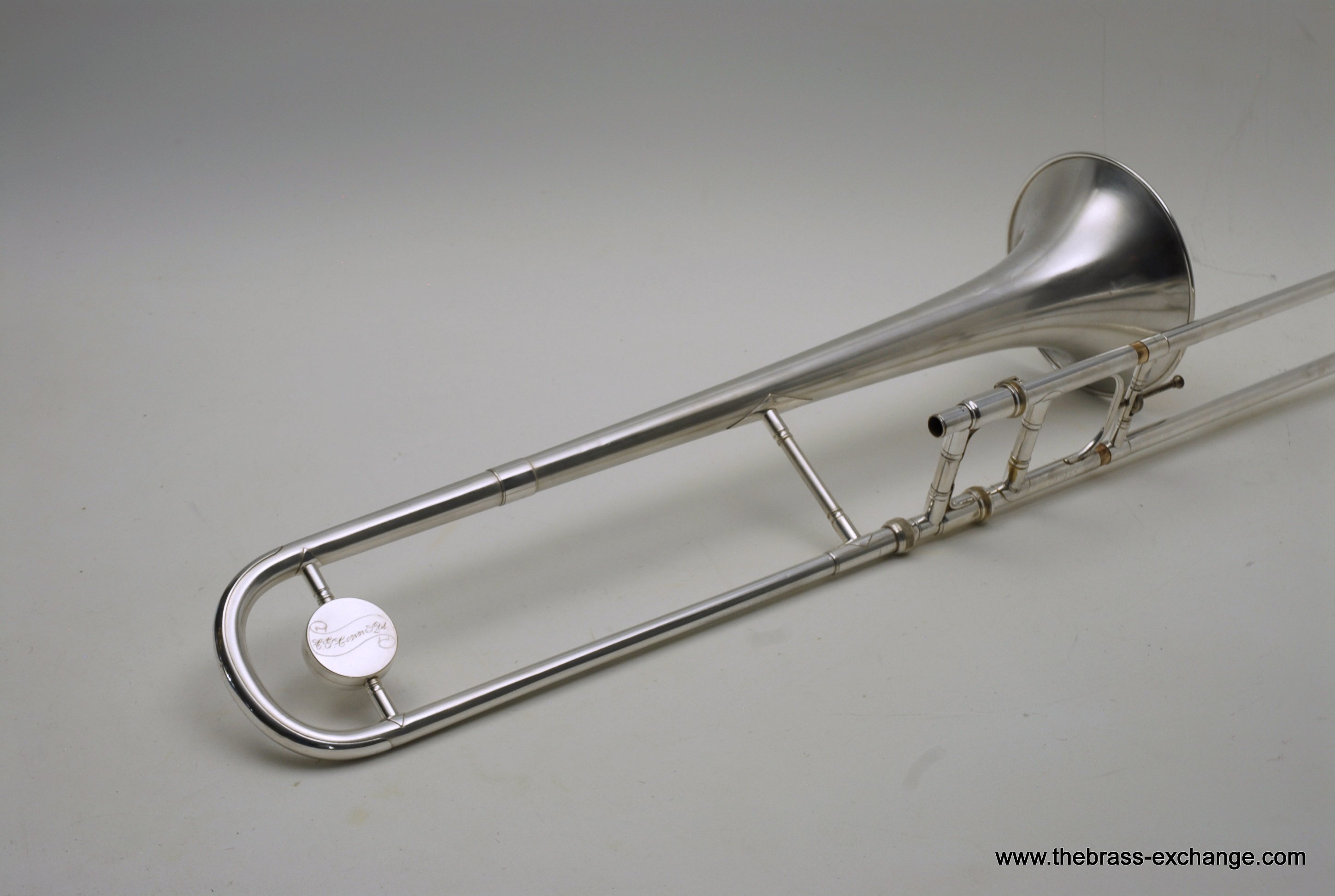 The finish is original glass bead silver plating with a beautiful gold wash inner bell. It has received a full service in our shop, including a complete chemical cleaning and inspection. The overall condition is super mint, nearly showroom quality despite its age. The handslide is perfectly straight, free of defects, and operates with exceptional response. There is only one small area of plating wear on the thumb grip of the cross brace – a minor cosmetic note that does not affect performance.