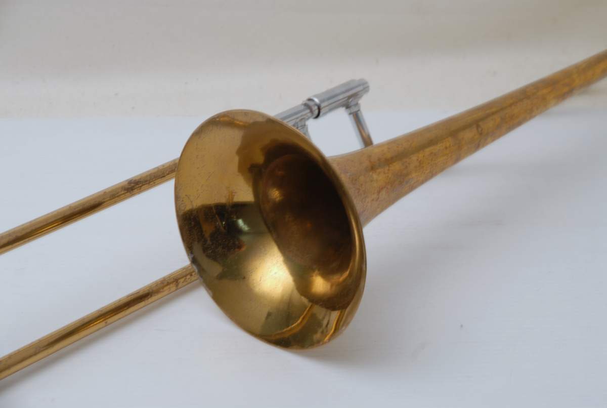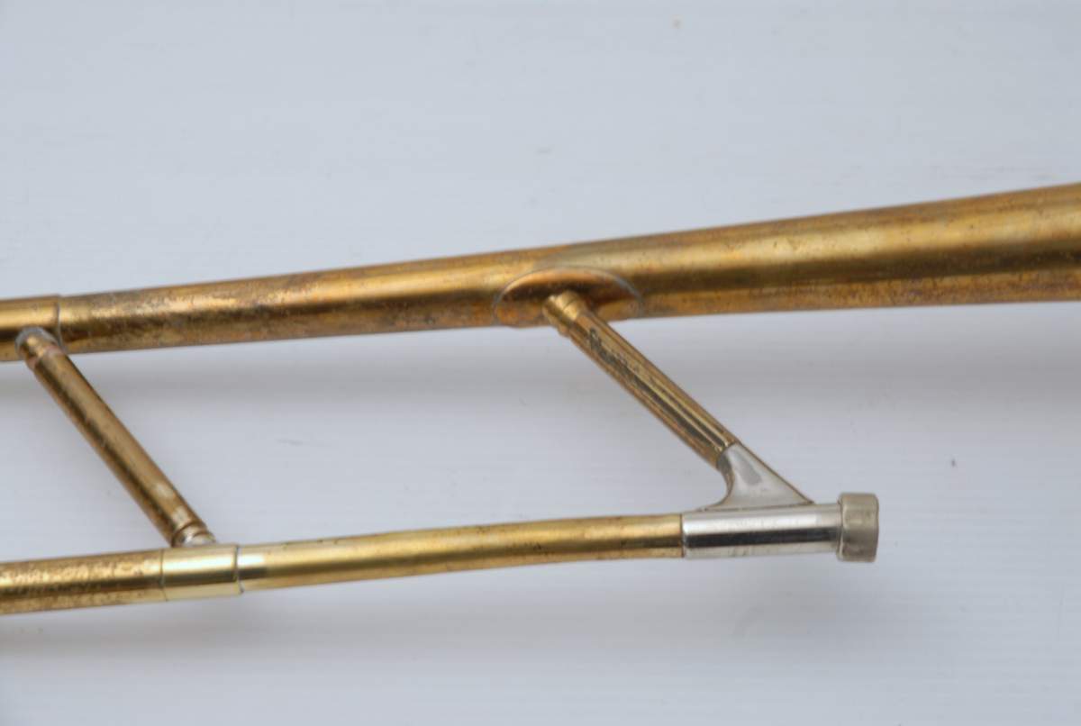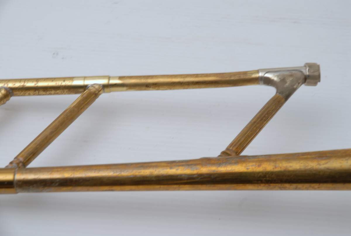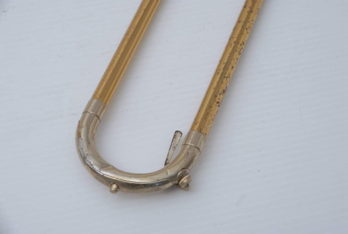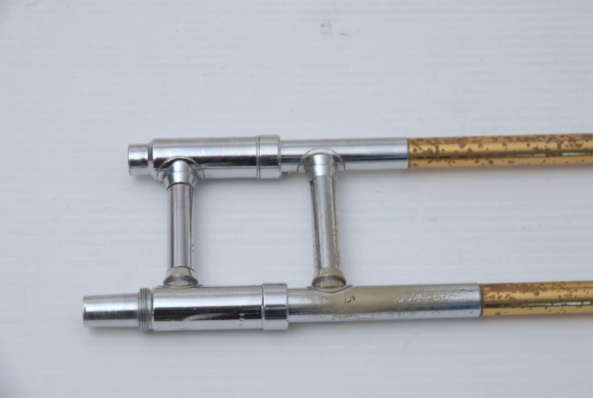 The slide condition is not perfect, showing some wear consistent with its age, but it is still playable and functional for casual or light use. For those who enjoy vintage horns or are looking for a piece of American trombone history, this 44H is an intriguing option.