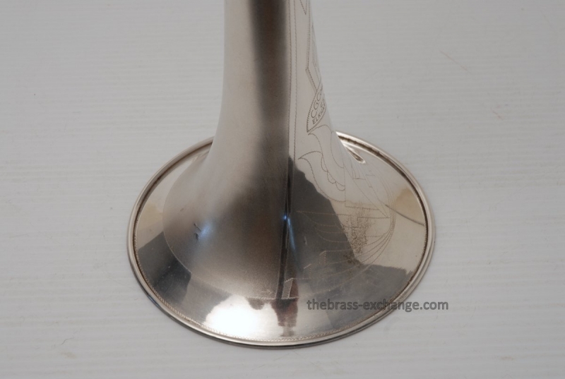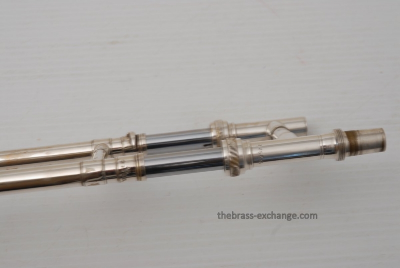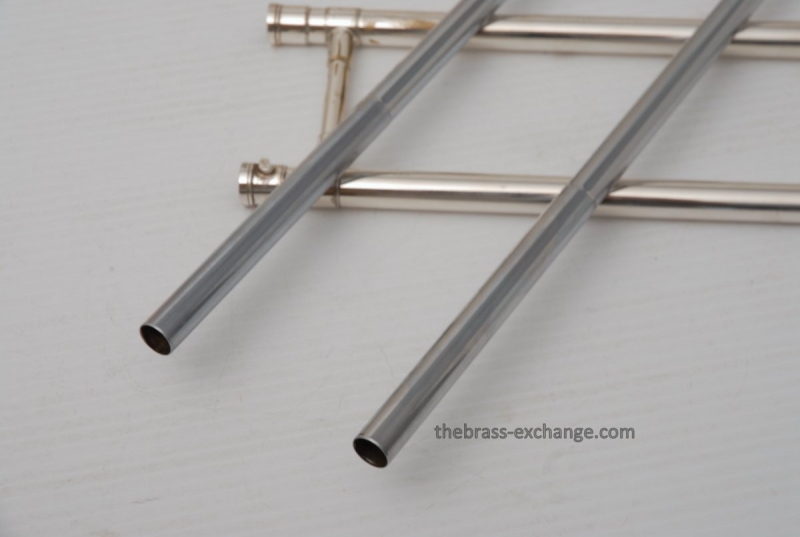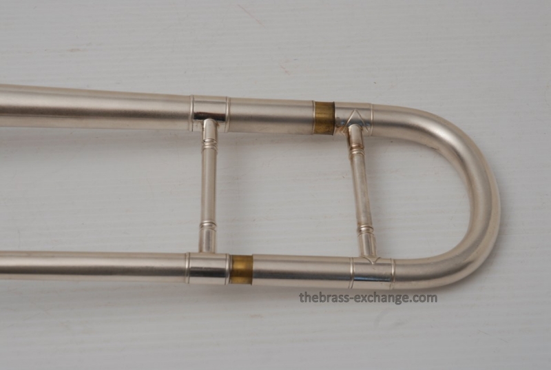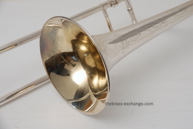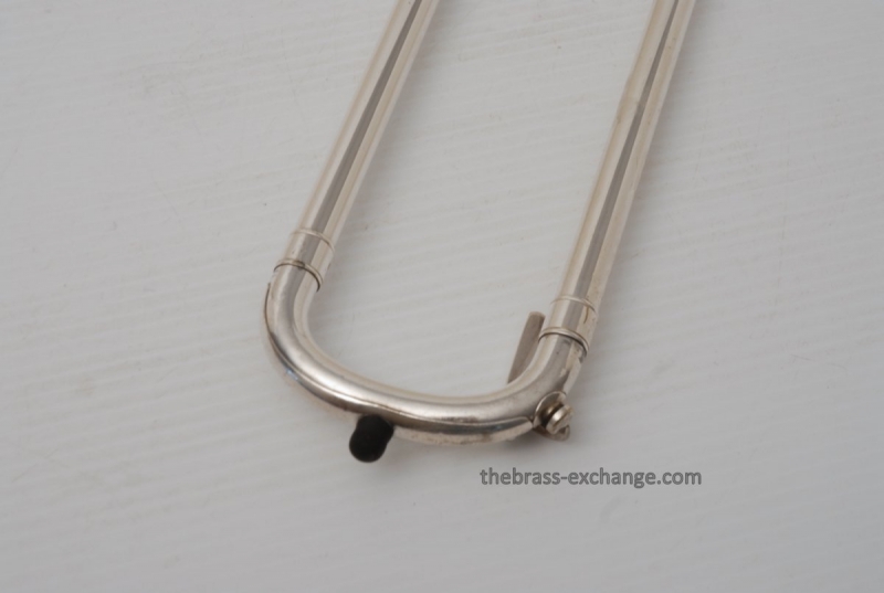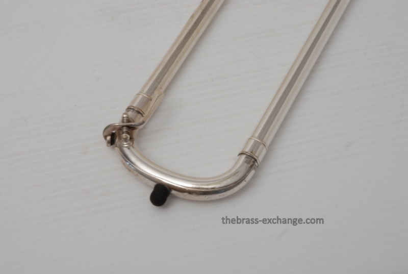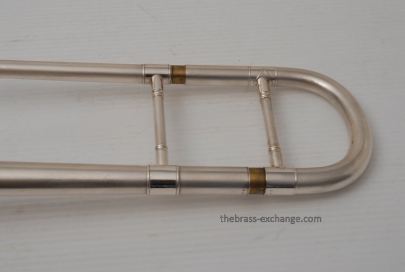 Conn 4H from around 1947.  Satin Silver-Gloss two tone finish with gold wash inner bell.  Stunning appearance.  Has .485 bore with 7" bell.  Handslide is flawless, perfect alignment, no chrome loss, is super light and is about as good as any slide can get whether new modern make, or pro slide set-up.  This is a true artist model vintage Conn.  Would make a great lead, big band horn, trad jazz, Teagarden, Kid Ory Style. Perfect alternative to the 2B.  Plays incredibly easy with lots of center and focus.  The upper range is simply a breeze on this classic vintage Conn.