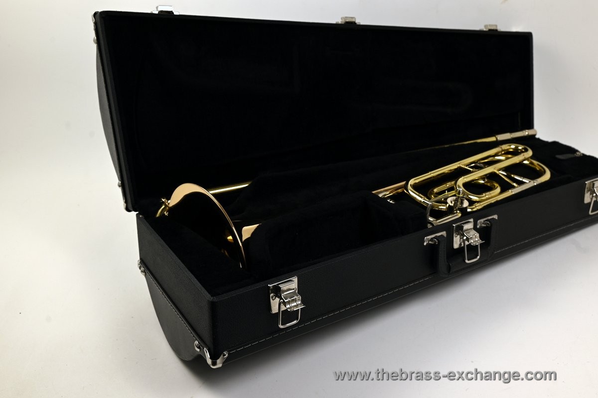 This particular instrument arrived at our shop in excellent structural condition. Our technicians completed a full chemical cleaning, rotor service, fresh bumpers, and a new water-key pad. The slide was precision-aligned and plays smoothly and quietly, confirming the horn’s readiness for serious student or community ensemble use.