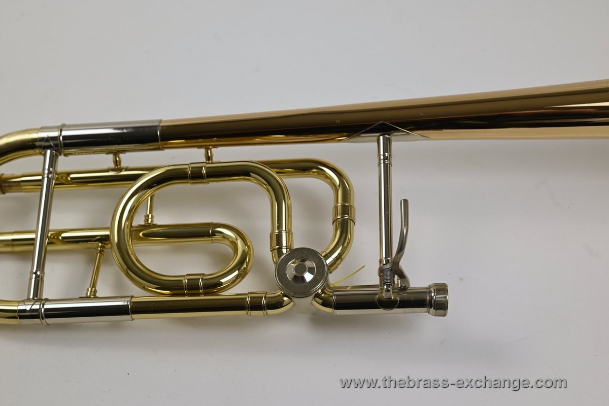 This Conn 52H tenor trombone with F-attachment represents one of Conn’s most versatile step-up designs for advancing players. Featuring a dual-bore (.525–.547) handslide and an 8.5" rose brass bell, the 52H blends the flexibility of a medium-large bore with the projection and depth of a full orchestral tenor.