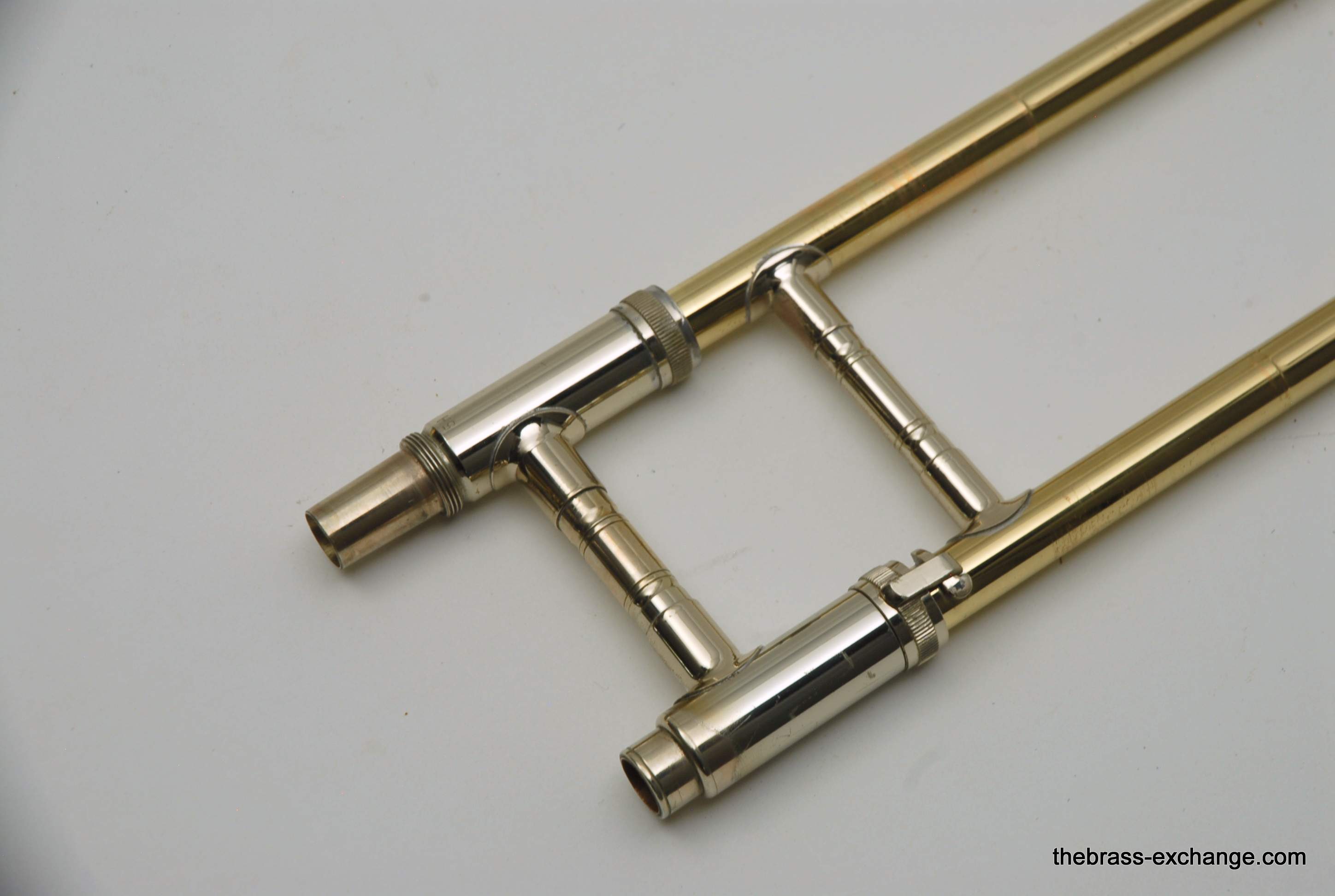 The 5H shares many similarities with the popular 6H model but has a lighter slide, making it easier to maneuver and more comfortable for extended playing sessions. All parts are original, including the lacquer, and the horn has received a full shop once-over. The handslide is in excellent conditionβno plating loss, super straight tubes, and precise alignment. It plays fast and clean.