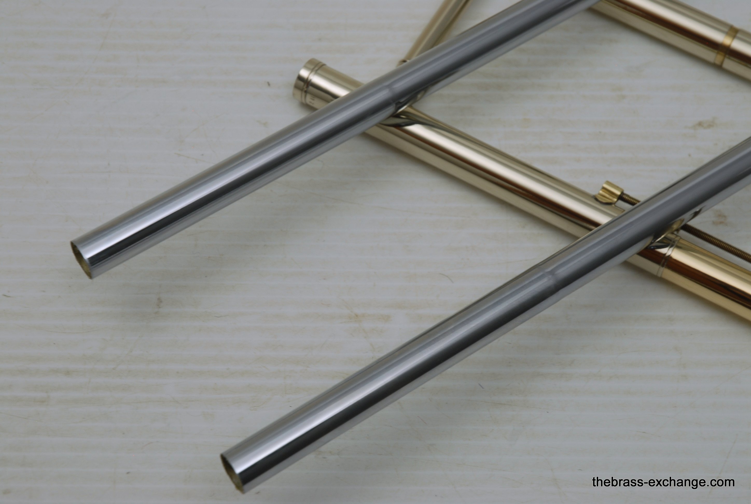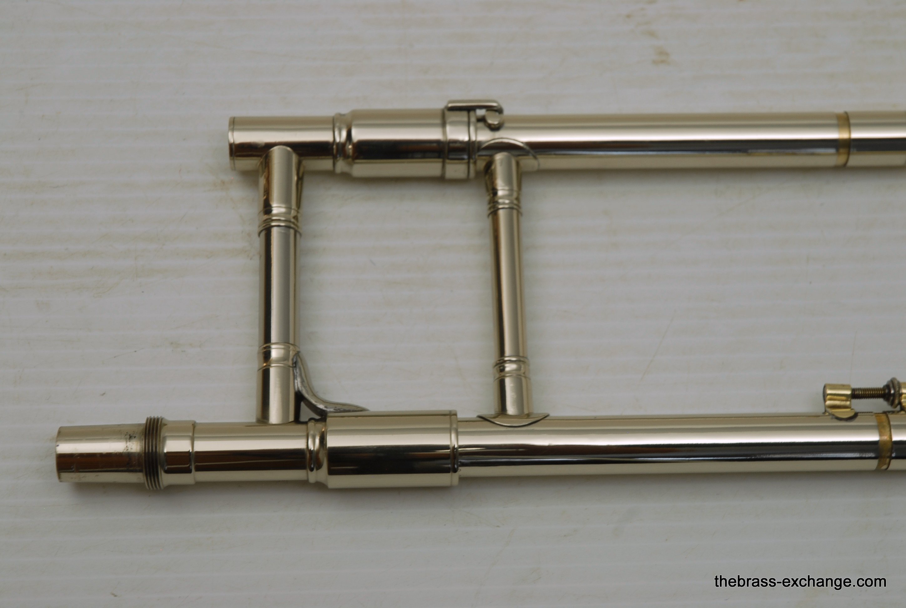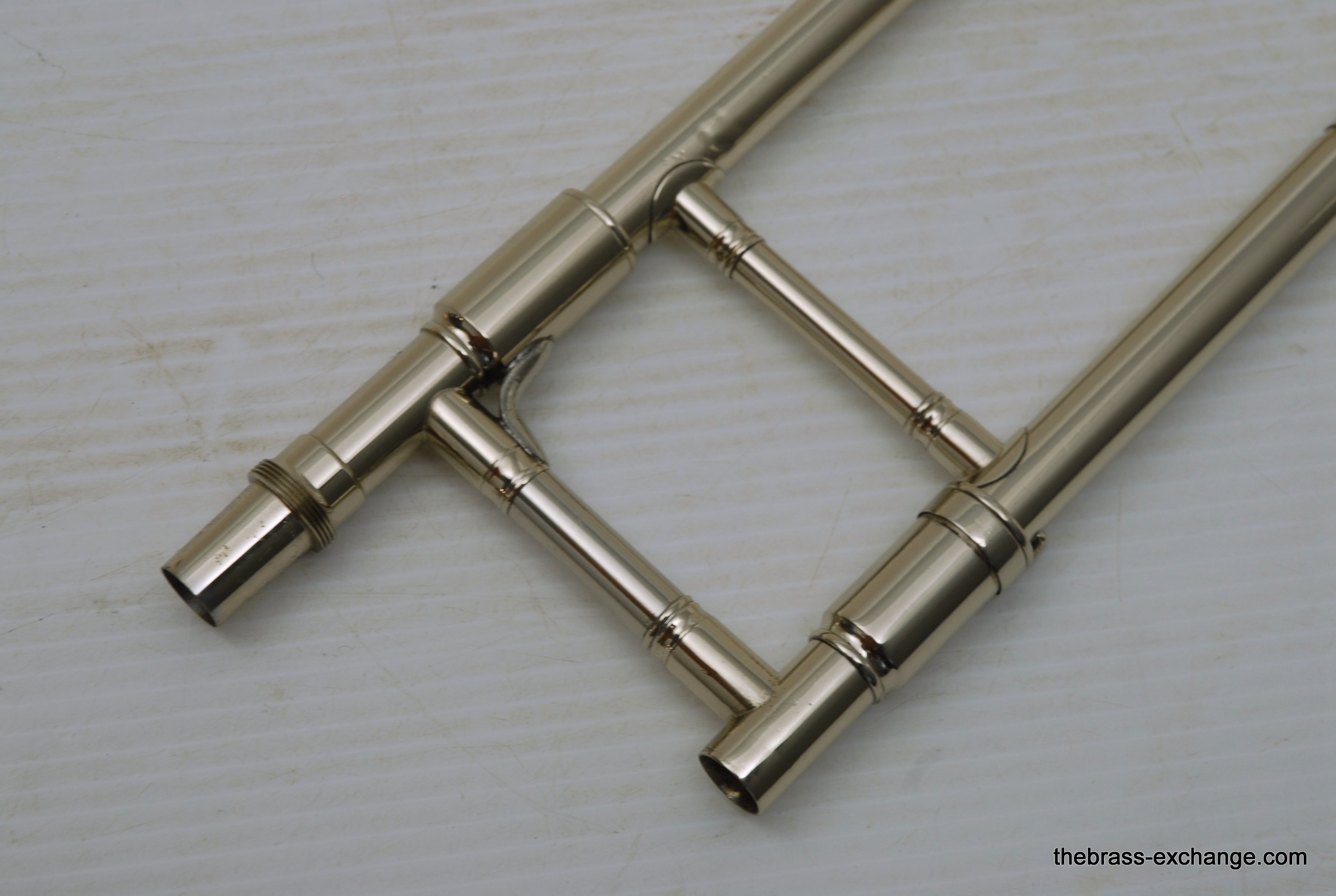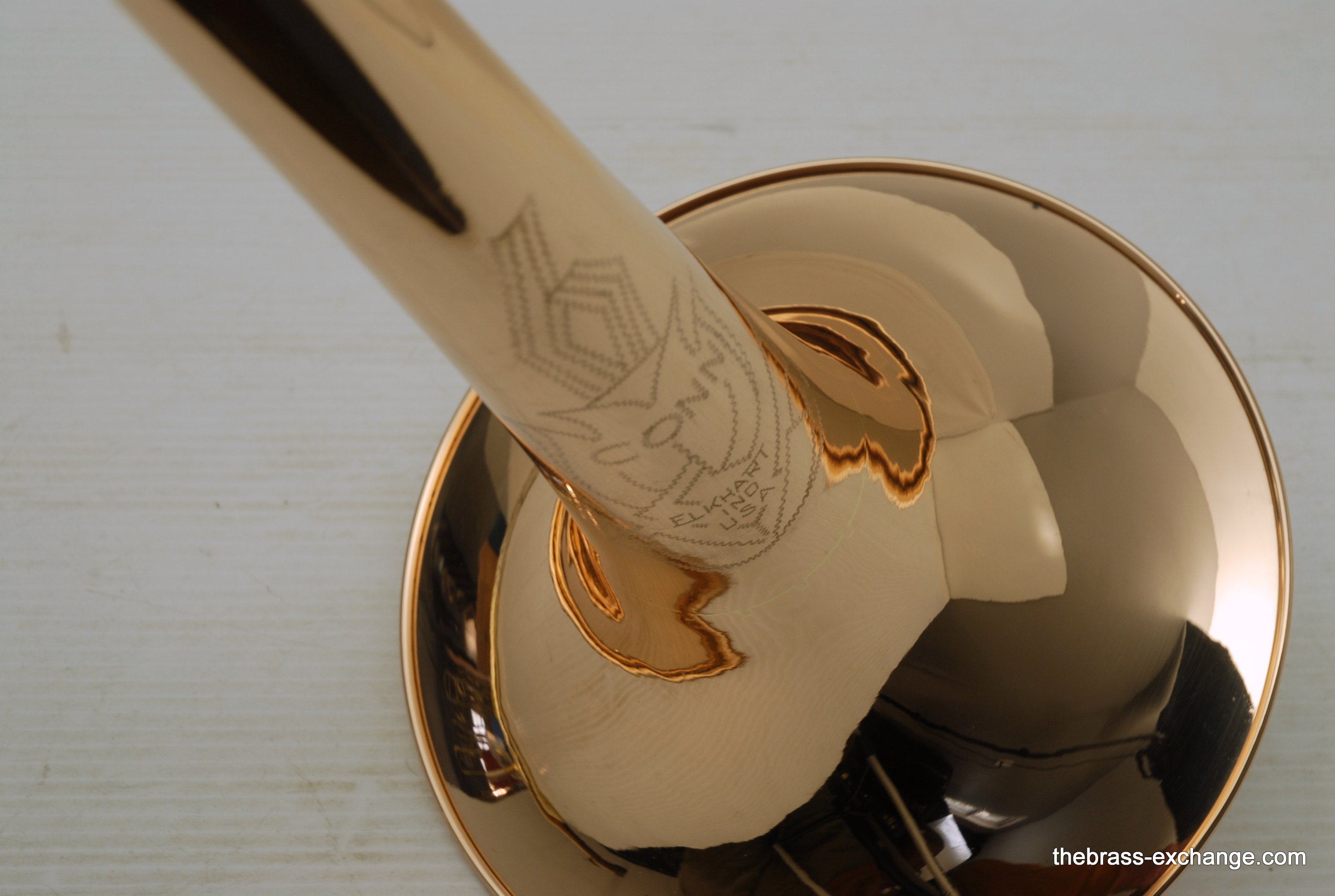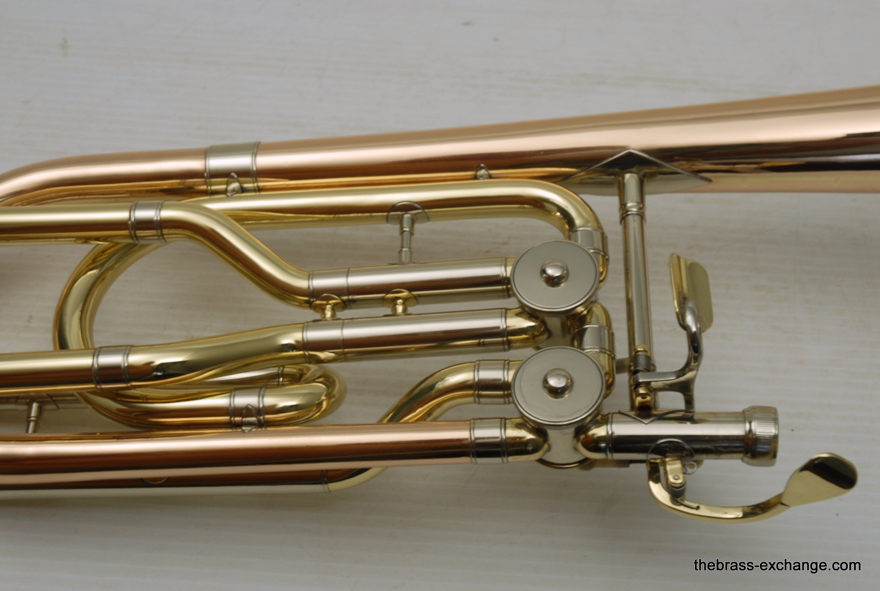 Conn 62H Bass Trombone with Larry Minick Valve Conversion. This is an original Elkhart 62H dependent bass, converted to modern two lever my Larry Minick. Has Bb/F/D tuning but also includes an E tuning slide for the second valve. Has had very recent reconditioning. New lacquer and complete overhaul. Never any damage to bell section. This Bass looks and plays amazing. Has classic 9.5" rose brass bell with T.I.S. Handslide. Original leadpipe for Remington Length Shank. This package comes with 4 Remington style mouthpieces including the original. Handslide is very good, but will have pro set-up prior to delivery. Any bass trombonist who has dreamed of playing one of these classic 62H's will fall in love instantly. Big Colorful Sound, with lot's of splash on the bottom. Is a pit orchestra dream sound. Comes with a new Brittish Tan Leather Cronkhite Case. Could be the find of a lifetime for the right player.