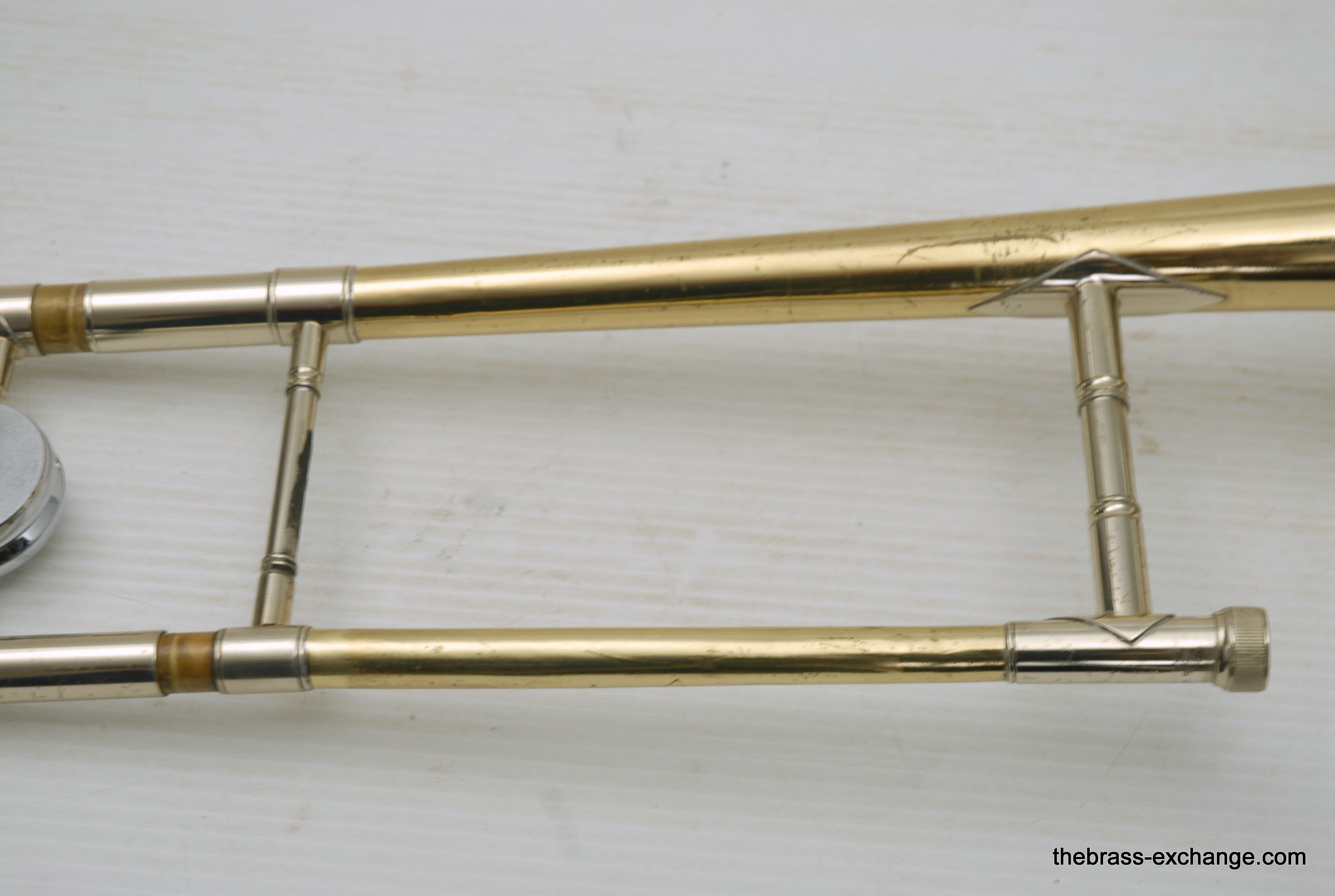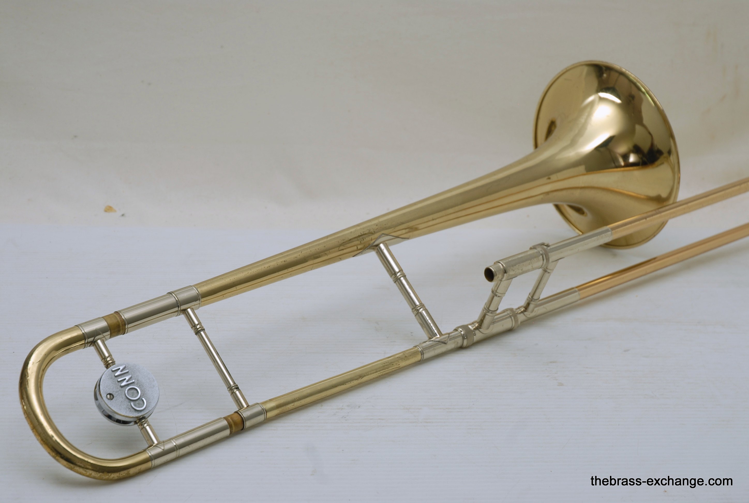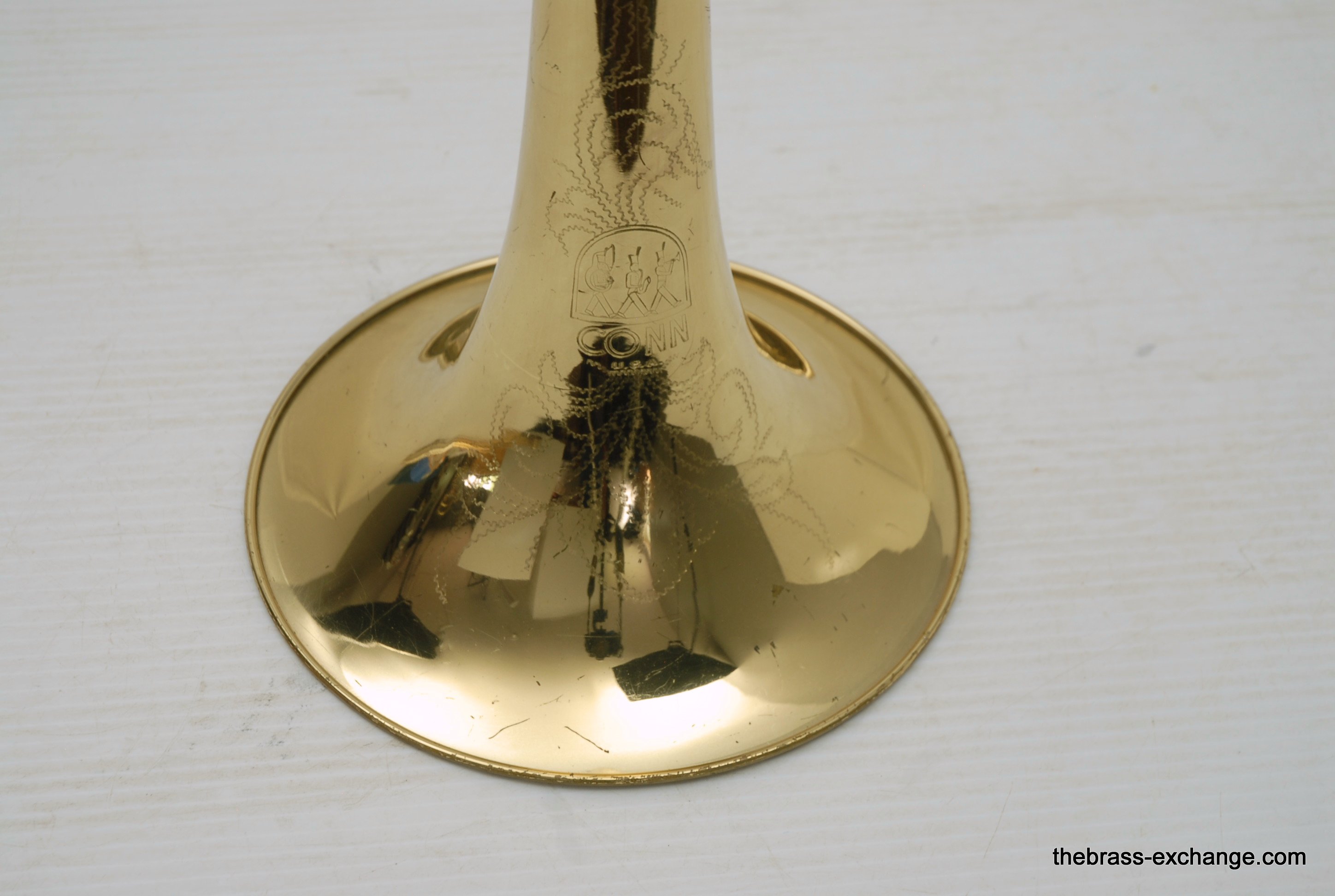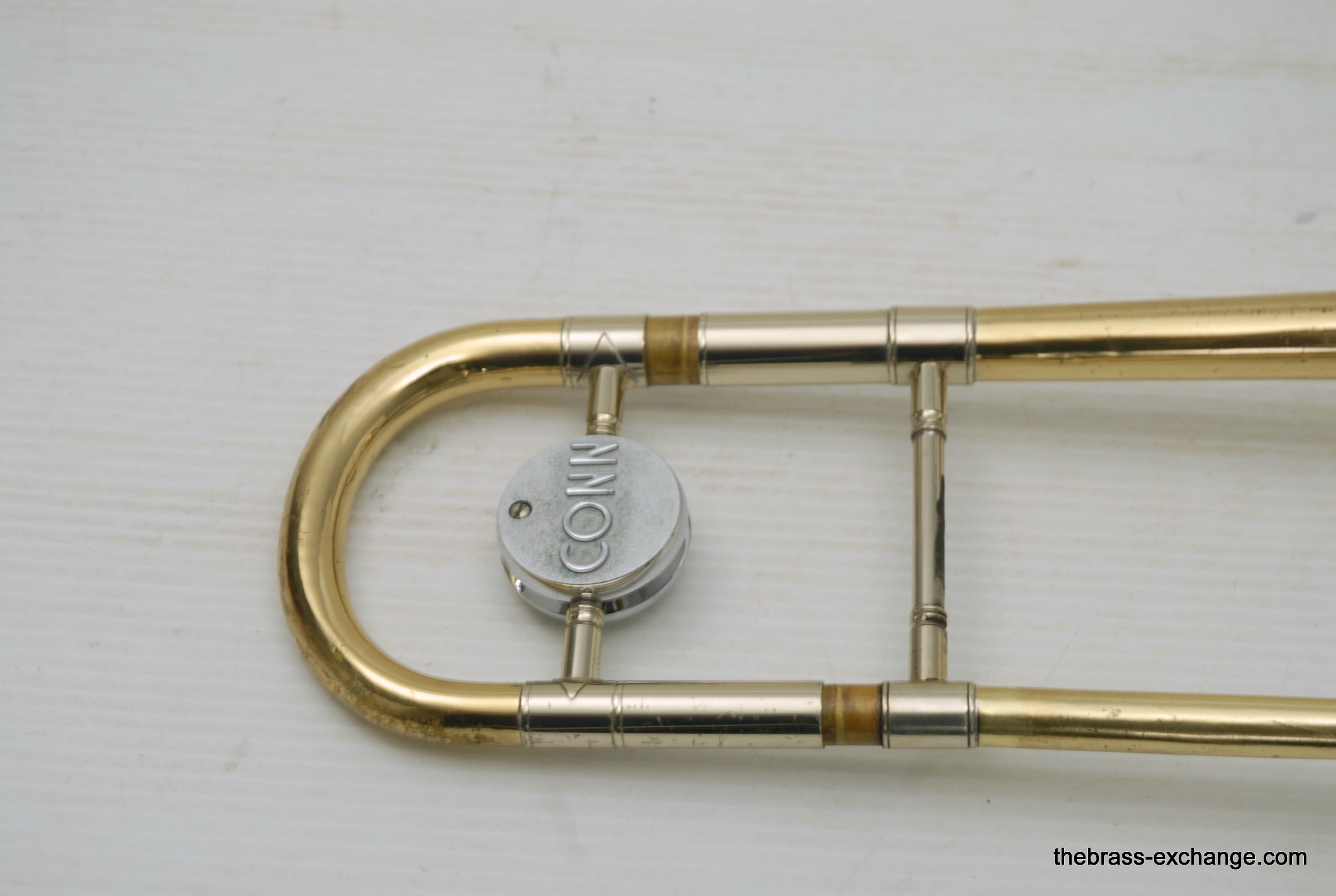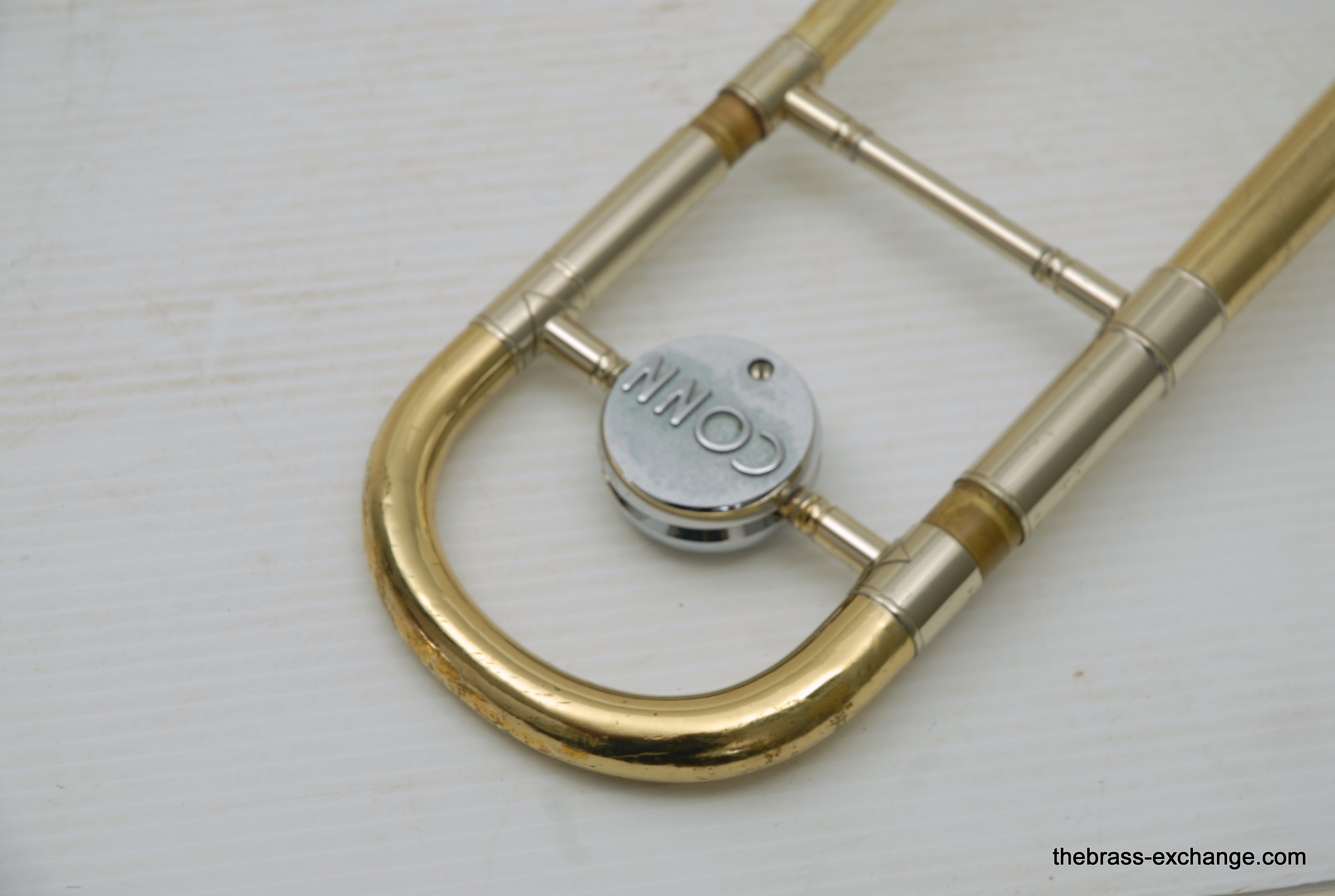 Conn 6H made in Elkhart, IN late 1960's S/N L88219.  Is in very good condition, super straight horn.  All original parts and lacquer.  Inner slide tubes are without any plating defects.  Has had full shop service, chemical bath, de-dented.  Bell flair has not seen any damage or prior dent work. Dents removed from neck, tuning slide, and bell stem, but not major.  This 6H plays good.  Handslide can be improved by a slide guy, but is playable as is. Has Conn 6H case.  Horn has serious potential, would be perfect for a jazz guy.  Plays with lot's of color.  Partials feel close together, does not slot overly tight, which is great for improvising.  Will sizzle when you tell it too.  In-stock for immediate delivery.