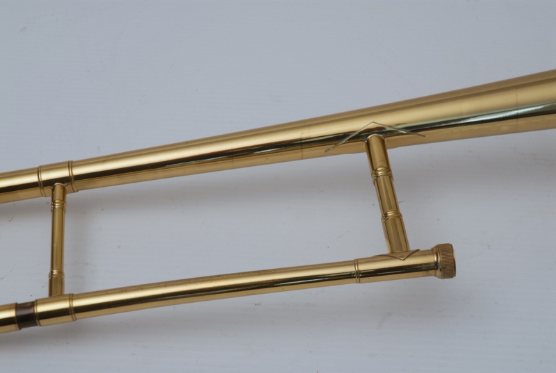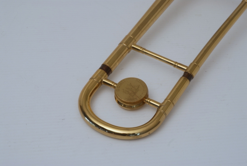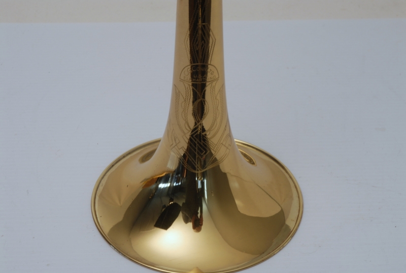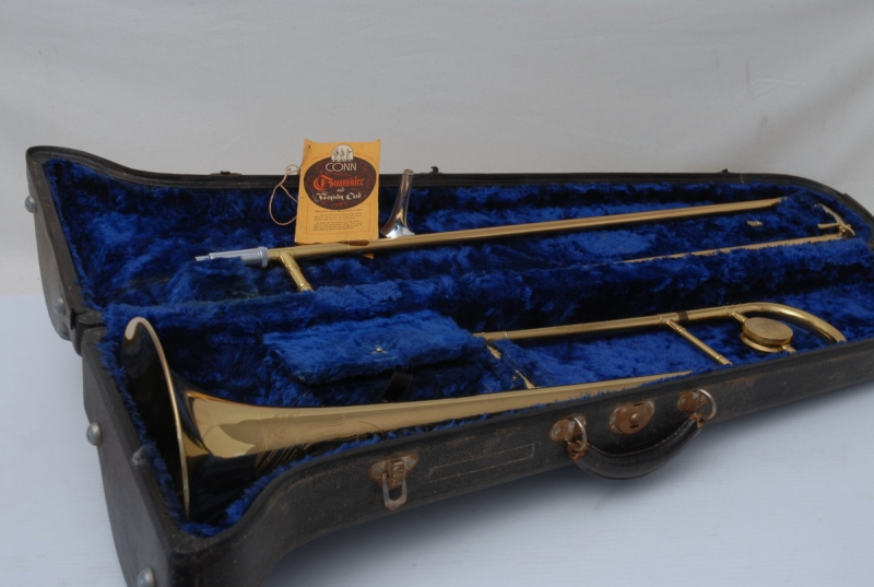 Conn 6H from 1953, Vintage Elkhart. Without question, this is the cleaneast 6H that we have ever had from the early 50's. All original parts, case, mouthpiece. Slide is amazingly straight and smooth. Bell, tuning slide and neckpipe all in excellent condition. Non-orginal counterweight, but a match to the 50's models. This is an amazing playing 6H and would be ideal for an high level or pro-player/collector. Bell seems to be more weighty and has denser sound, projection is far superior to those of the mid-late 60's. Sound has lot's of color and tonal flexibility. Would be an excellent choice for a soloist/jazz improviser or lead player. These are becoming increasingly more rare as time passes.