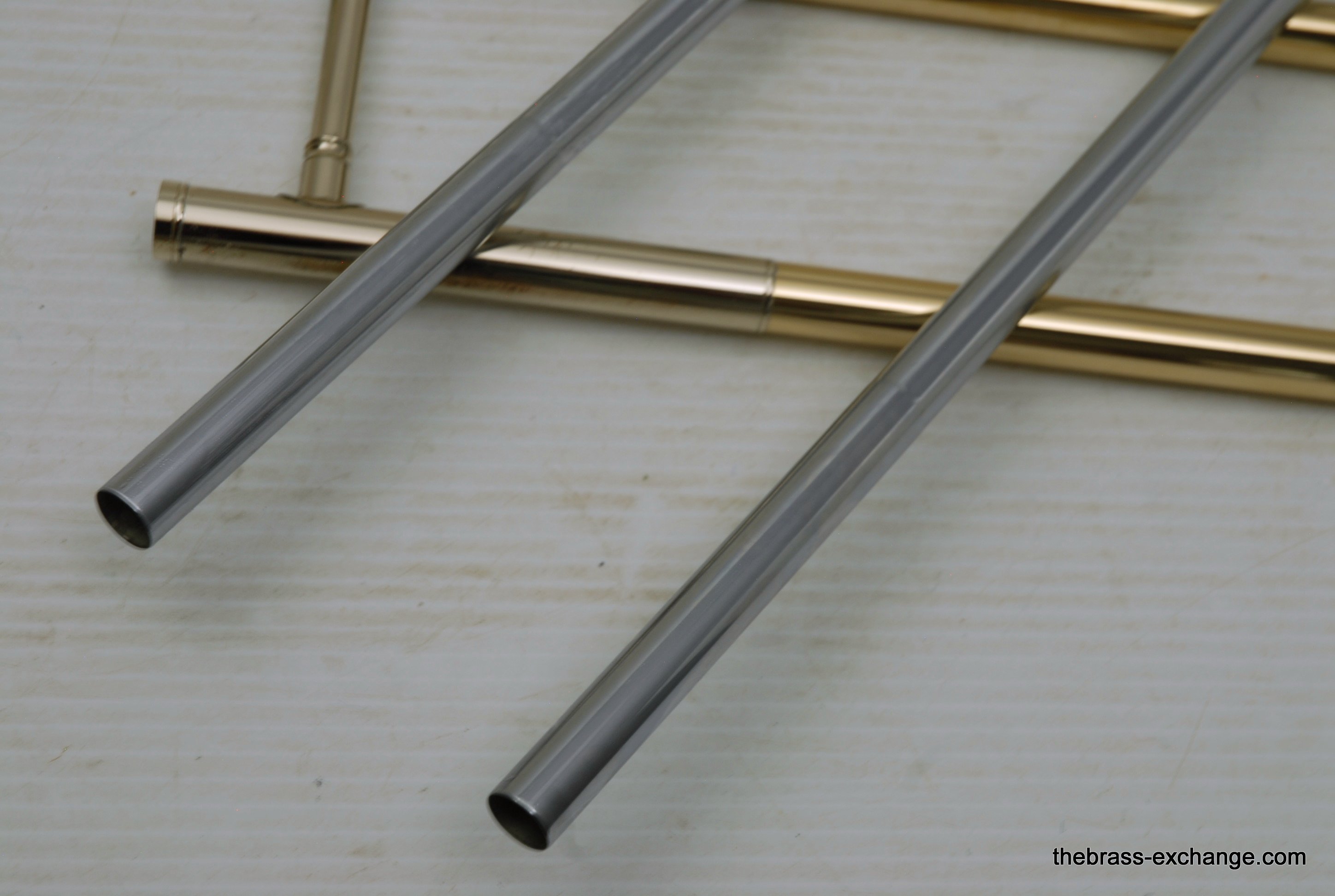 The handslide is classic Conn construction, with yellow brass outer tubes, a nickel silver endcrook, and a Remington leadpipe. The inner slide tubes are as close to flawless as you'll findโ€”100% plating, no wear, and superior alignment. It plays without tension and speaks quickly across the full range.