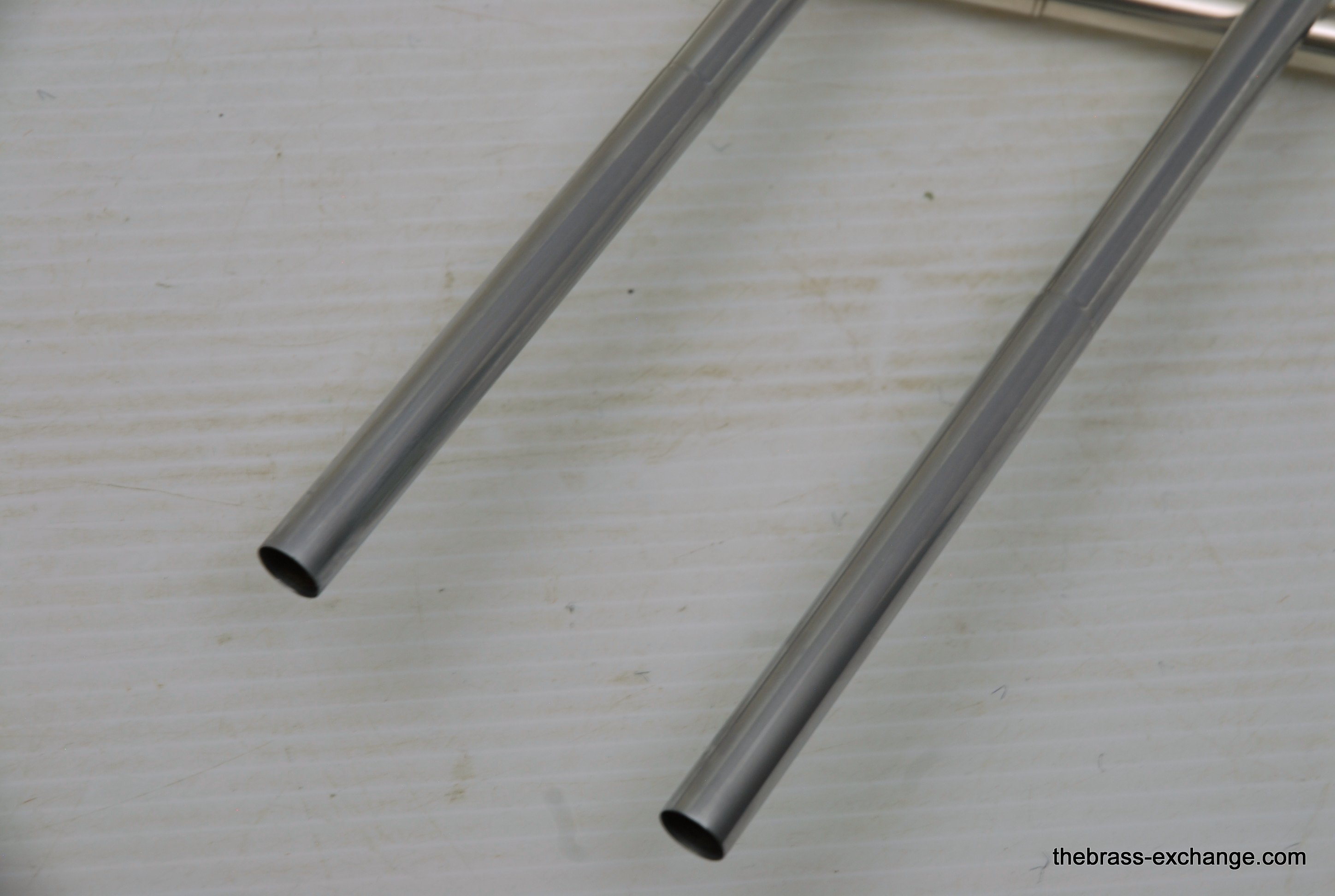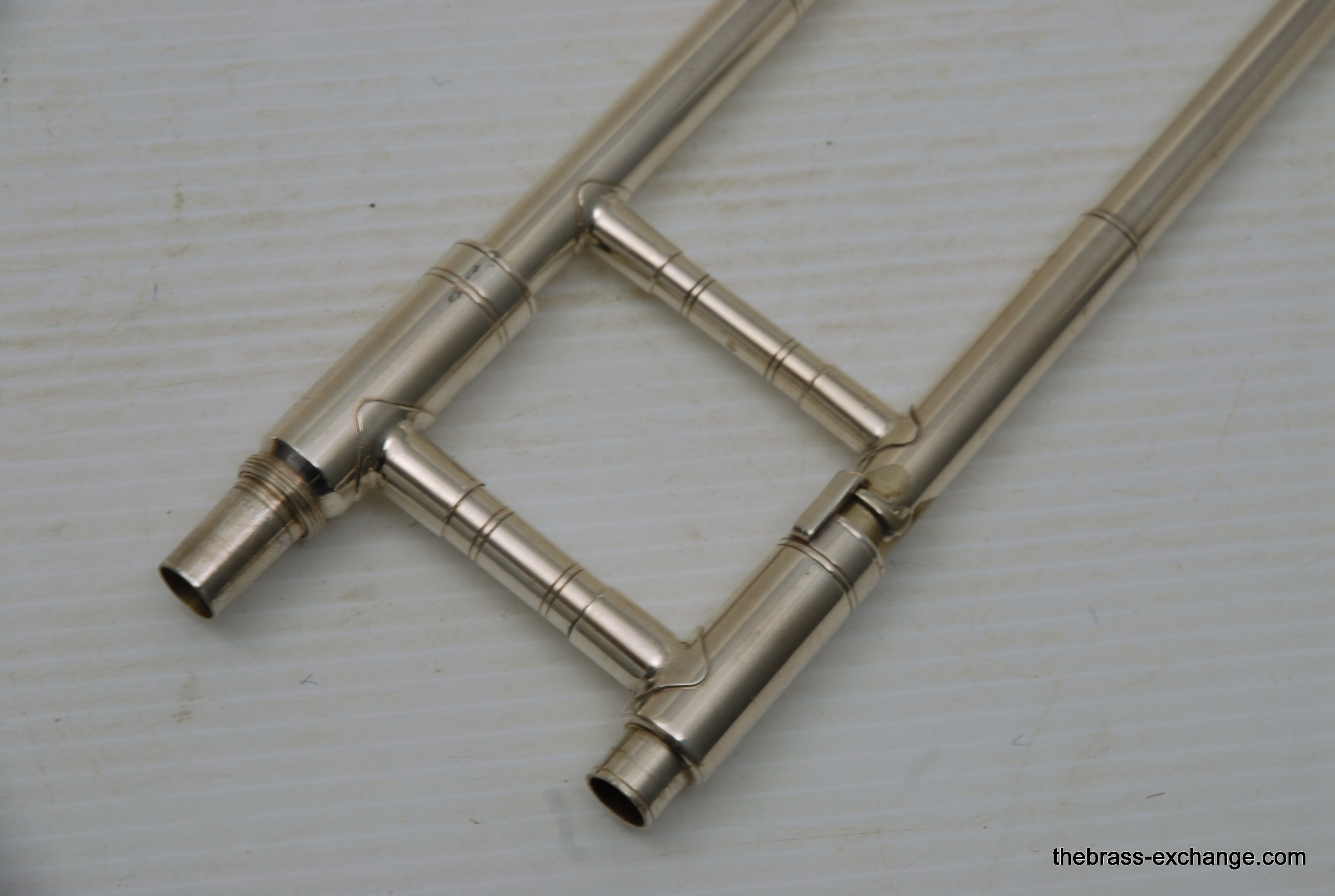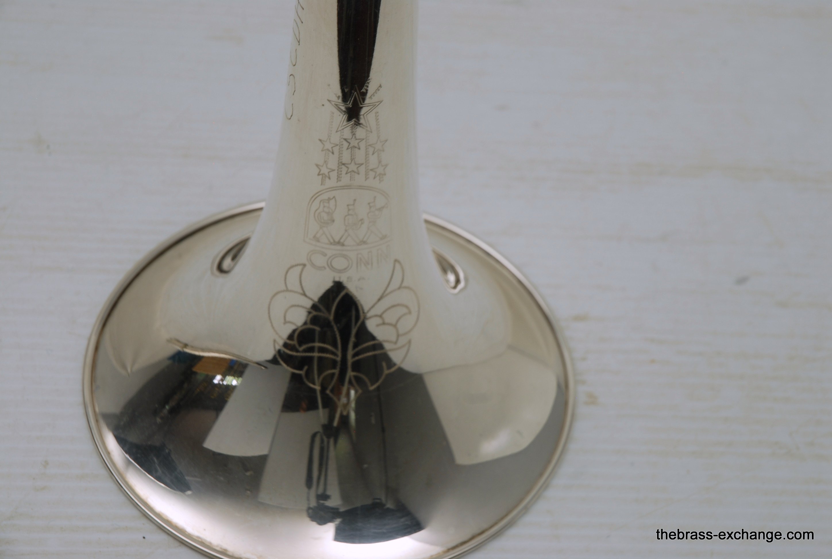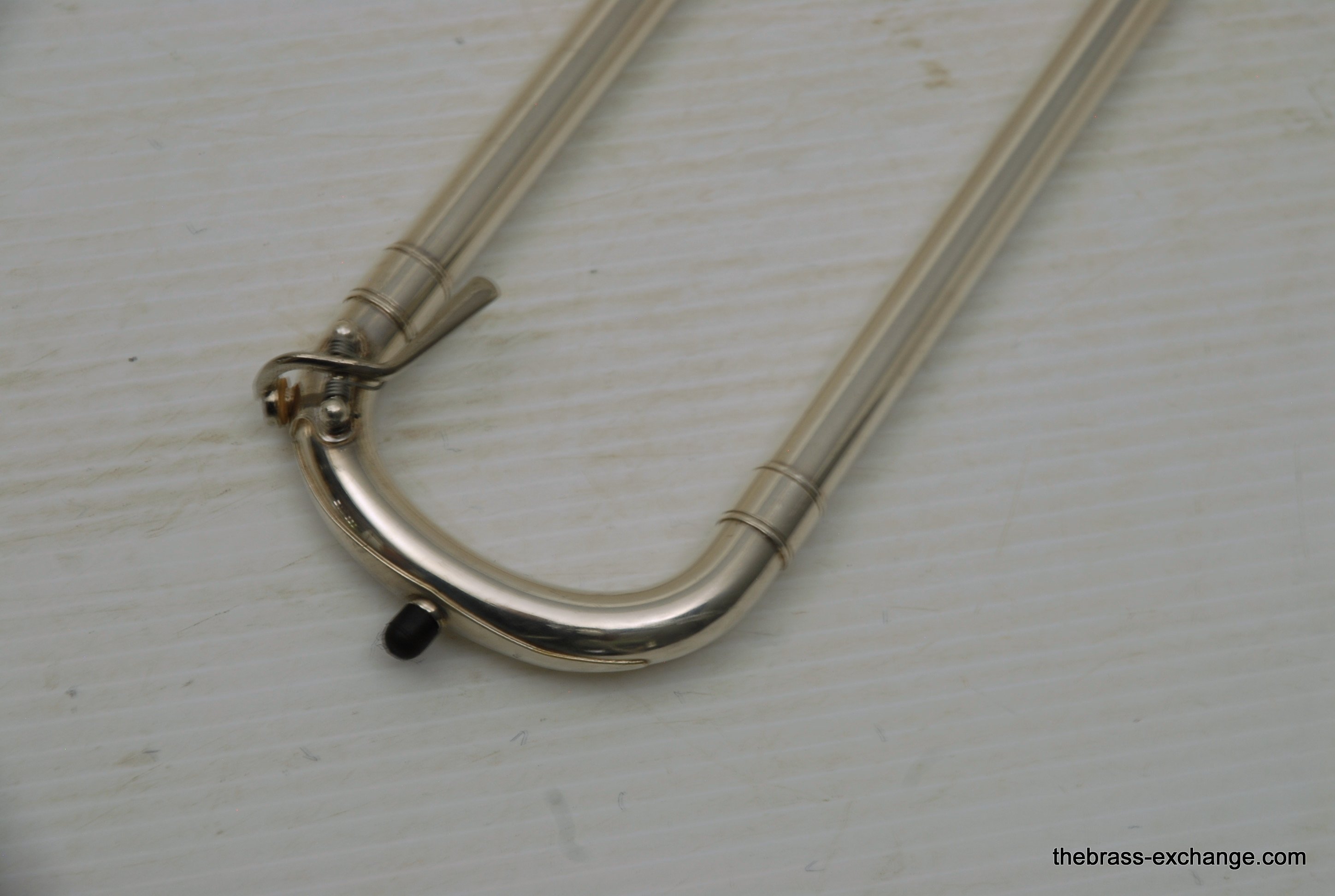 Conn 77H Small Bore Jazz Trombone. Silver Plated .500 bore with 7.5" Bell section. This is a 1970's Make. Very similar to the 6H model, except the bell is a little less in diameter. It plays with a lot of focus and sizzle. Would be a great lead or jazz horn for someone looking to cut above the rest. The upper register is a like a laser on this horn. Would be a great college player horn for jazz band, but also a terrific horn for anyone looking to play on a vintage Conn. Would also be a great horn for marching band becasue most of the other guys in the trombone section are playing on traditional yellow brass. Silver horns stand out in the crowd which makes it much easier to spot your favorite player from the grandstand. Original case. Has great slide, no previous damage or repairs. No service needed to improve playability. In-stock for immediate delivery.