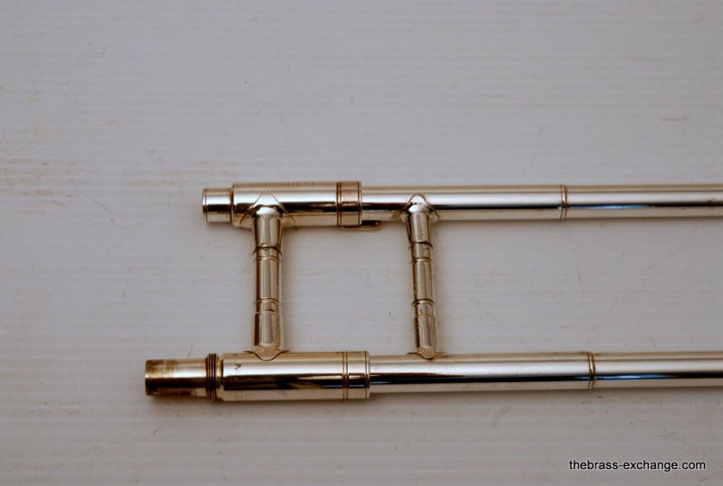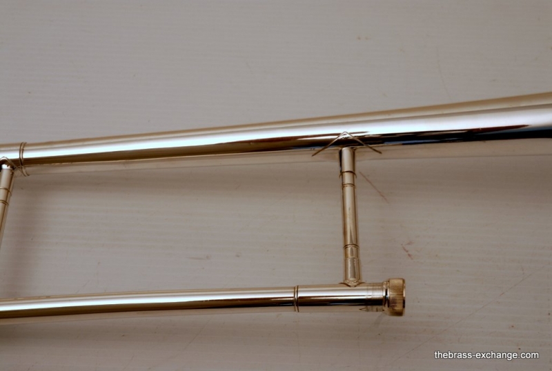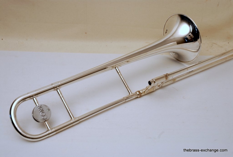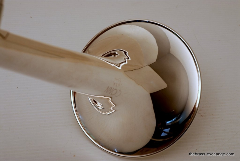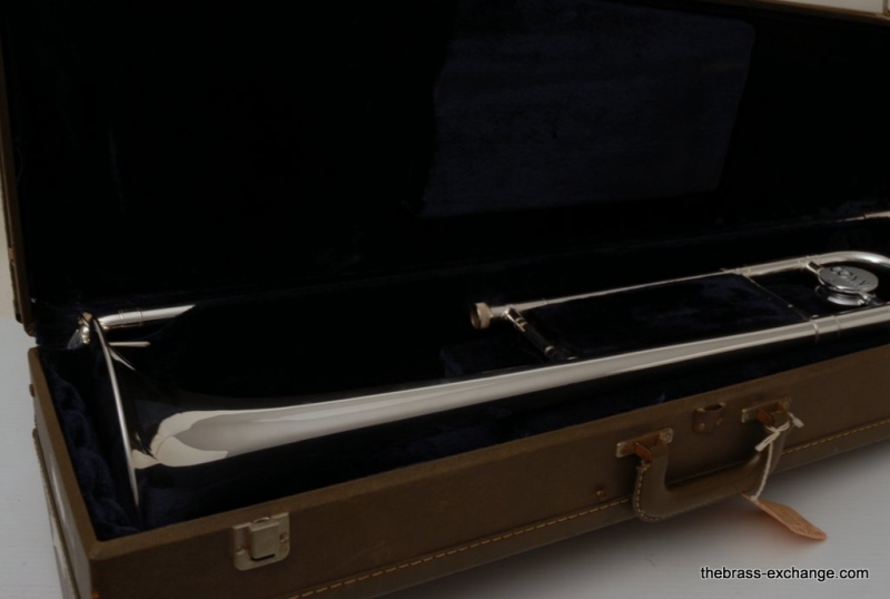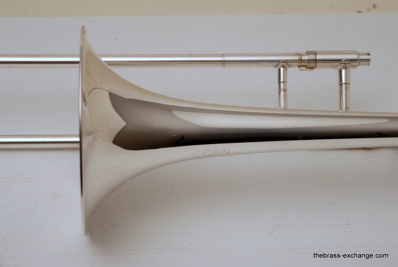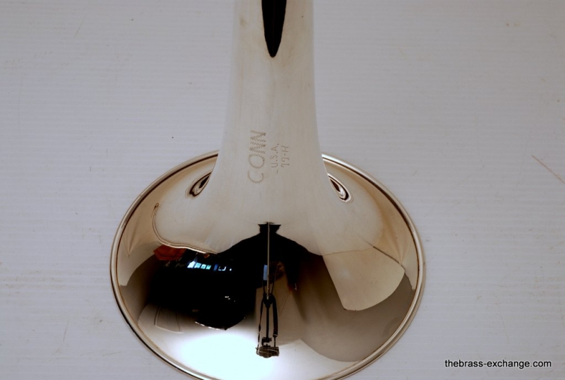Conn 77H from 1970's in Silver. Has 7.5" Bell with .500 bore hand slide. Is very similar to the 100H or 6H, but slightly small bell size, 7.5 vs. 8". Is in excellent condition. Freshly cleaned and serviced. Would be a great small bore for Jazz Band. Would also make a great marching horn. It's much easier to spot your favorite trombone player in the line-up when he's playing silver and everyone else is playing yellow or gold brass. Single owner horn, in amazing shape. Quality of this instrument is far superior to anyting new in it's price point from Conn-Selmer today.