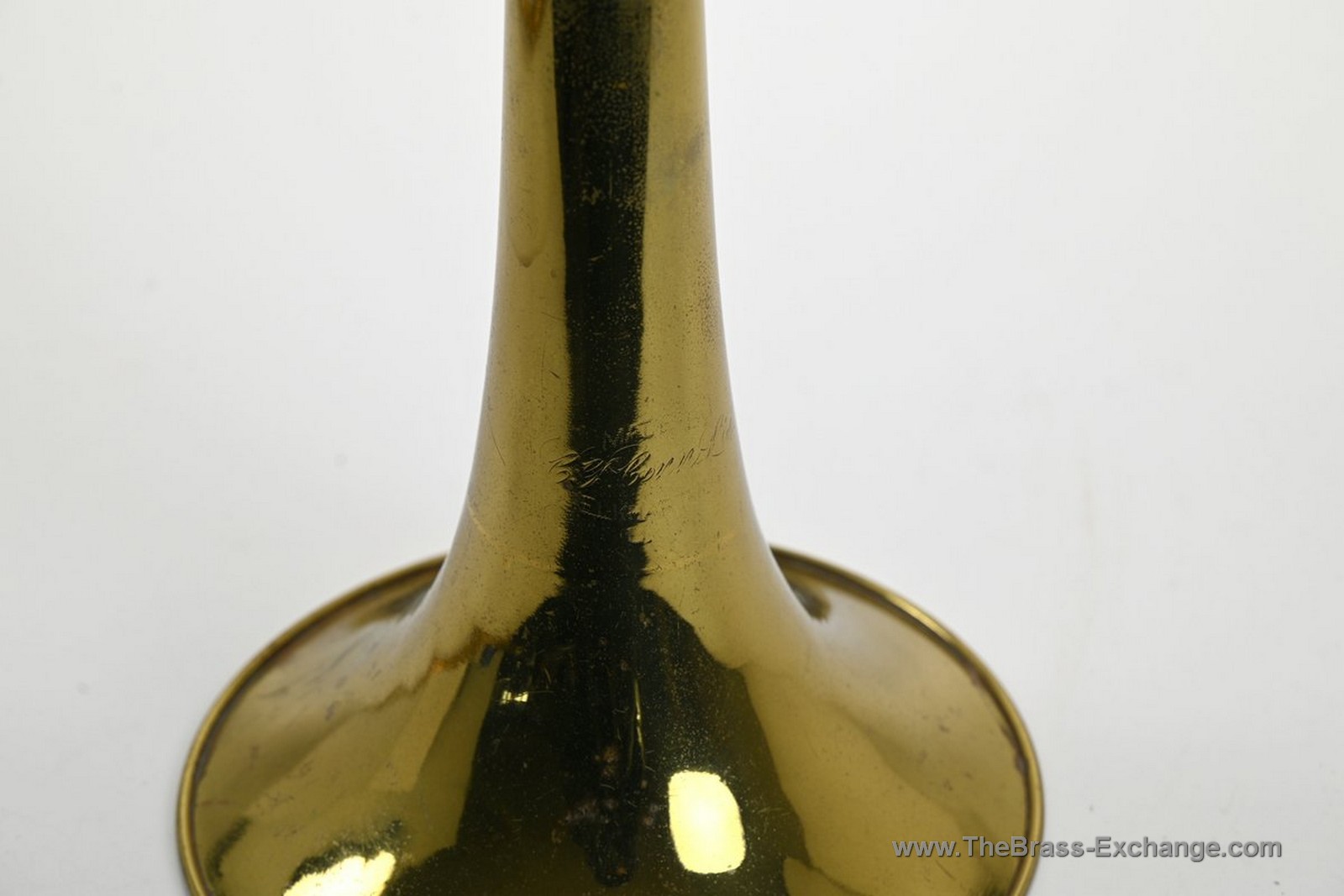 The engraving is the earlier Conn style that predates the later Art-Deco designs, giving the horn extra visual character. Structurally it is straight, clean, and beautiful — both a collectible example and a horn you could absolutely play every day.