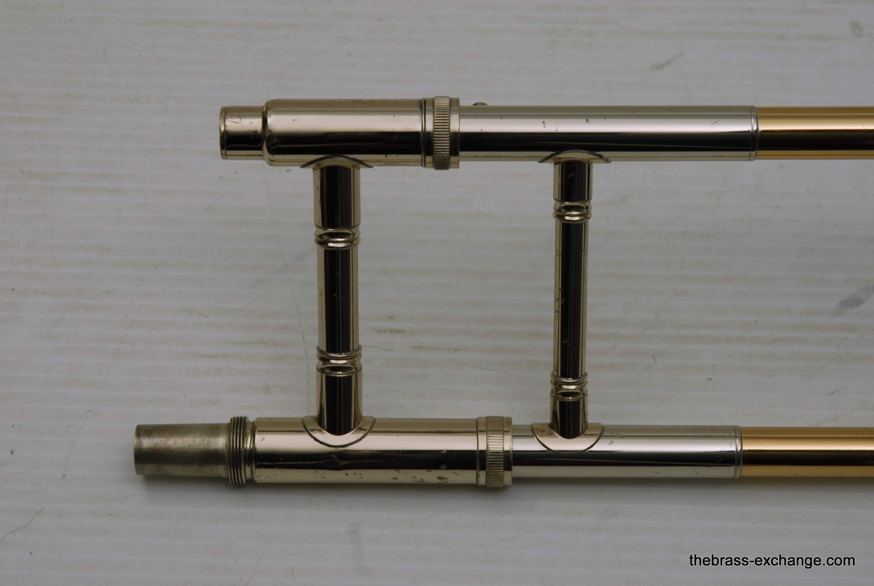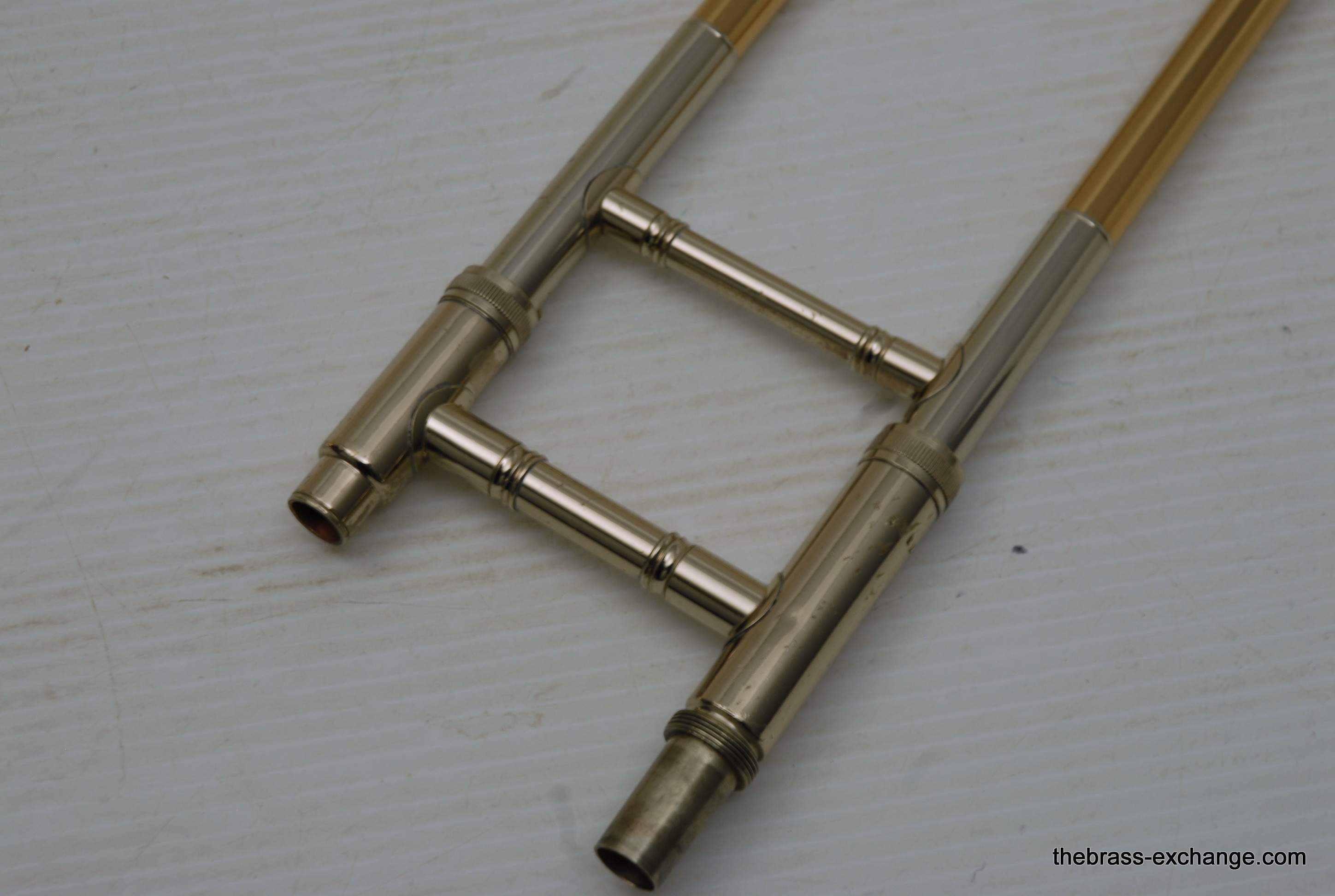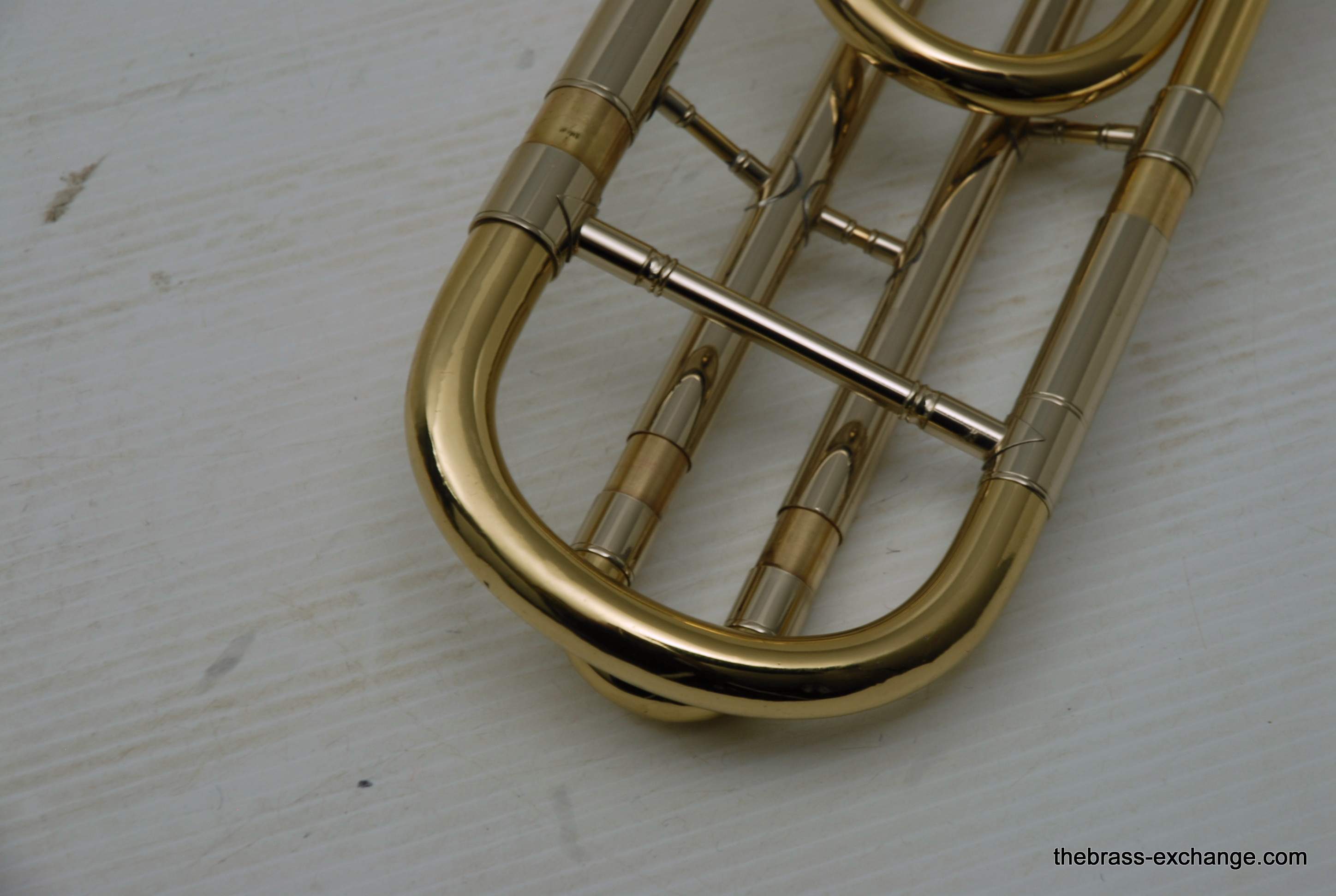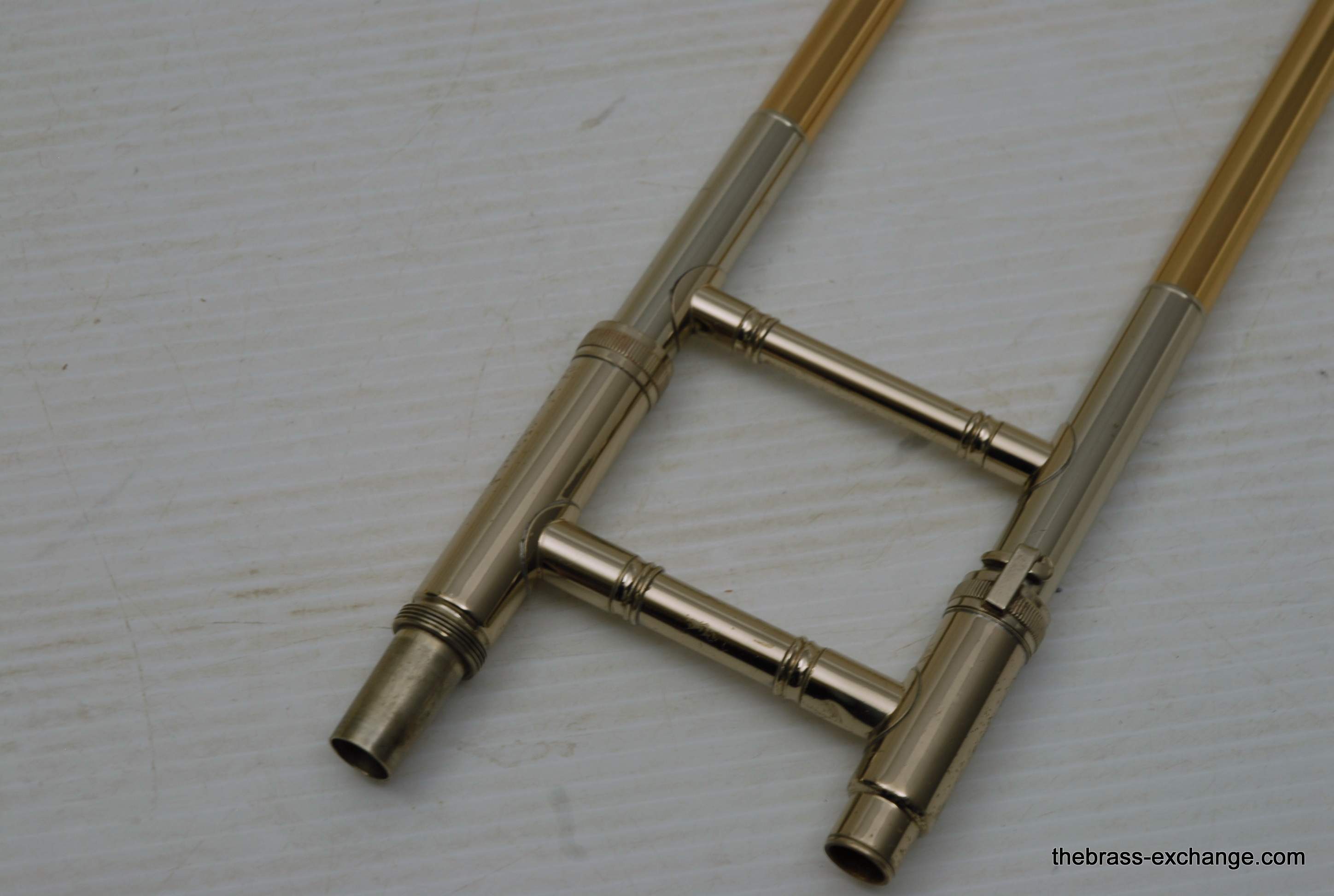 Conn 79H Medium Bore .522 Vintage Elkhart Trombone. Quite a rare instrument. Is just like a 78H except with F-attachment. Conn Trombone Serial Number Data Base indicates this "M" Series was made in 1969. Has 8" yellow brass bell, traditional wrap rotor, similar to 88H. Gold Brass Hand slide .522 Bore. All original parts and lacquer. Single owner instrument. Has been closet kept for the last 25-30 years. We did full shop service, including chemical bath, rotor & slide adjust. Is super clean and without flaw. Inner slide tubes are in perfect condition. No dents or dings anywhere on this fine instrument. Takes standard small shank mouthpiece. Hand slide is very smooth and without tension. Excellent choice for anyone looking to play a medium bore with trigger. Fantastic for pit orchestra where you need an occasional trigger, but don't want to take the full large bore tenor. In-stock for immediate delivery.