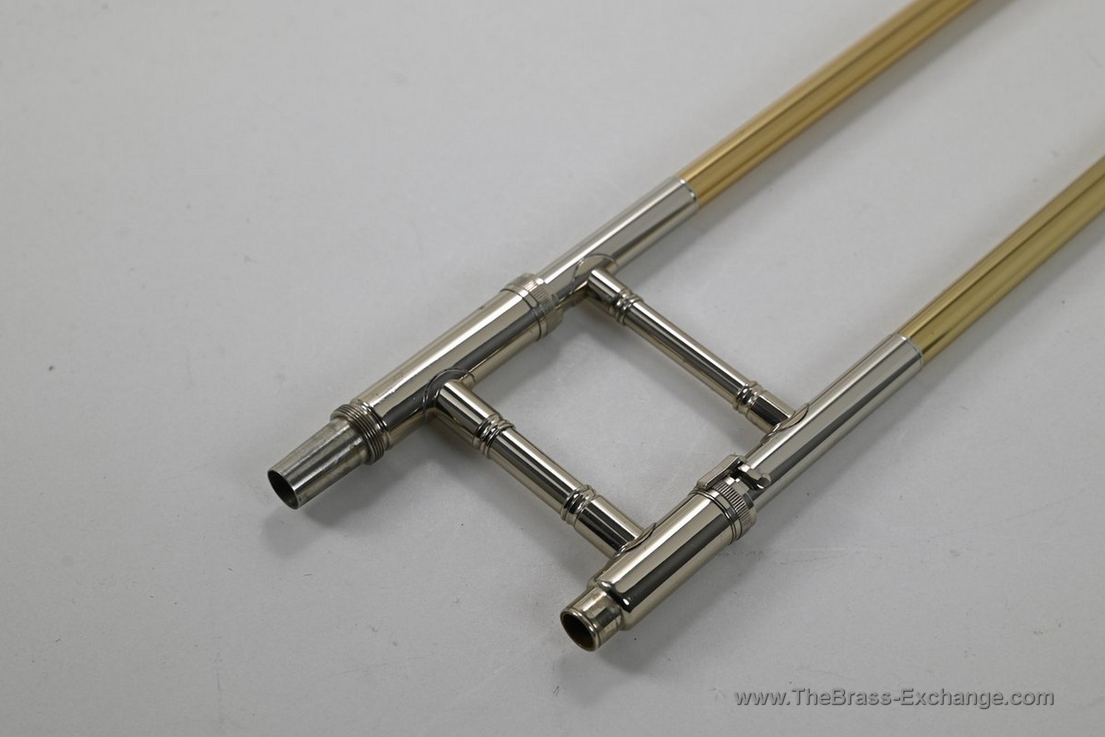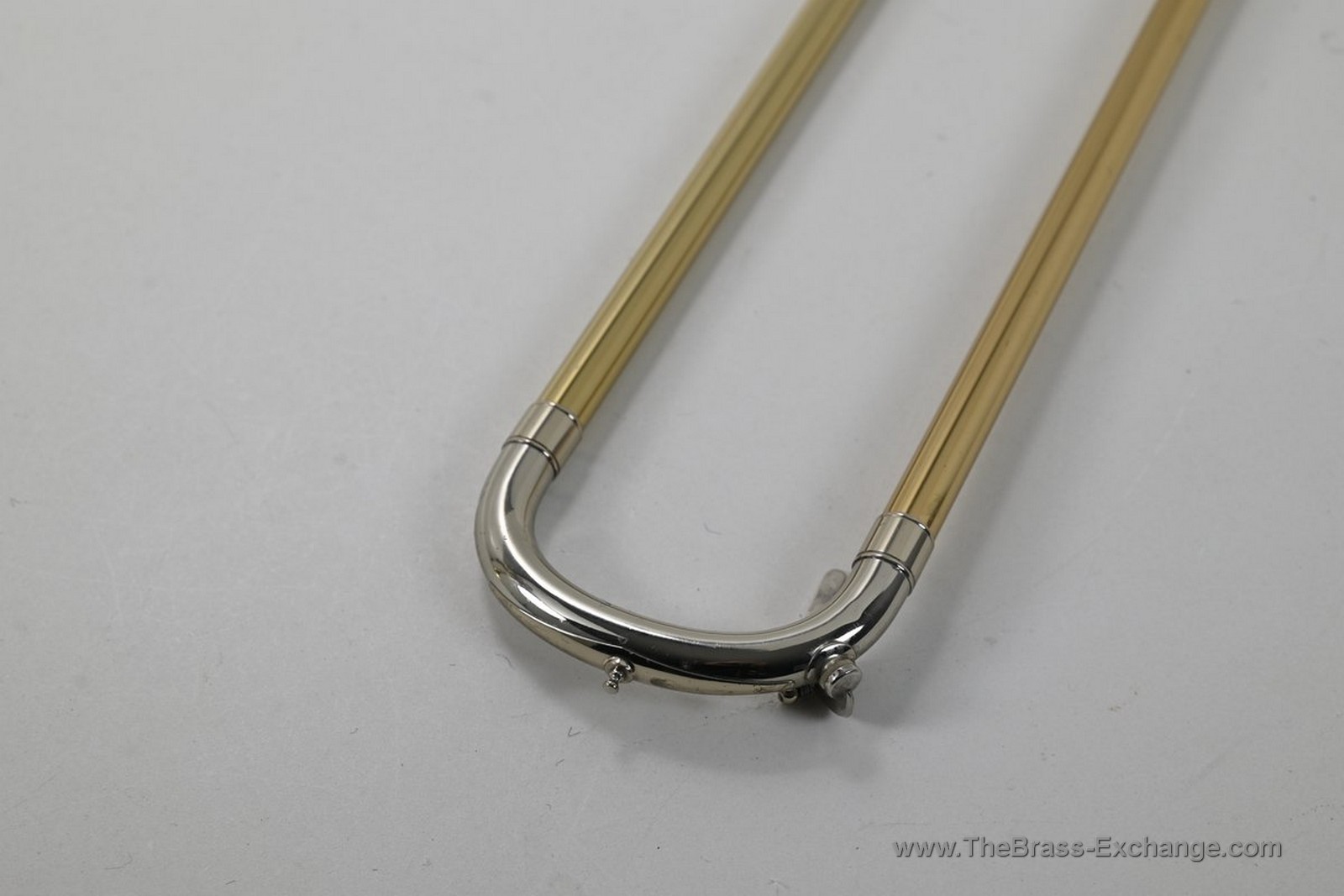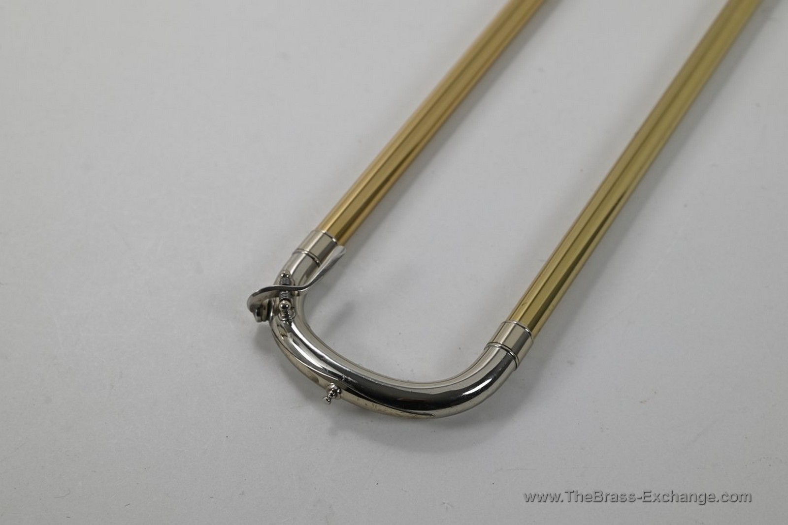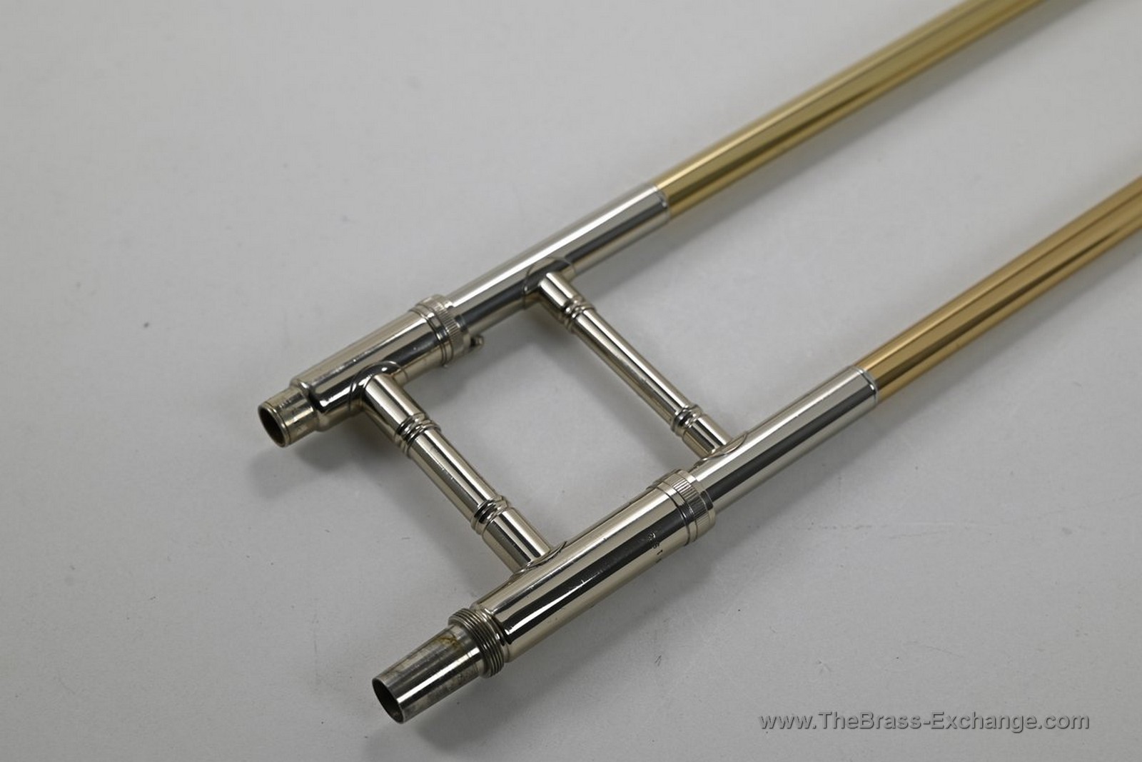The handslide is outstanding โ straight, responsive, and tension-free on both inner tubes, with no inner slide plating loss. Gold-brass outer tubes and nickel-silver end crook show minimal signs of use only. Handslide grip areas, cork barrel, and contact points are all in excellent shape. This is a true late-Elkhart survivor with remarkably light use.