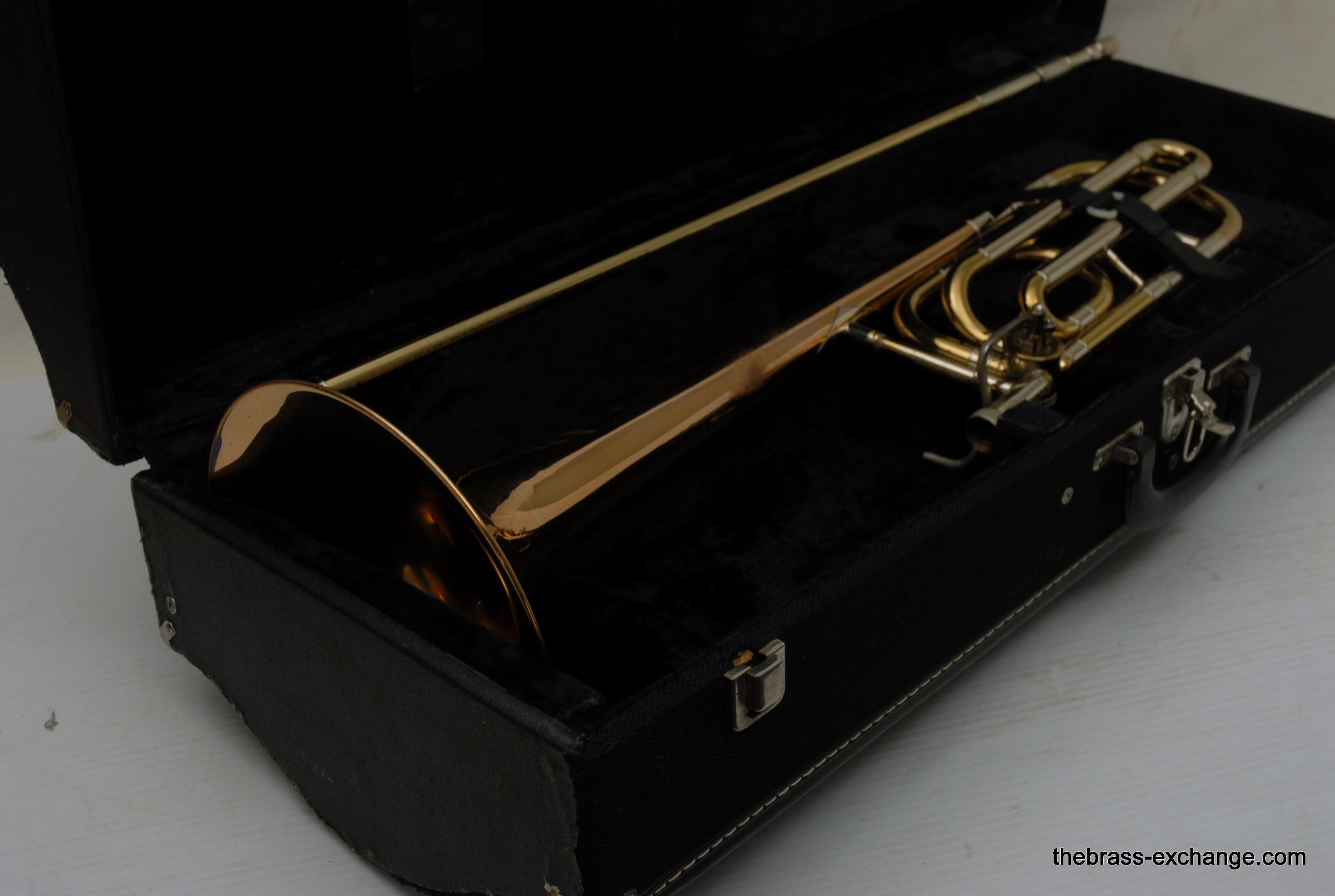 Conn 88H Ekhart Era Vintage 1969.  All original parts & lacquer.  Super nice playing 88H.  There may be prettier ones out there, but not many.  The thing with 88H's is that they are great horns.  Usually guys that own them know what they are doing and play on them a lot.  But also, good players tend to take care of their instruments.  This one has had full shop service with chemical bath, rotor serviced, slide adjusted.  It's ready to play, and actually plays fantastic.  I tested it out using a Remington shank Bach 4GB and was amazed at how easy it played and how fantastic it sounded.  The handslide is really good, and is without any inner slide defect.  Anyone looking for a classic Elkhart 88 will love playing this horn.  The case is non-original, is a Holton.  In-stock for immediate delivery.