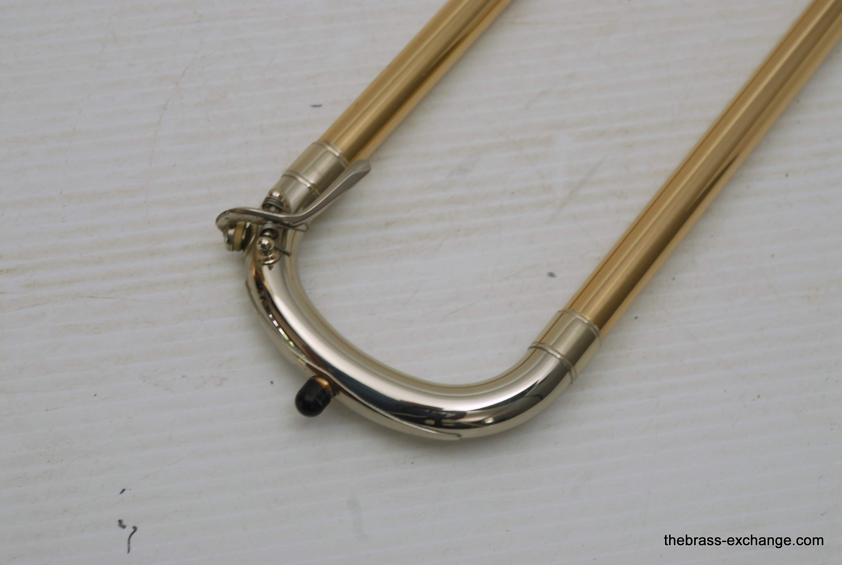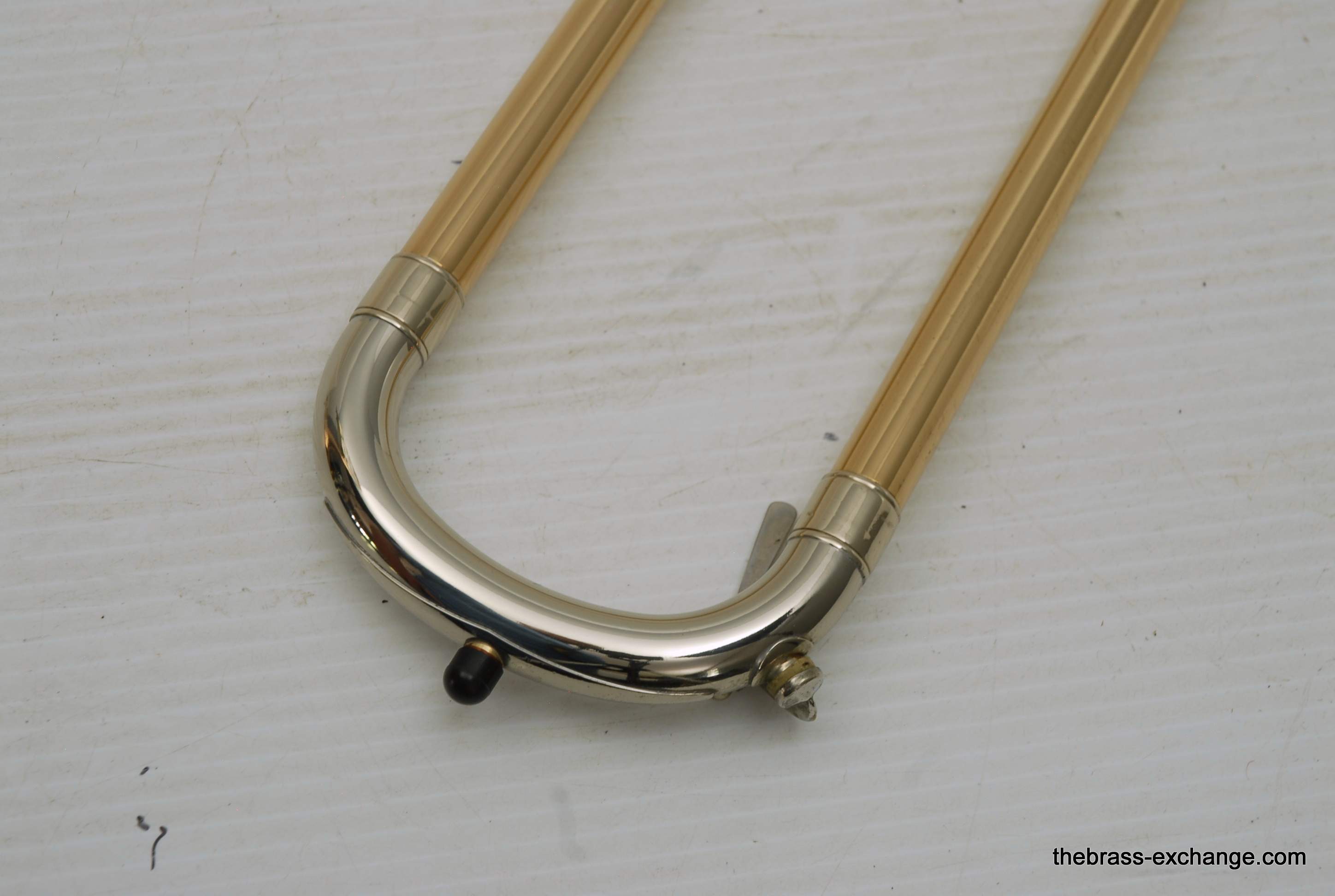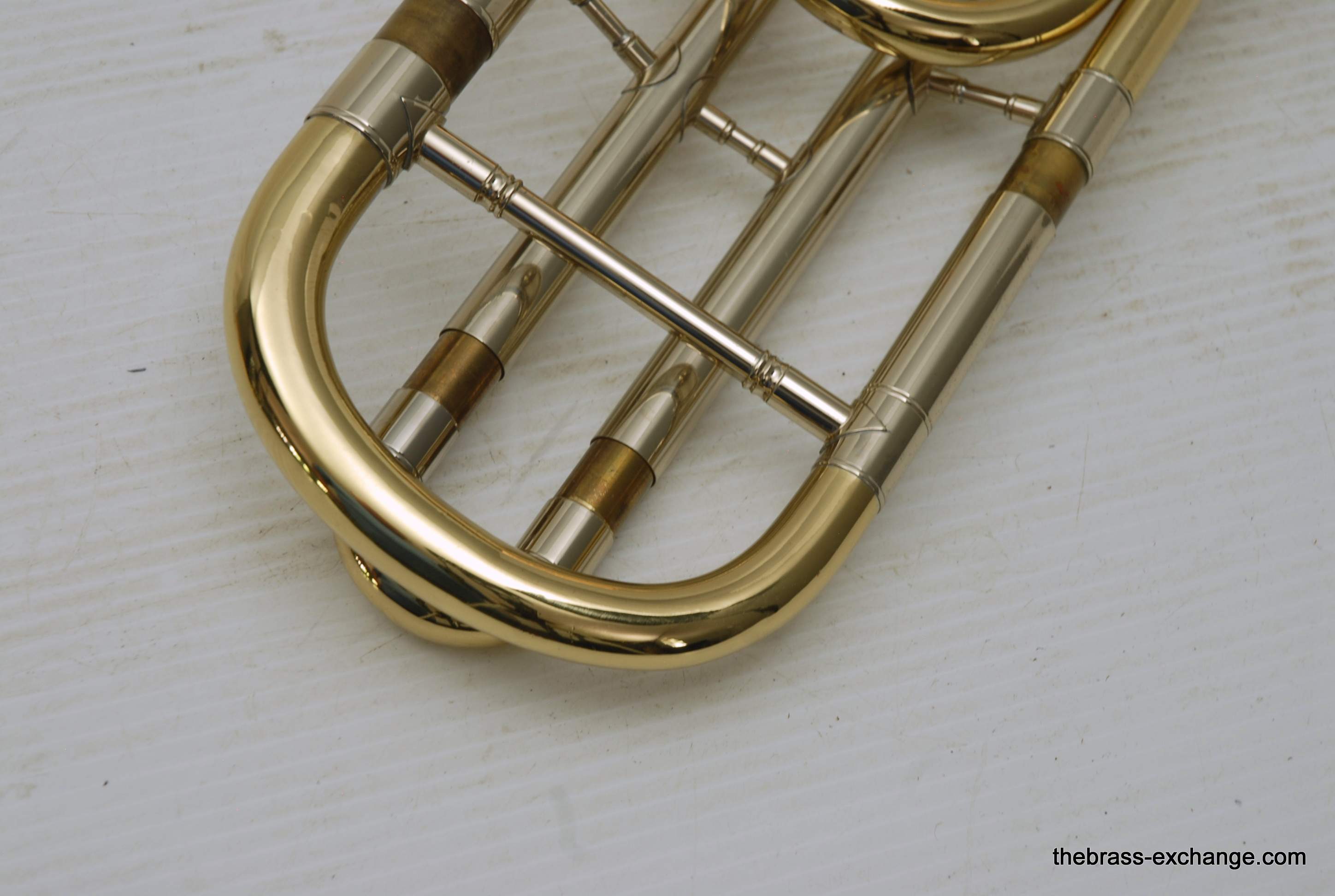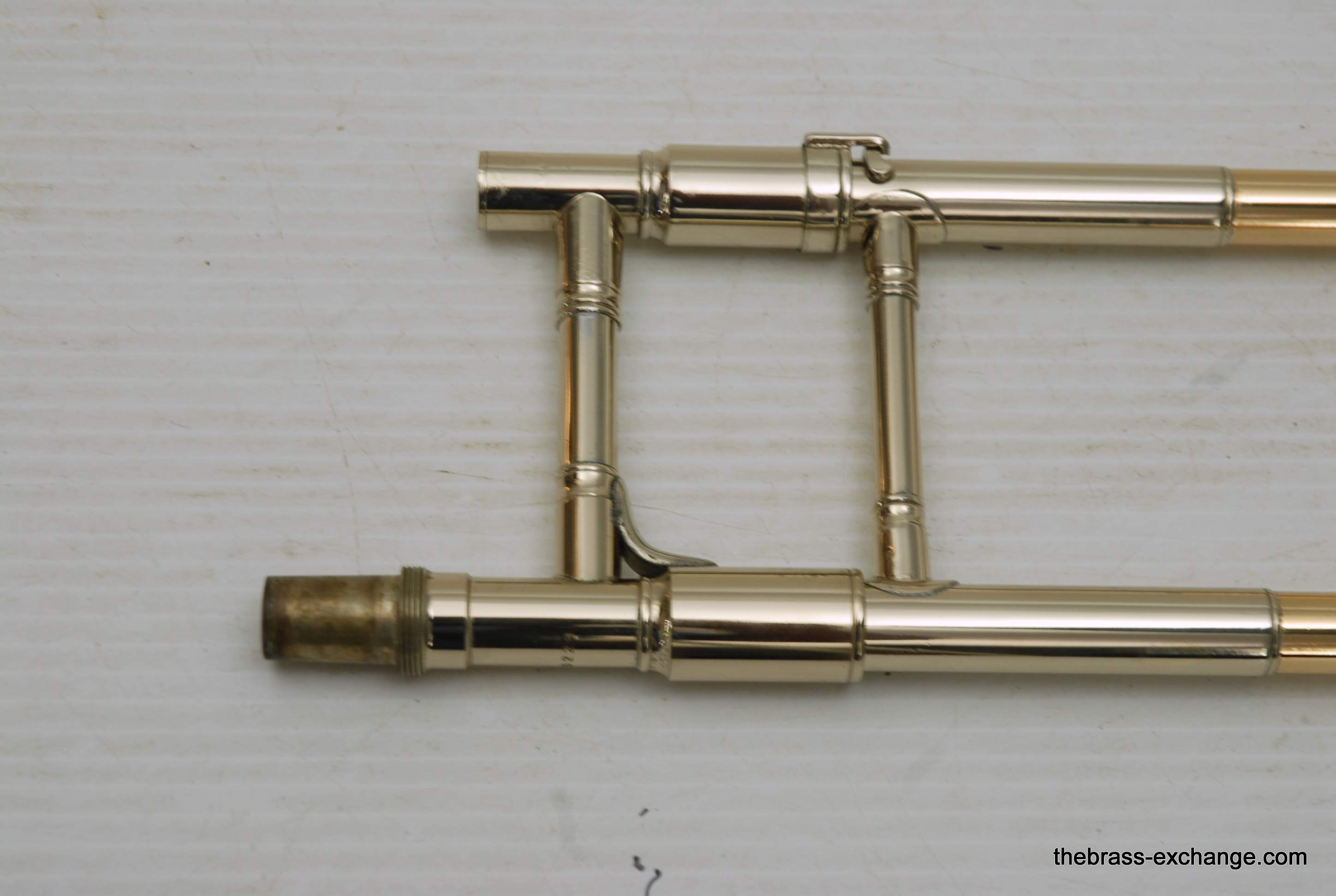 During its time on our bench, we completed full shop service, including a chemical cleaning, valve and slide setup, and play testing. At the time, a small tuning slide ding was noted but corrected before delivery — a typical detail we address to ensure the horn leaves tension-free. The slide was confirmed straight with quiet action, and the horn spoke evenly across dynamics.