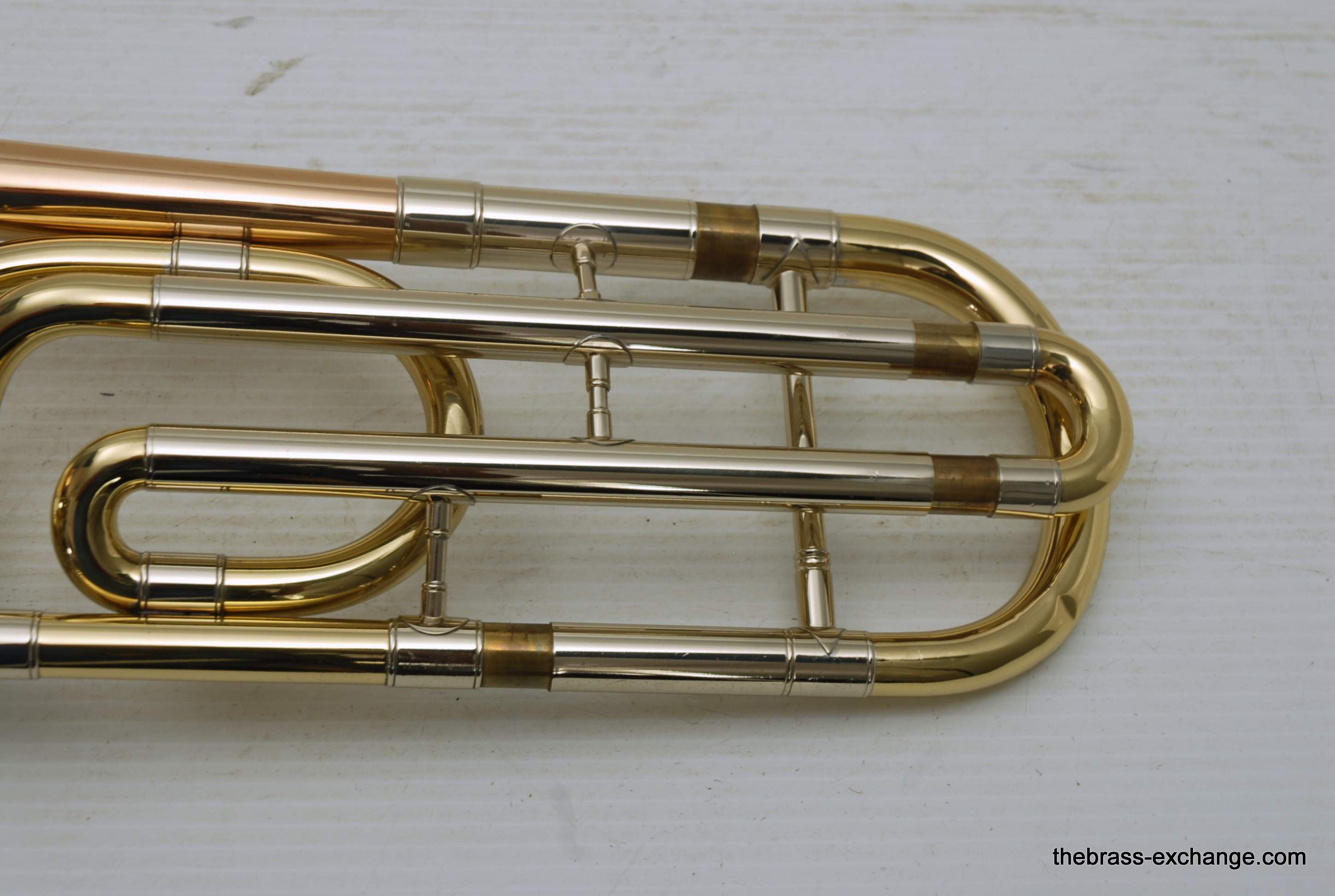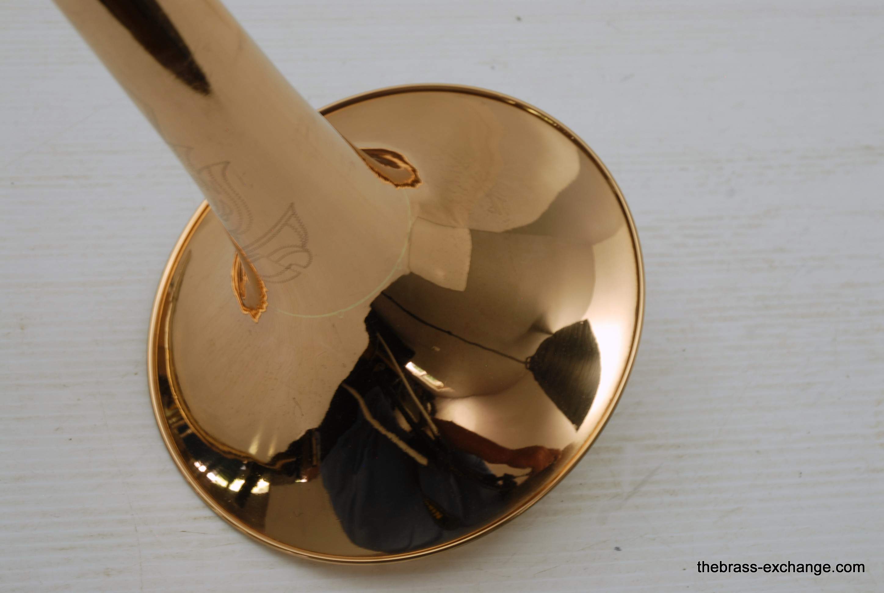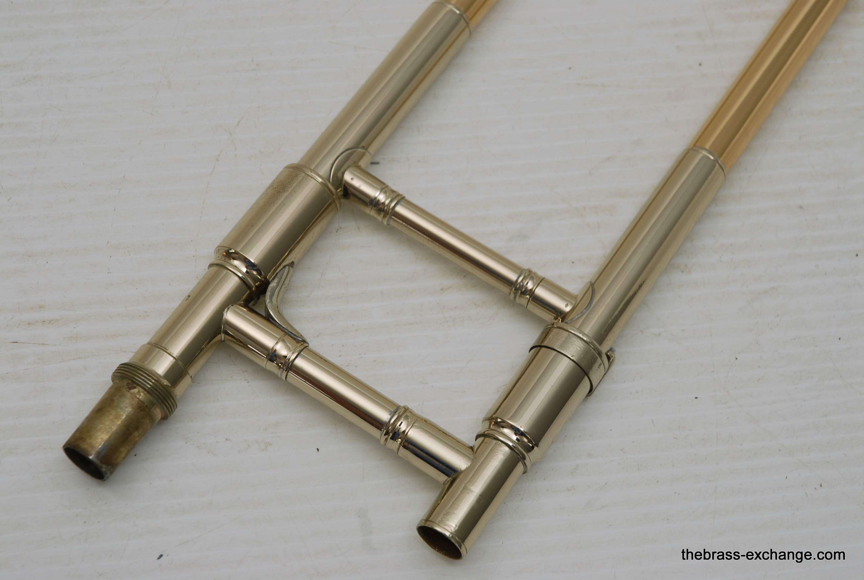During its time on our bench, we completed full shop service, including a chemical cleaning, valve and slide setup, and play testing. At the time, a small tuning slide ding was noted but corrected before delivery — a typical detail we address to ensure the horn leaves tension-free. The slide was confirmed straight with quiet action, and the horn spoke evenly across dynamics.