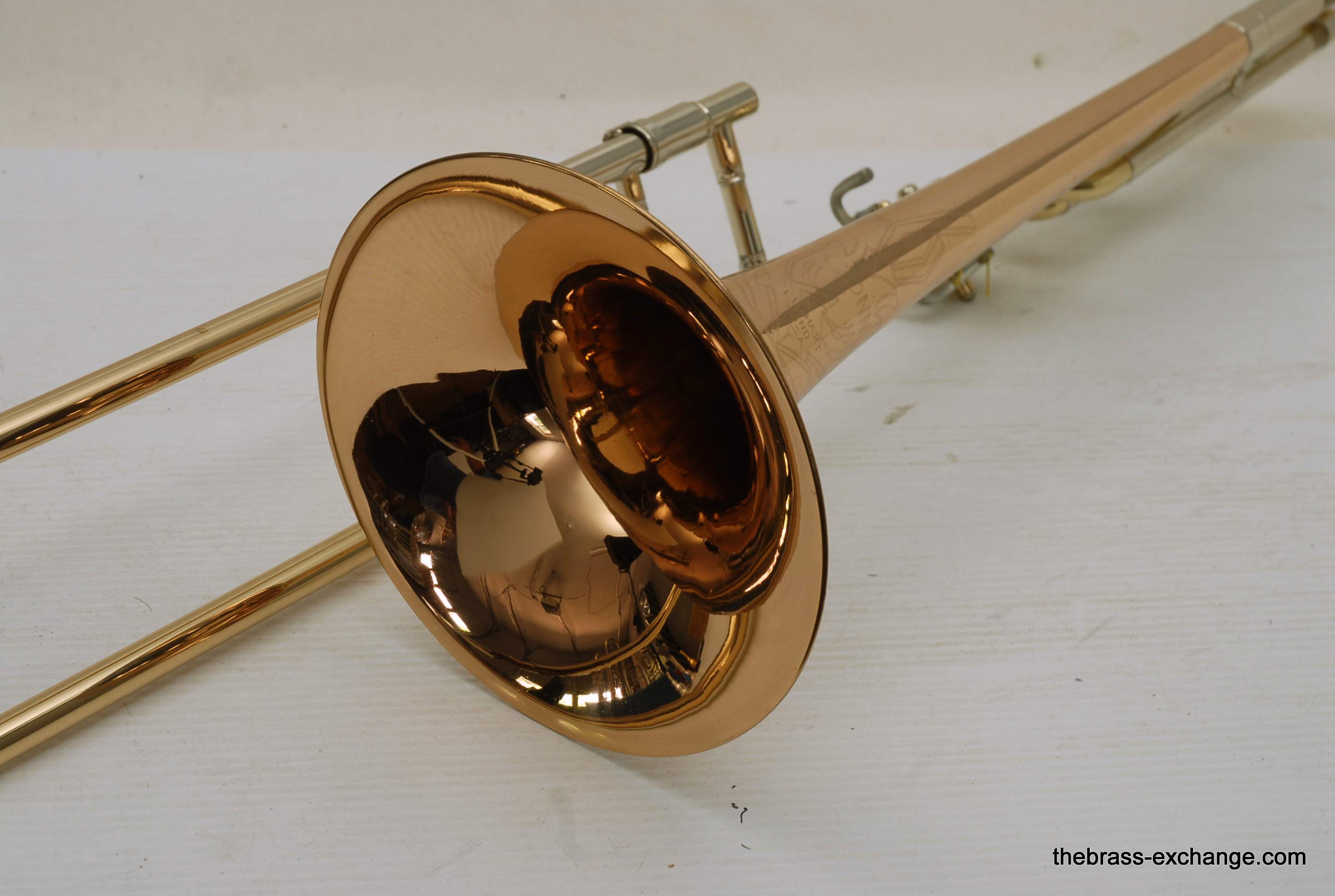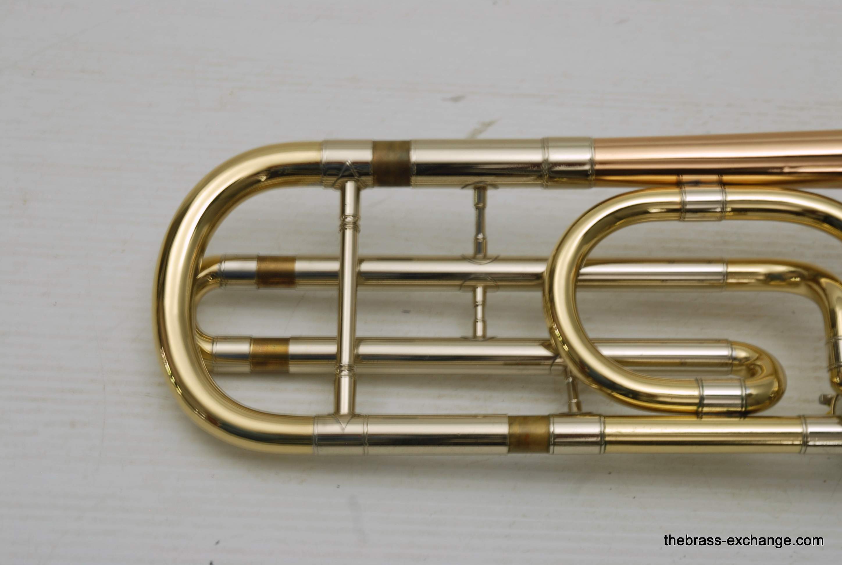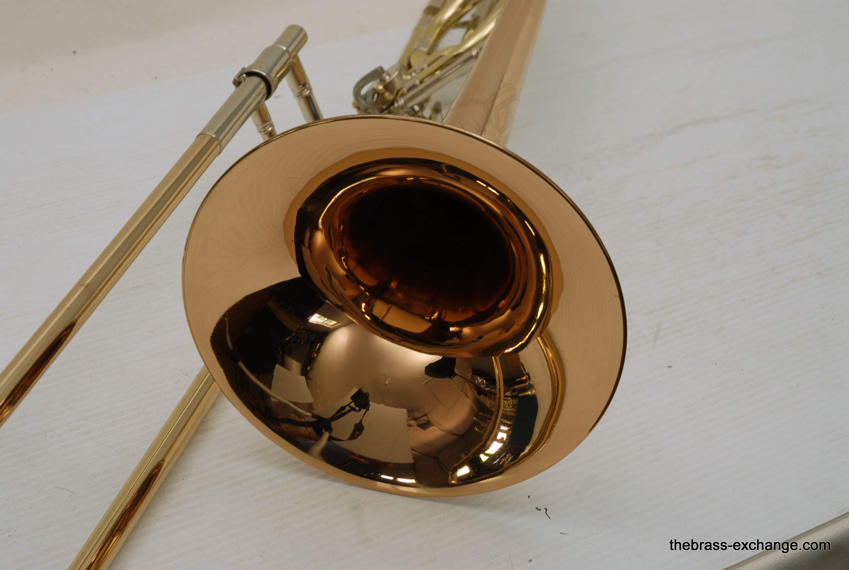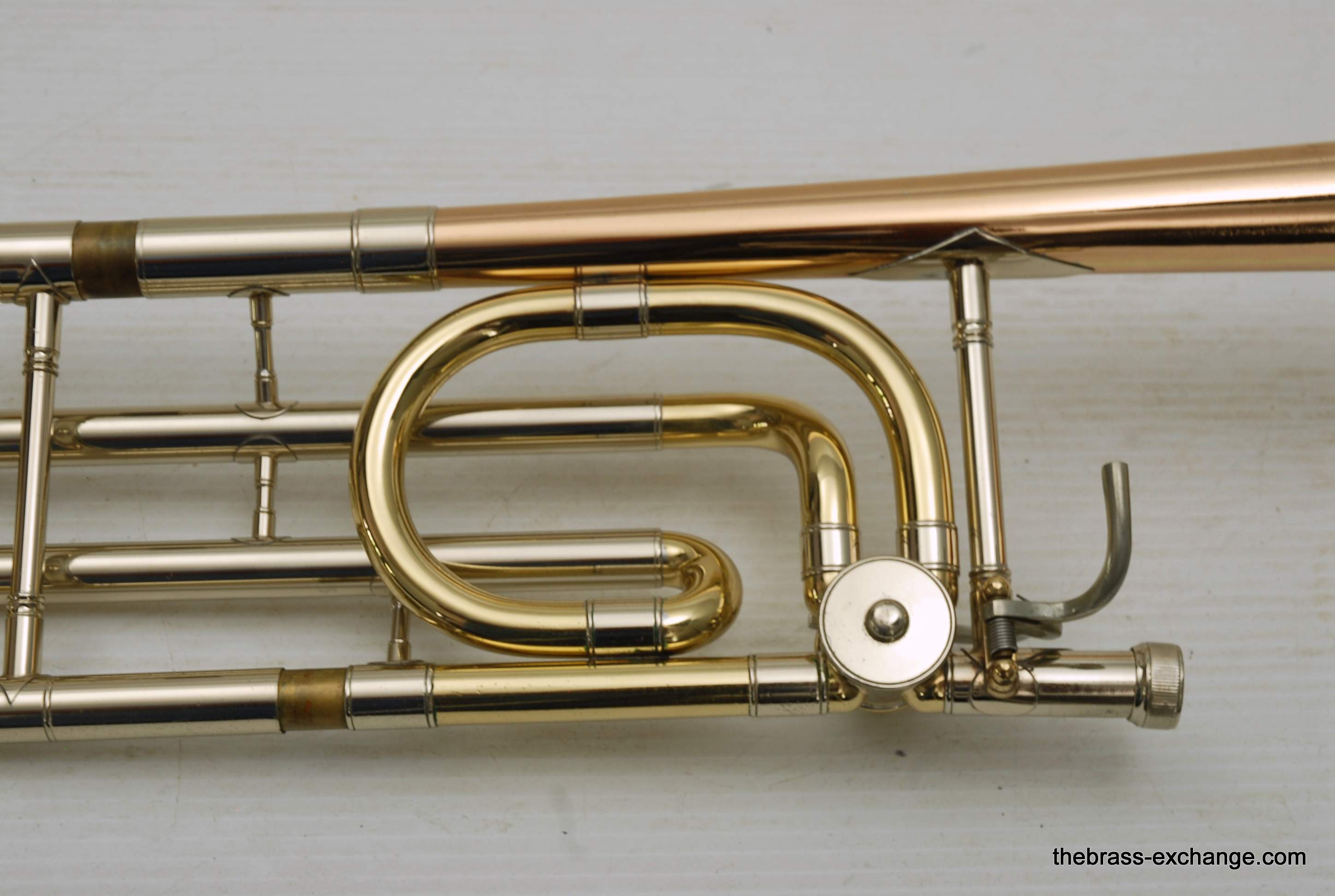 During its time on our bench, we completed full shop service, including a chemical cleaning, valve and slide setup, and play testing. At the time, a small tuning slide ding was noted but corrected before delivery — a typical detail we address to ensure the horn leaves tension-free. The slide was confirmed straight with quiet action, and the horn spoke evenly across dynamics.