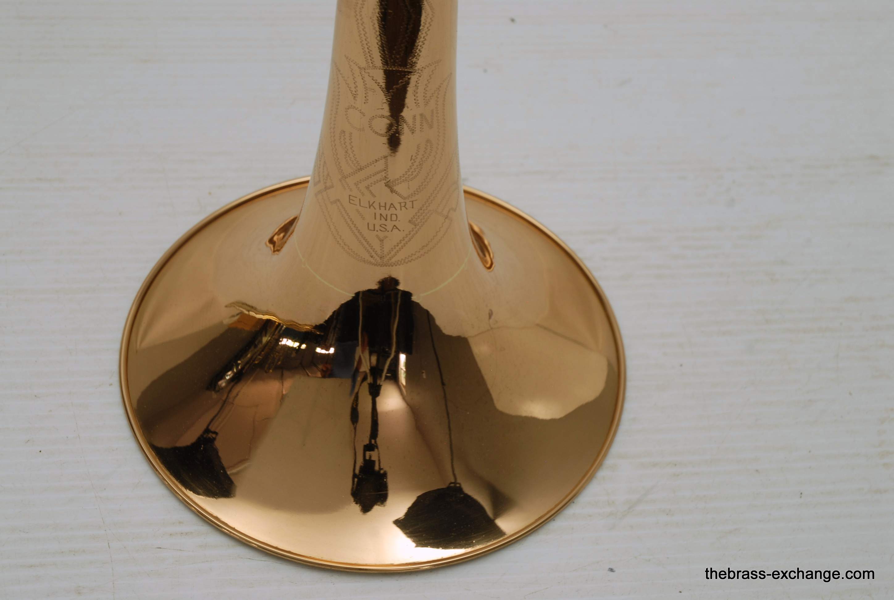 This example received a professional restoration and new lacquer finish prior to its sale. The work was handled carefully: the bell engraving remained crisp, the edges clean, and the surfaces tidy, avoiding the over-buffing that sometimes diminishes vintage character. Under the bell, it still feels and responds like a proper Elkhart 88H, while presenting with a clean and elegant appearance.