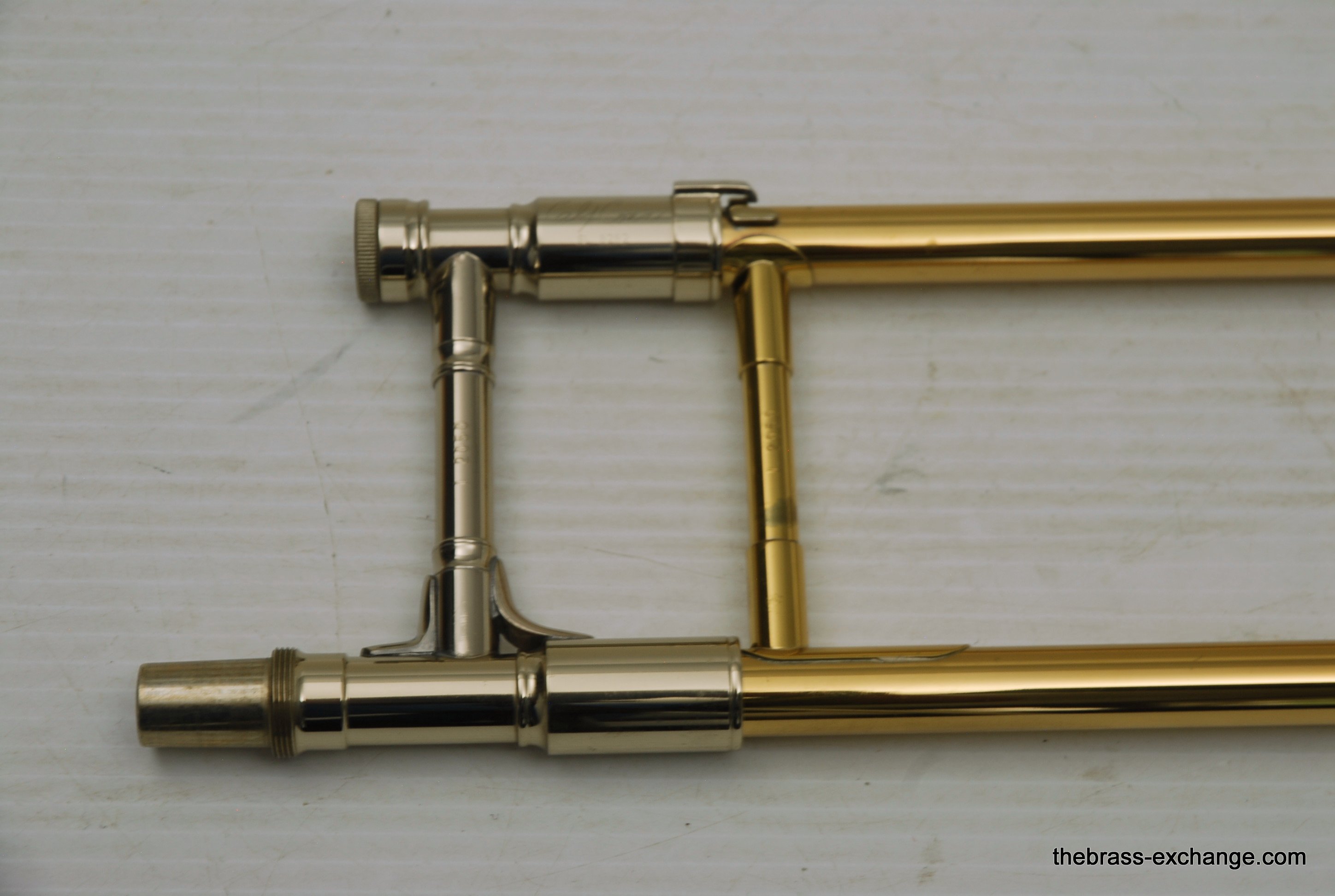 Conn Tenor-Bass Handslide for 88H or 8H.  This is a slightly used all original parts, lacquer, like new Conn Tenor handslide designed to be used on an 88H.  The handslide tennon is for tenor not basss, but the rest of the slide is bass trombone, has straight bore .562/562 with threaded removable Conn leadpipe.  Is a specialty slide, designed for anyone looking to make their tenor play a lot bigger.  This one has barely been used and is in-stock for immediate delivery.