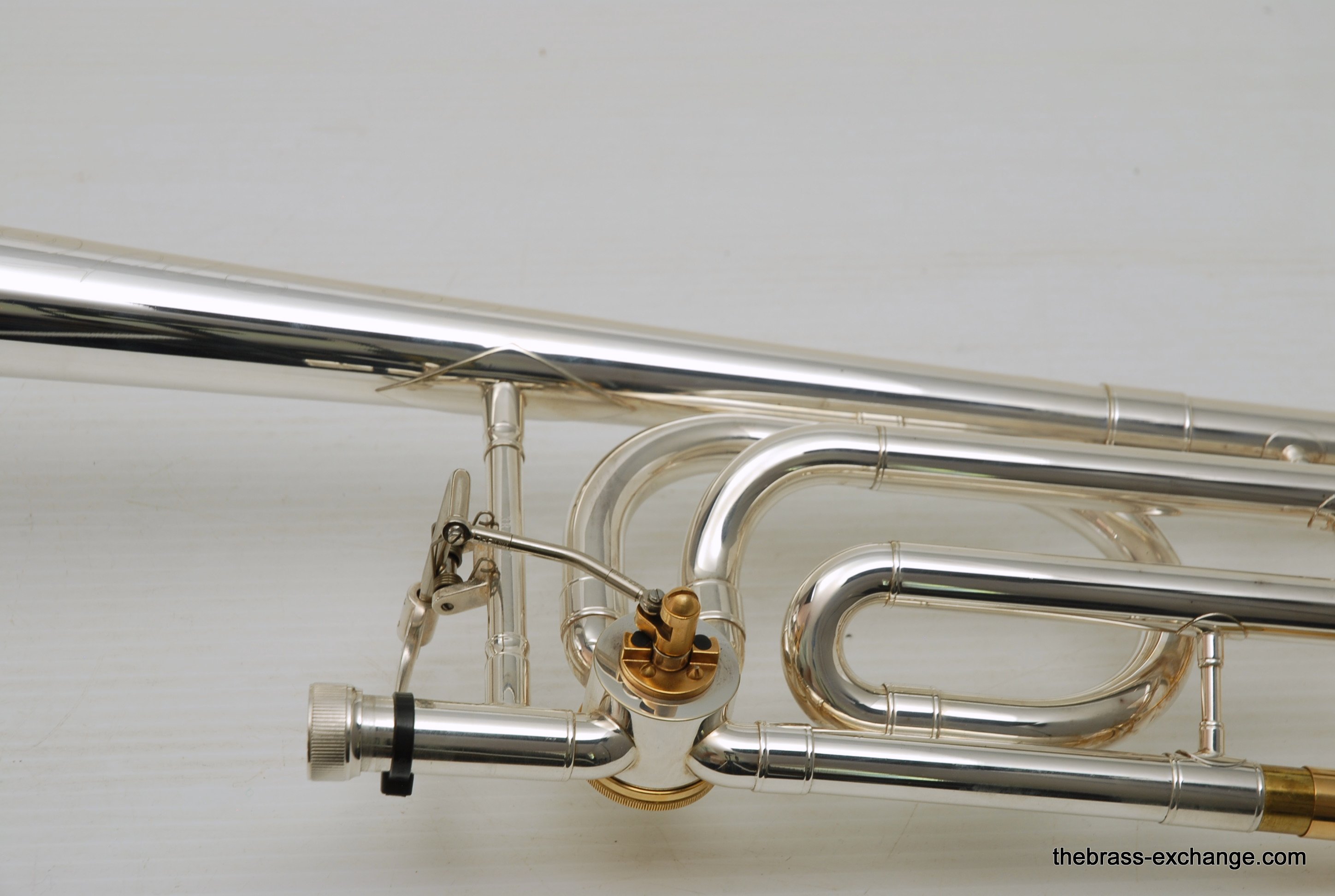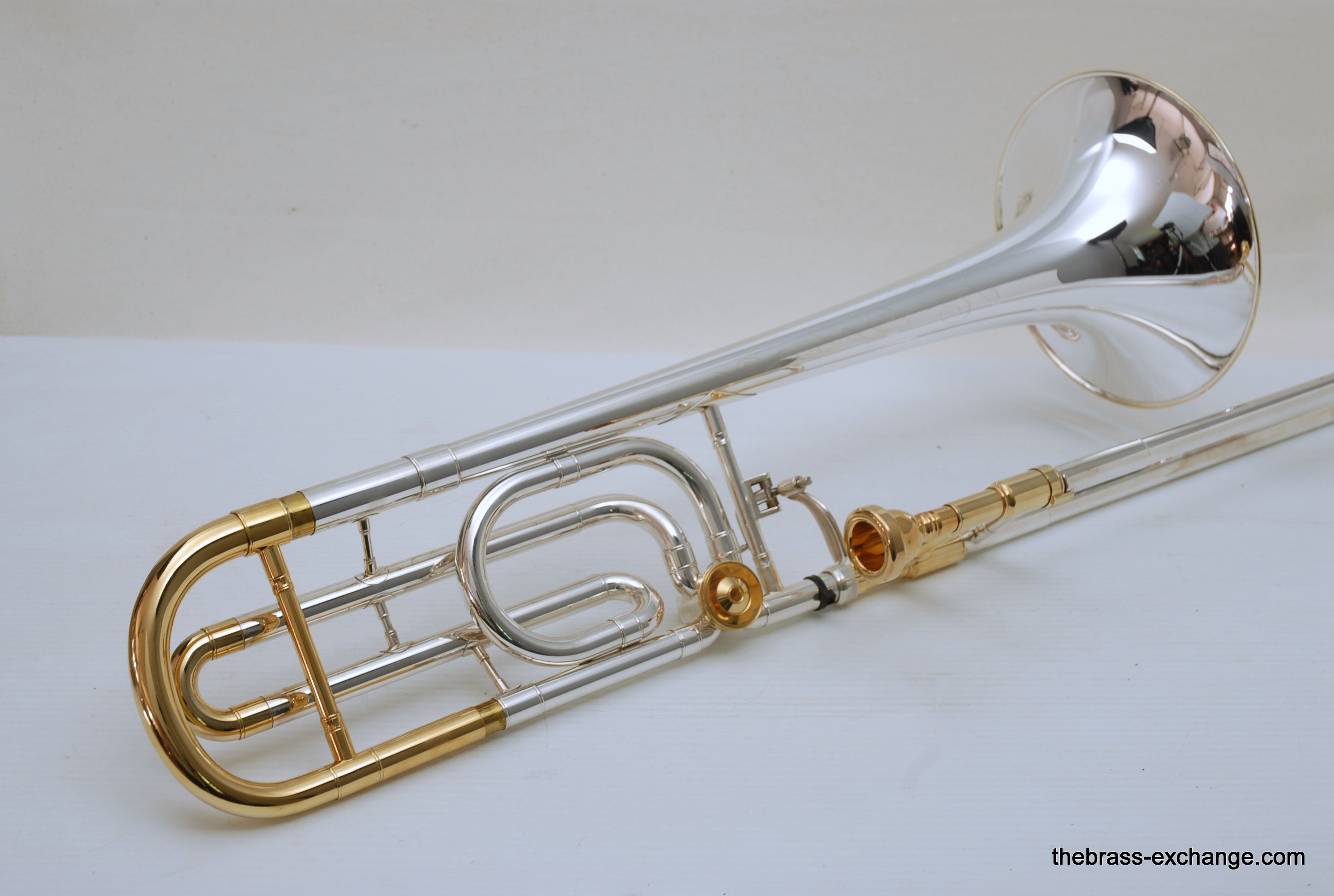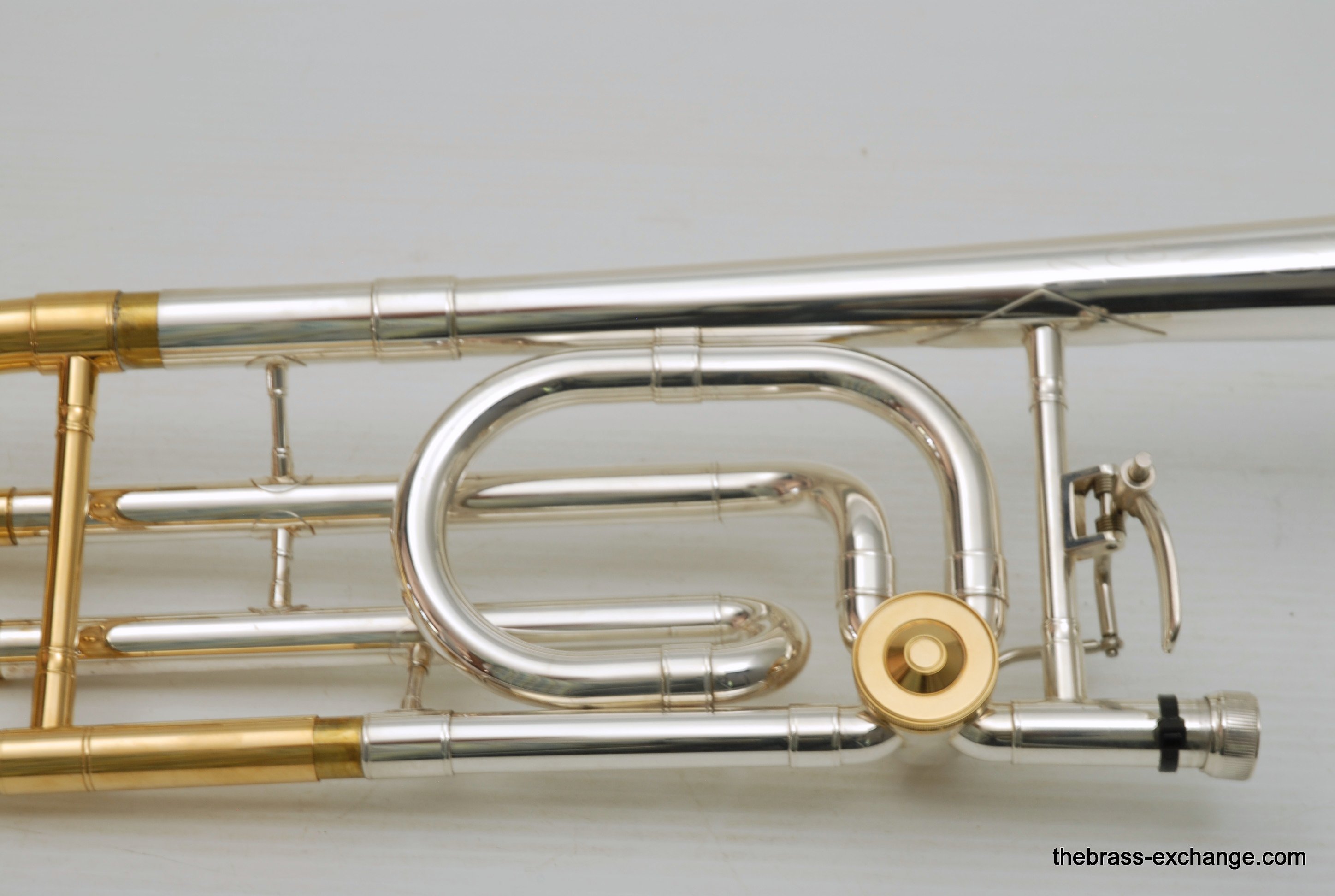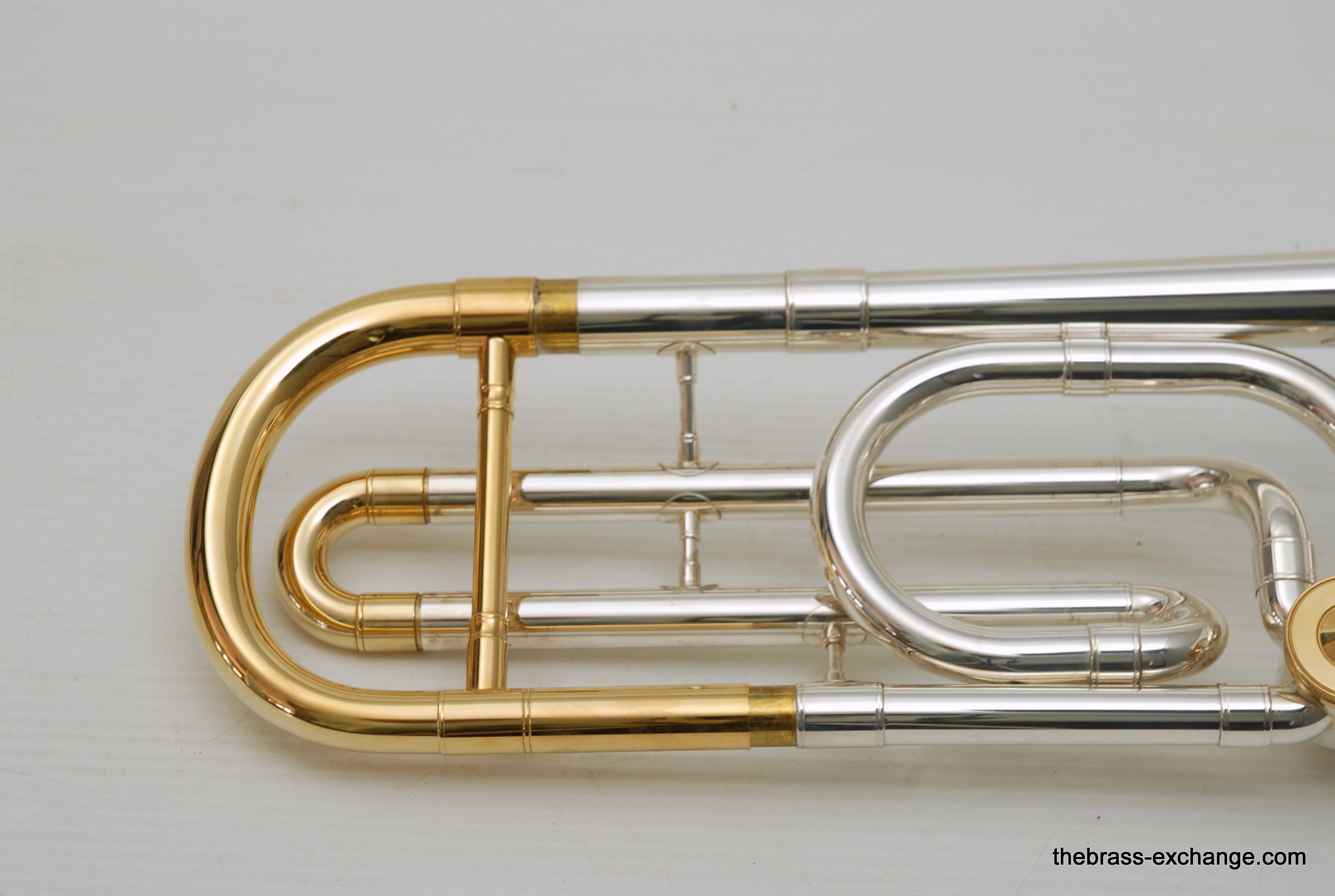 Conn 88H SXG Model. New Old Stock from the 1990's/ Every once in a while something amazing like this 88H SXG becomes available. New, this model sells for well over 4K. This is new old stock, which means that it hasn't been owned and played. It is in perfect condition, just like a new one, but without the long wait or the higher price. They may not even be available any longer. Sterling silver bell with lots of gold trim everywhere, even the back of the valve, linkeage, and water key. Conn went all out on this one. It plays amazing. Tremendous amout of energy coming out of the front, lots of projection and super clarity. We like the traditional wrap on this one. If you have ever played in a band or pit orchestra with no room behind you, then you understand why the long tuning slide on the open wrap 88HO or 42BO can be a hassle. This one is perfect, and is even gold plated. Handslide is fantastic. Valve is super fast and quiet. Will not dissapoint. Comes with Original New Case and gold plated mouthpiece. In-stock for immediate delivery.