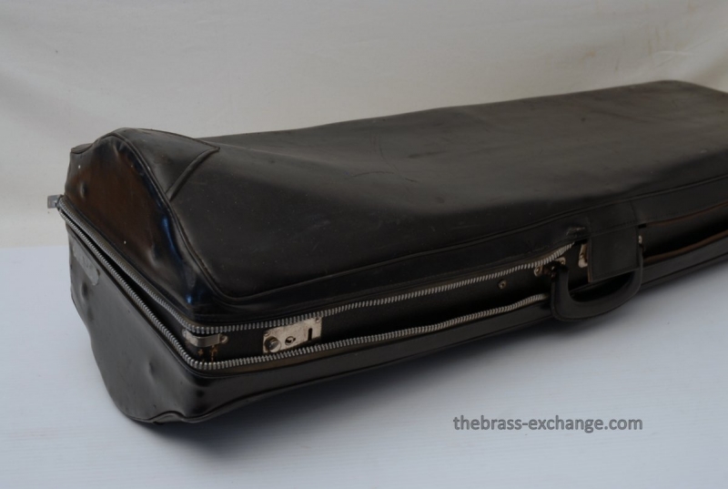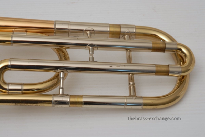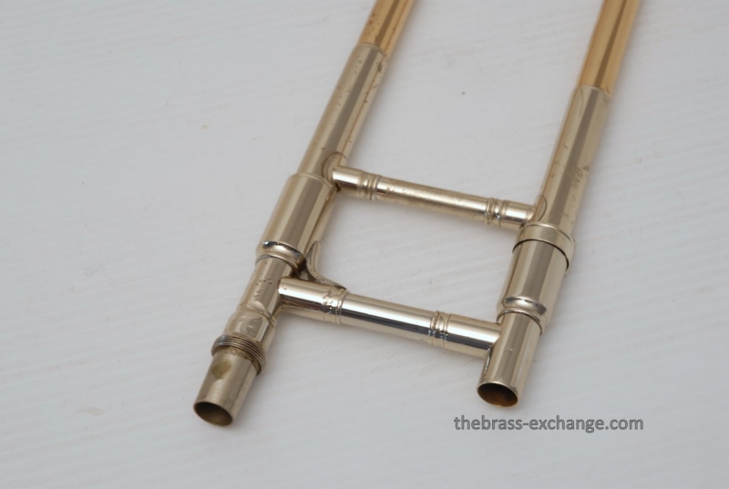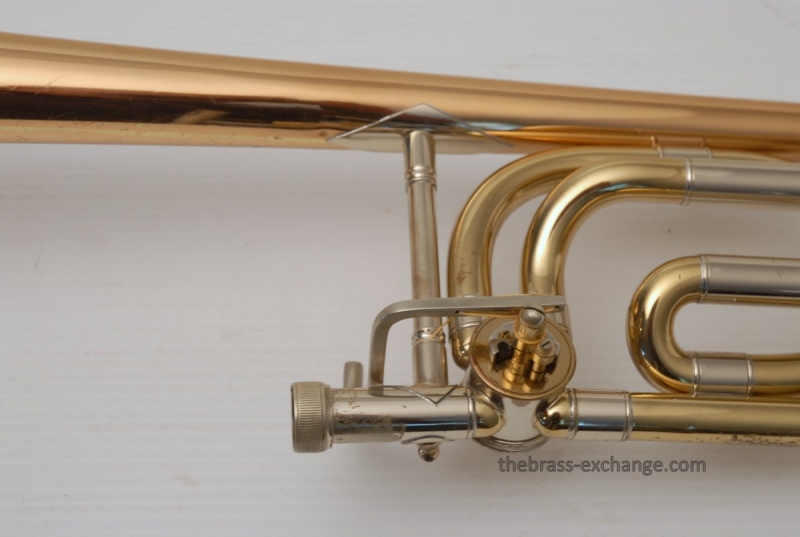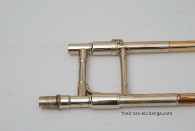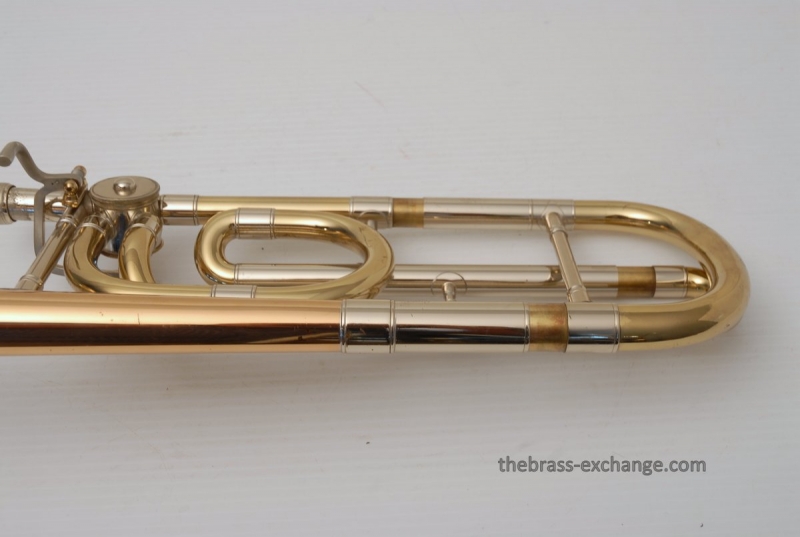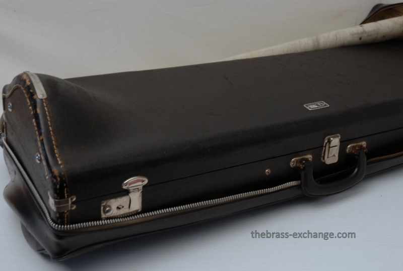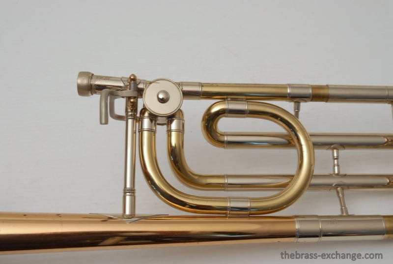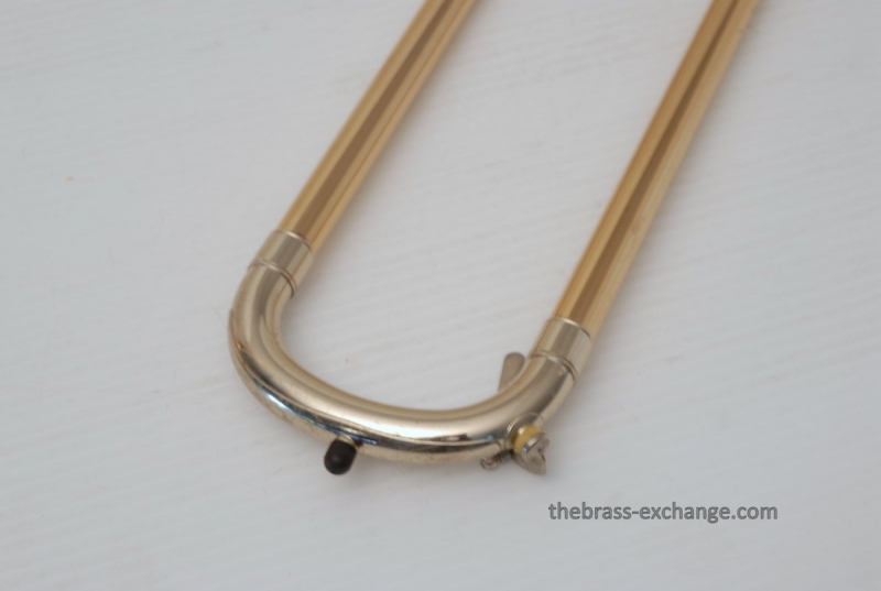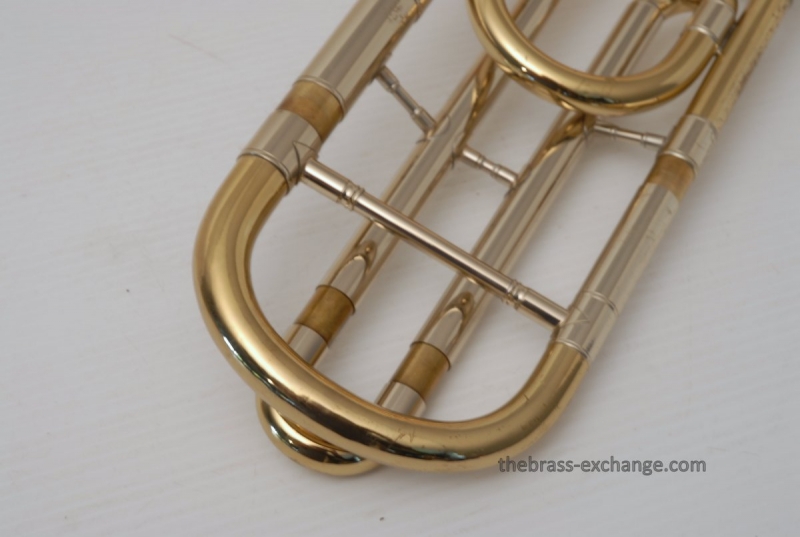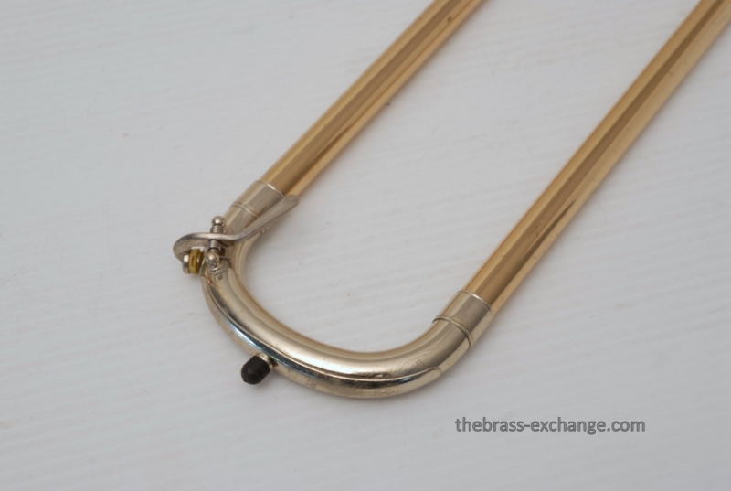 Conn 88H Classic Elkhart Model from 1960. Pro Player owned and maintained. Never any creases or damage to this bell section, and is all orginal lacquer. Hanslide is excellent, super smooth, no chrome wear on stockings, has perfect alignment. Springs have been removed from first position. Lower cork barrel tube on the handslide was replaced and re-lacquered, however still original inner and outer slide tubes. No service or cleaning is needed to improve the playability of this 88H. This is in fact one of the best playing 88H's that we have seen since the beginning. Current production replicas of this model aren't even close. Original case in excellent condition with black leather outer cover. Two Mouthpieces: Original Remington Mouthpiece plus 6 1/2AL Remington Shank Included. Has Leather Neck Gaurd with handslide leather on hand braces. Seriously Great Package.