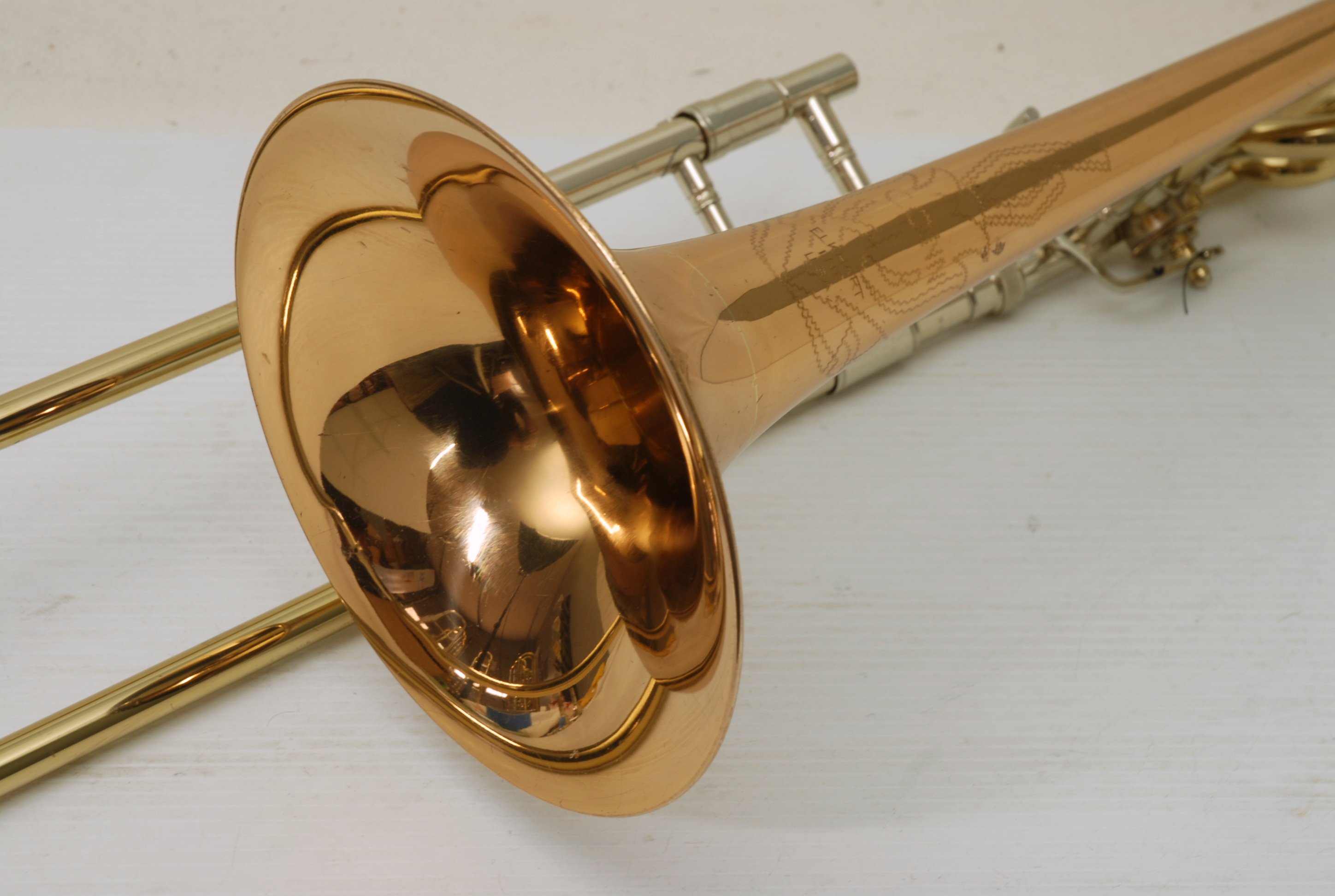 This instrument was preserved in excellent condition, retaining its original parts and lacquer. It received a full shop service before being offered, including a chemical bath, complete rotor removal and cleaning, and careful adjustments for optimal playability. The result was a trombone that responded cleanly across registers with smooth airflow and reliable mechanics.