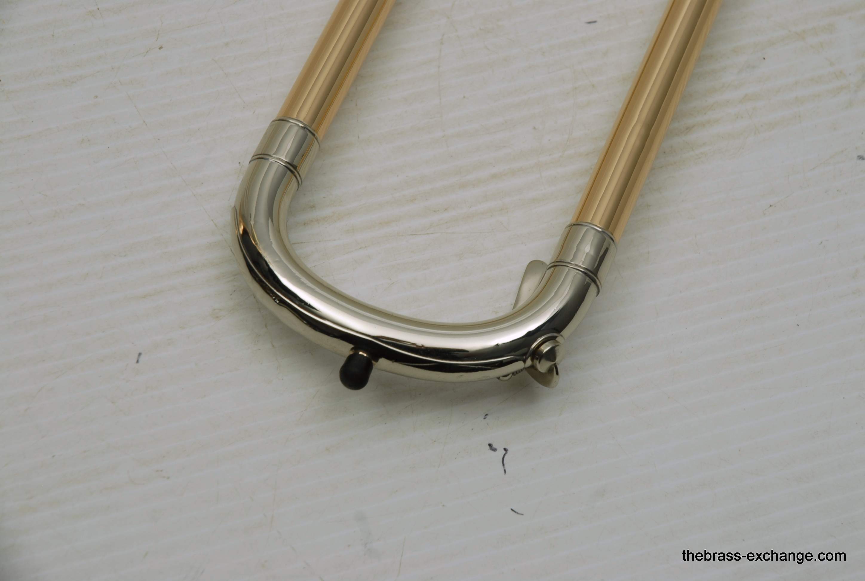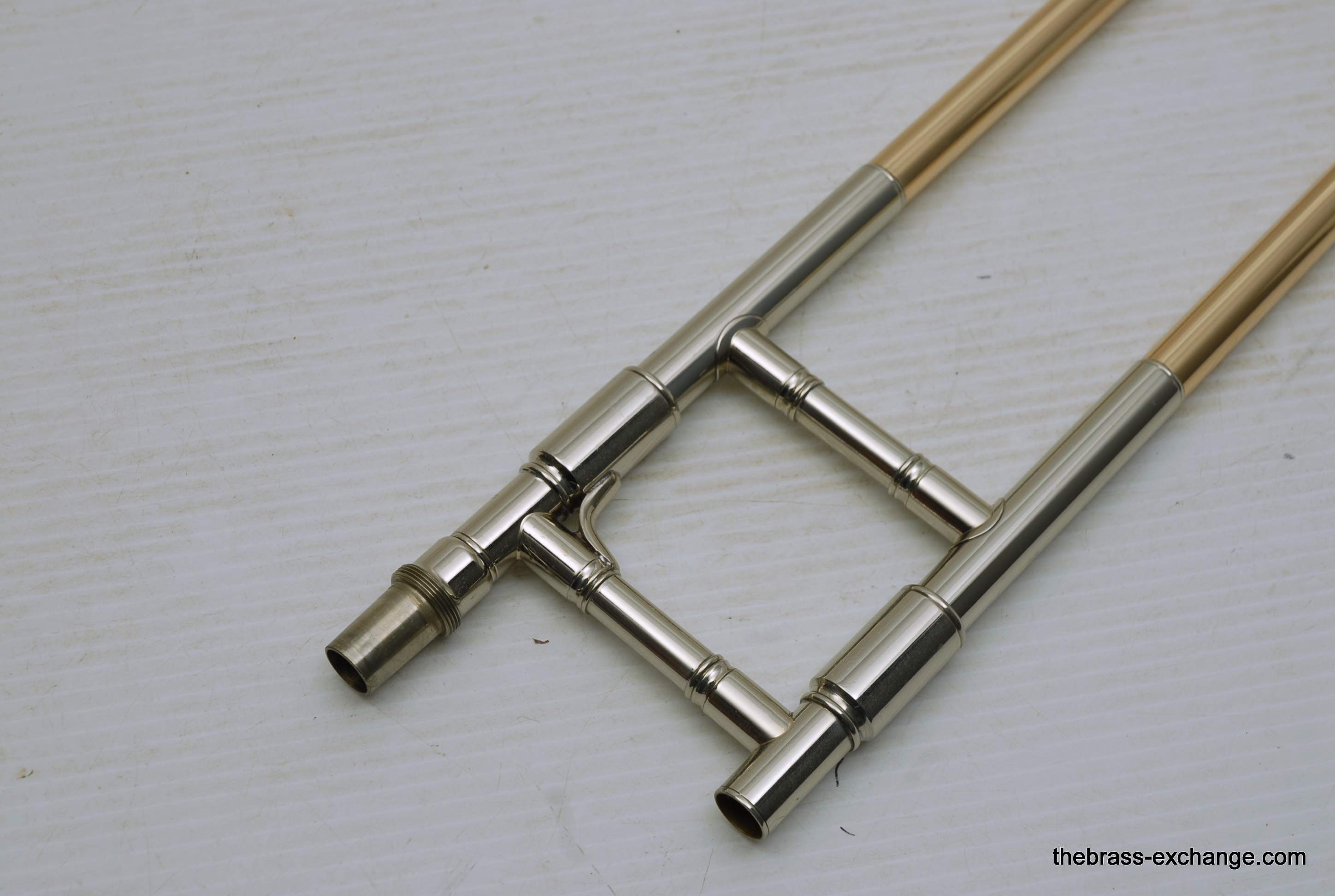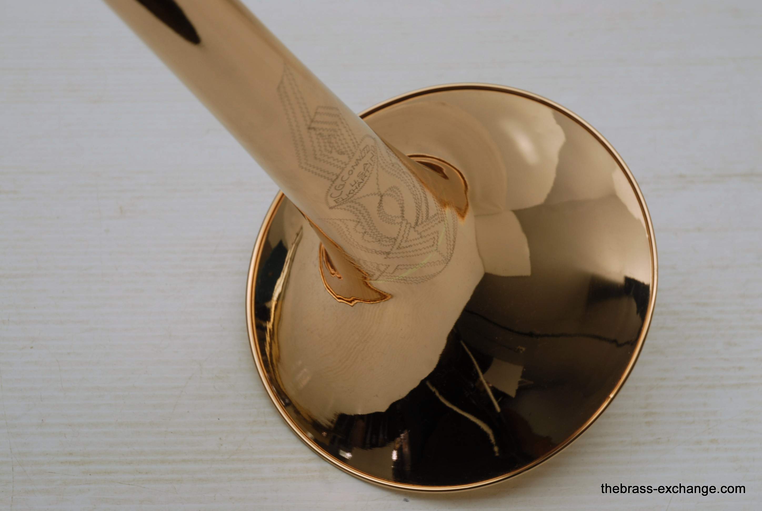 Conn 88H Vintage 1954 Elkhart Era. SN 437979. Stunning Gorgeous re-finish. Original parts, including inner slide tubes. This 88H is both a player and an investment. It is not likely to decline in value over time. The 88H model will not likely go out of style anytime in the future. Players all over the world love 88H's, and for good reason. Rose Brass Bell, Unsoldered Rim, Gold Brass Handslide with Nickel silver endcrook. Immediate warmth and darkness, with the capability of changing color of tonality very quickly. This horn has the original Remington Taper leadpipe. They always play best with the Remington taper in mind. However, some guys will play them with a modern Morse Taper. We prefer the former. Other differences vs. later year make is that it has a nickel silver tuning slide guard, just a little more weight up top. These were also made without slide locks. Has had restoration and new lacquer, is absolutely stunning, even better in person than the photo's. This horn will not disappoint. Case not included. In-stock for immediate delivery.
