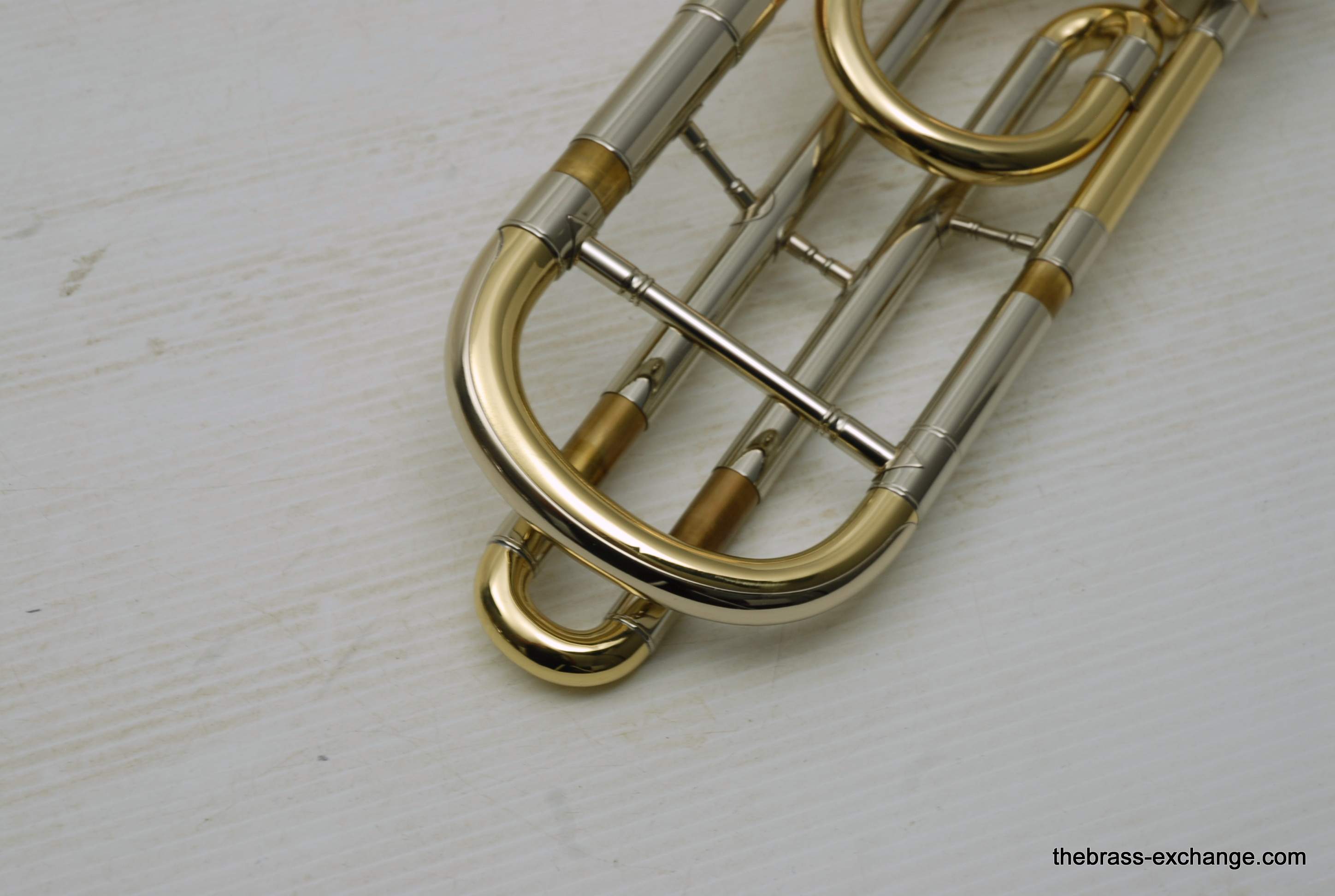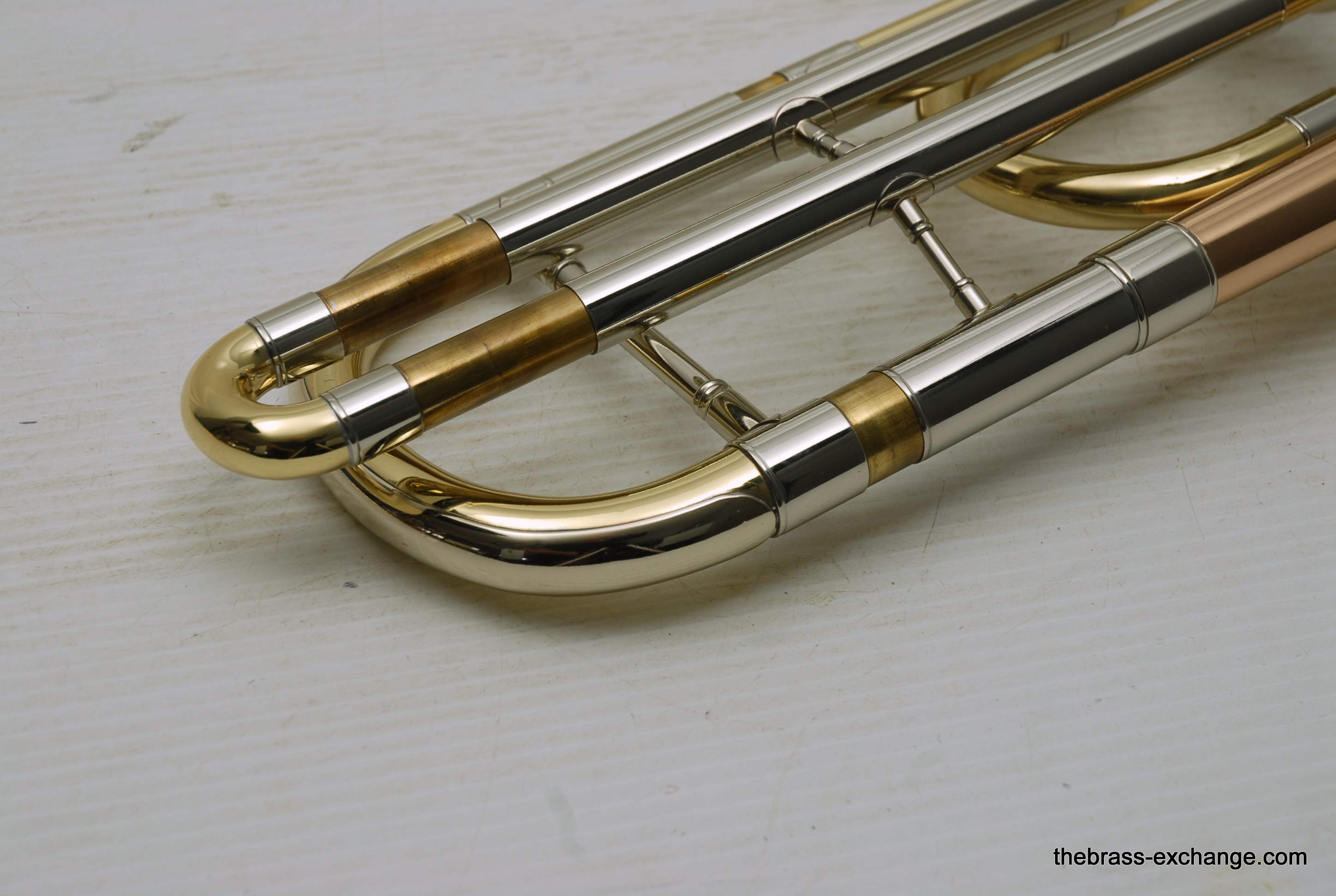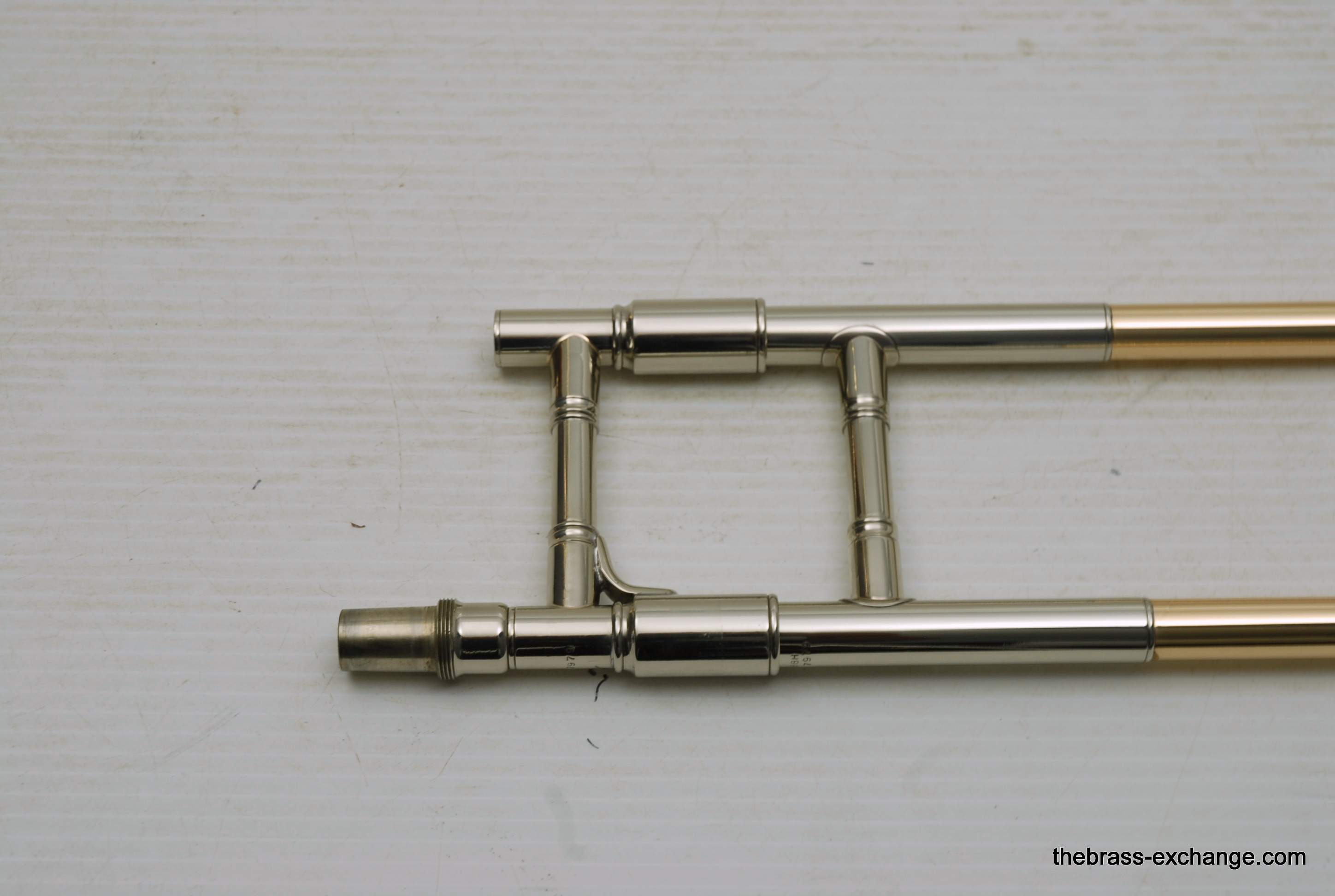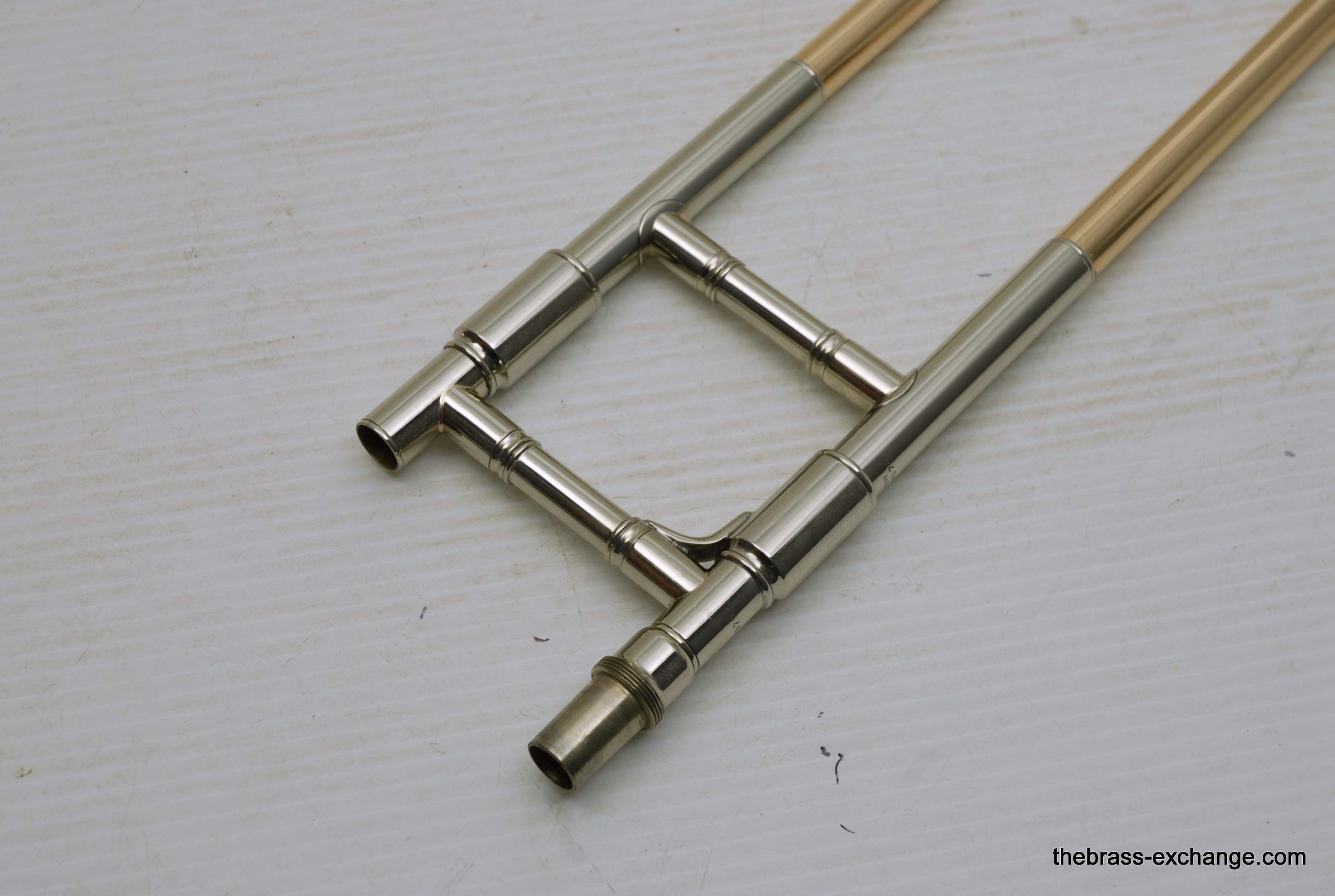 Conn 88H Vintage 1954 Elkhart Era. SN 437979. Stunning Gorgeous re-finish. Original parts, including inner slide tubes. This 88H is both a player and an investment. It is not likely to decline in value over time. The 88H model will not likely go out of style anytime in the future. Players all over the world love 88H's, and for good reason. Rose Brass Bell, Unsoldered Rim, Gold Brass Handslide with Nickel silver endcrook. Immediate warmth and darkness, with the capability of changing color of tonality very quickly. This horn has the original Remington Taper leadpipe. They always play best with the Remington taper in mind. However, some guys will play them with a modern Morse Taper. We prefer the former. Other differences vs. later year make is that it has a nickel silver tuning slide guard, just a little more weight up top. These were also made without slide locks. Has had restoration and new lacquer, is absolutely stunning, even better in person than the photo's. This horn will not disappoint. Case not included. In-stock for immediate delivery.