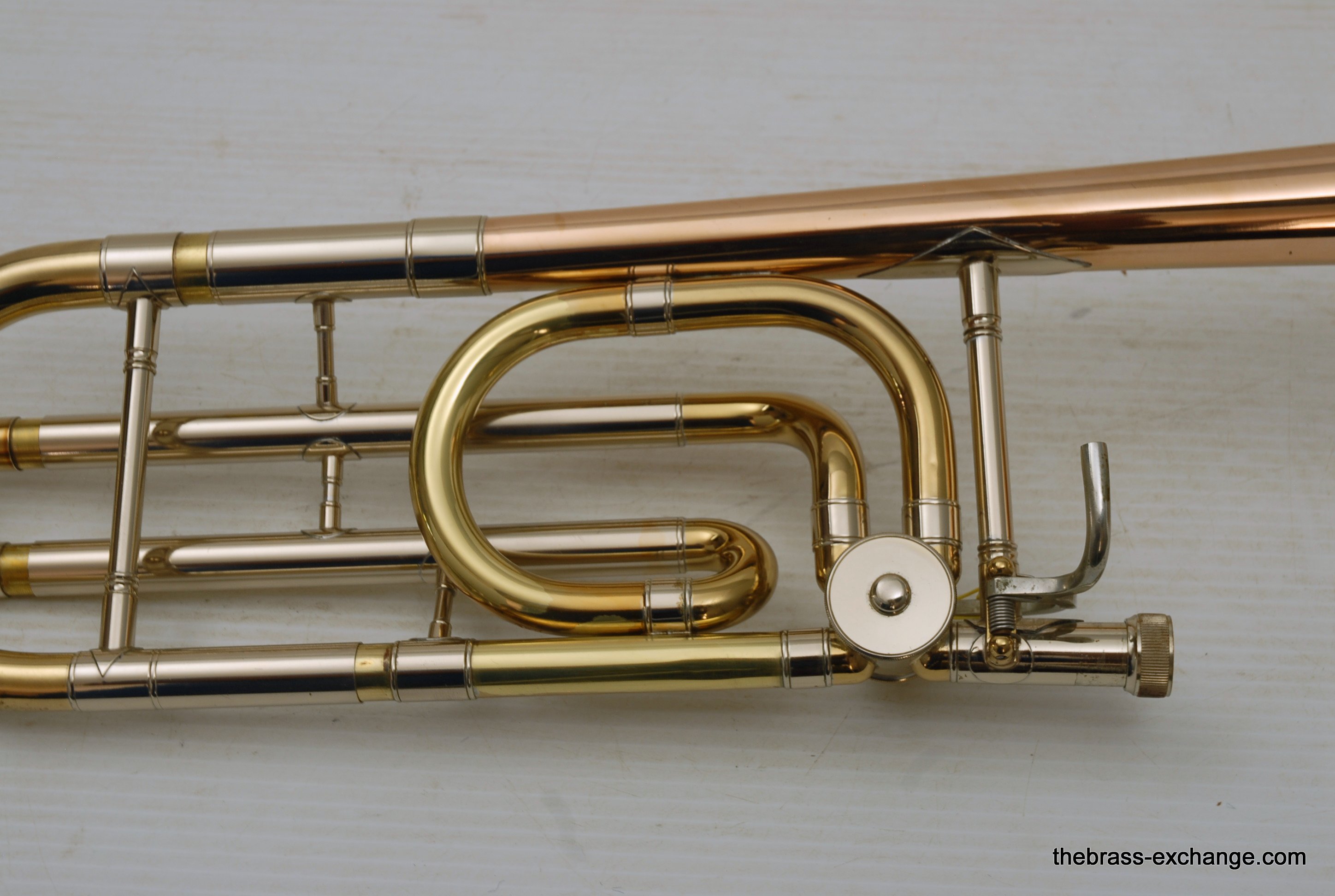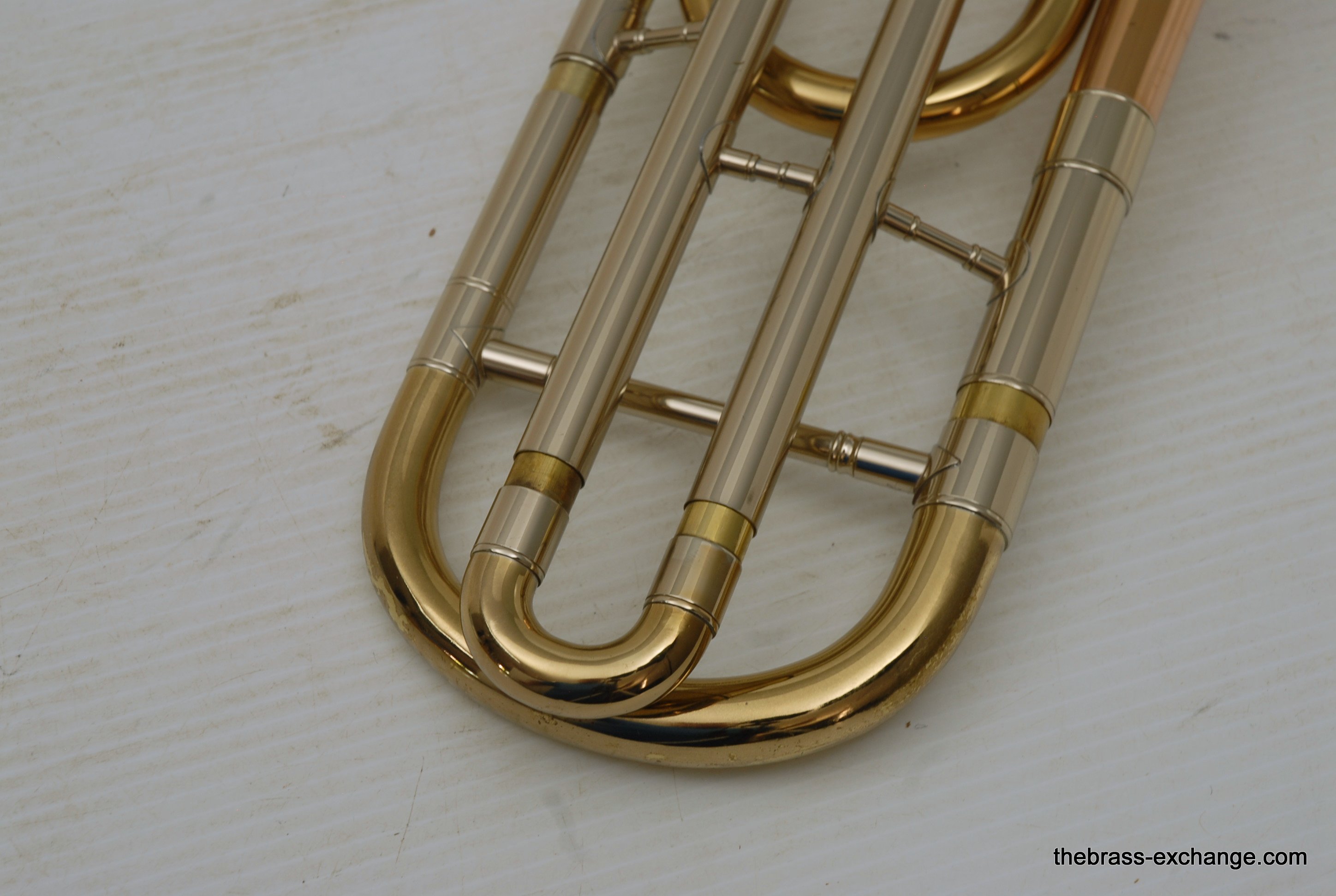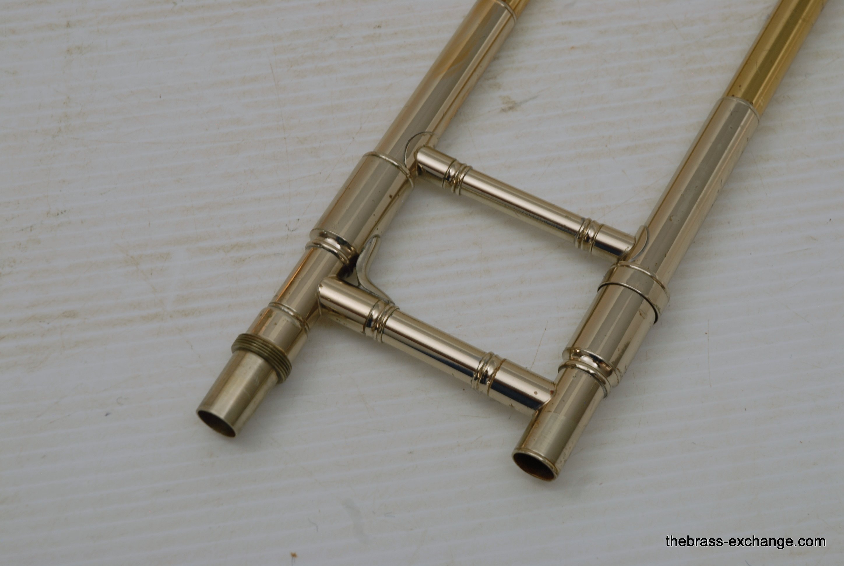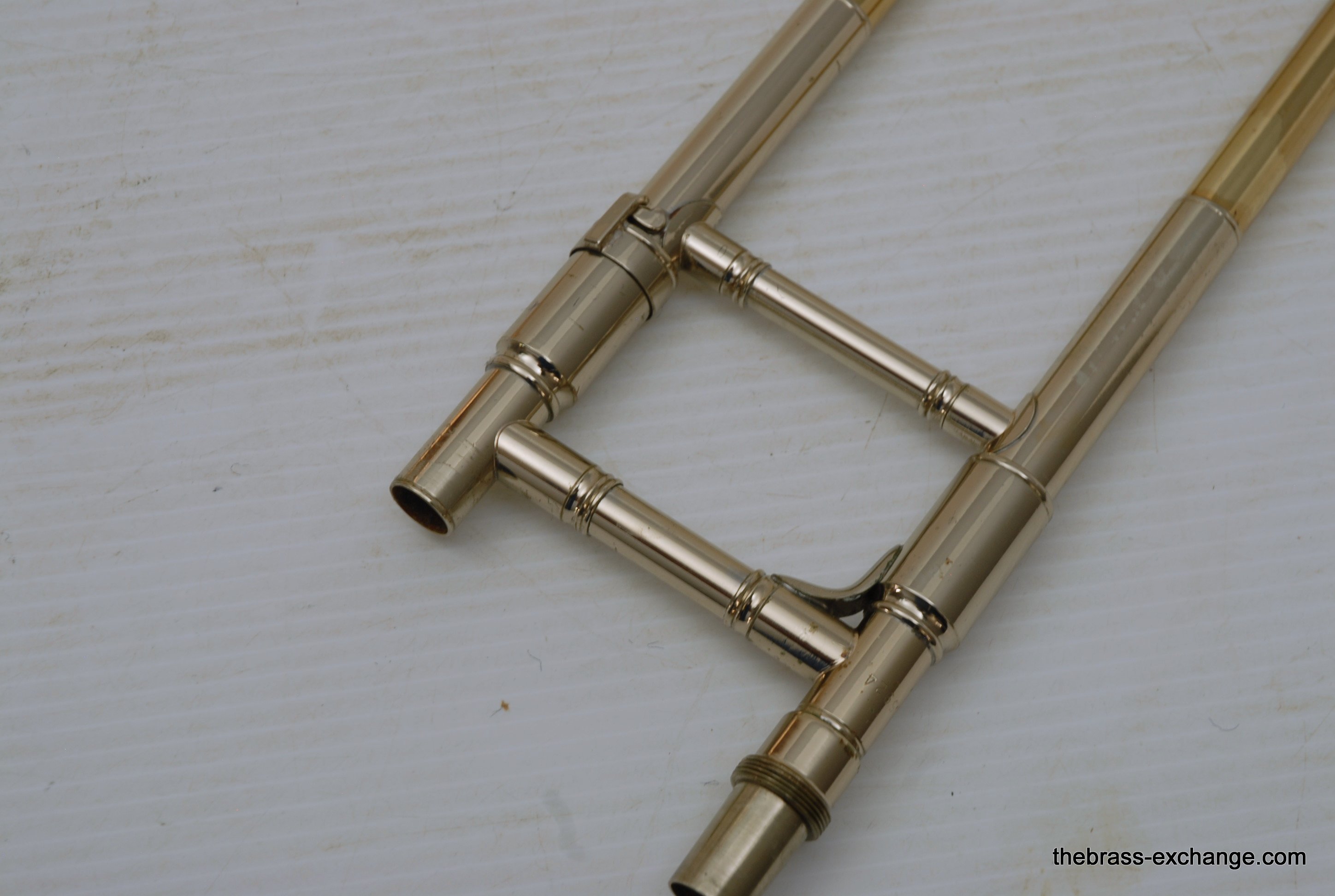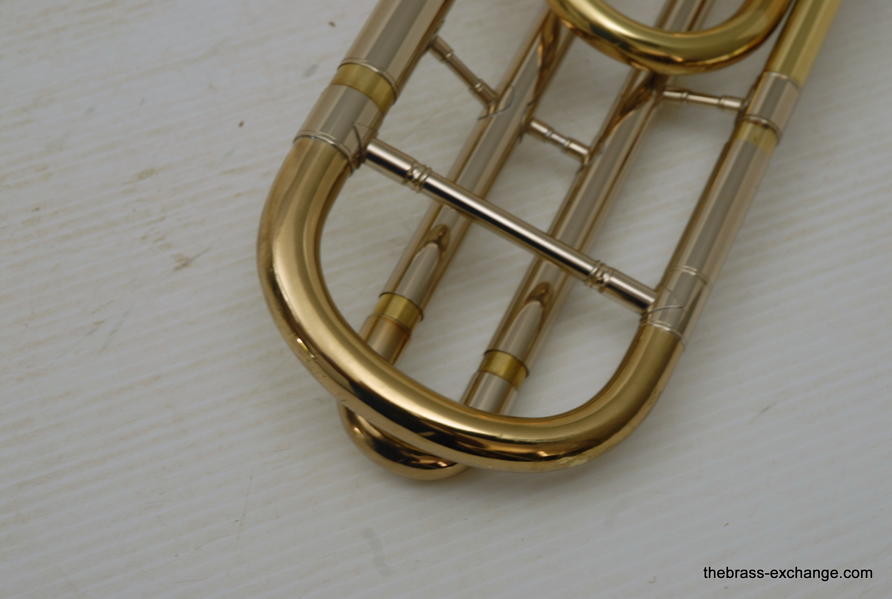 The handslide is clean and responsive, with minor cosmetic wear. There’s a small ding on the nickel silver crook and a bit of smooth wear near the end of one inner tube, but nothing that compromises performance. The lacquer shows minor wear from use but overall presents well. The horn plays with depth, warmth, and clarity, making it an excellent choice for any advancing trombonist looking to experience the classic Conn sound without the Elkhart-era price tag.