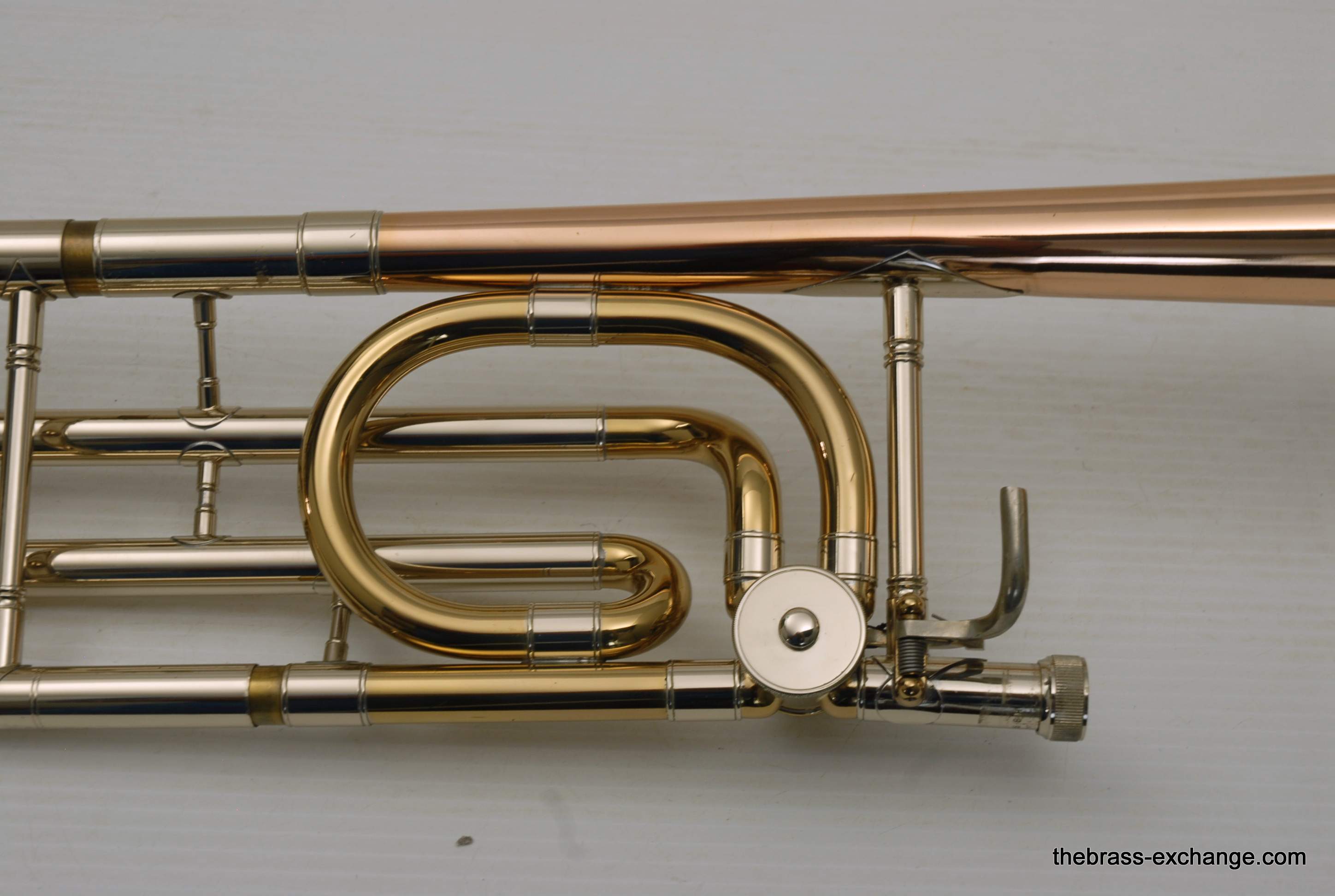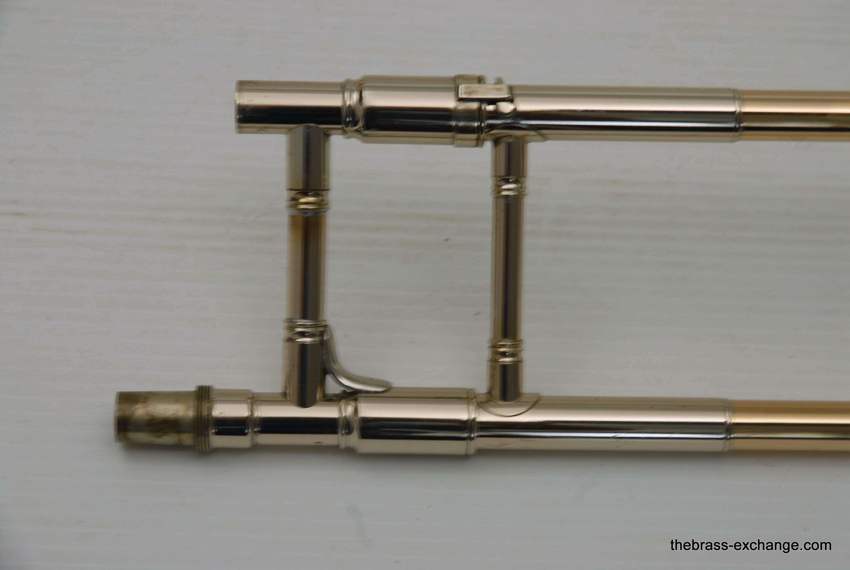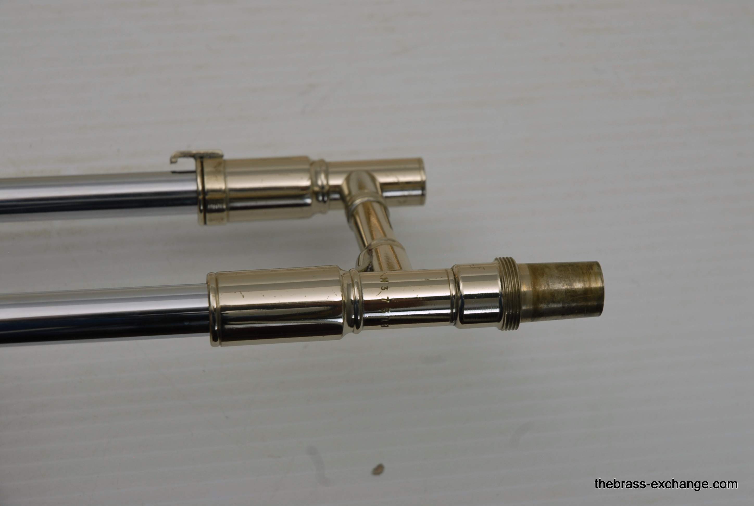 This particular horn, serial number M373XX, was preserved in original condition. All parts and lacquer were intact, with no evidence of damage or prior repair. The handslide was described as “as good as you can get,” free of plating defects and moving with exceptional smoothness. Like many Conns from this period, it featured spring-loaded bumpers in 1st position, which could be replaced with conventional pads at the player’s request. Many trombonists enjoy the added tactile feedback of the springs, keeping the horn’s response lively and precise.